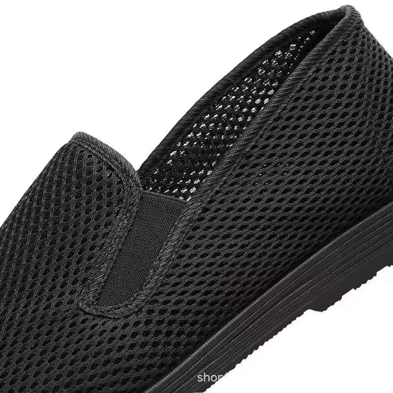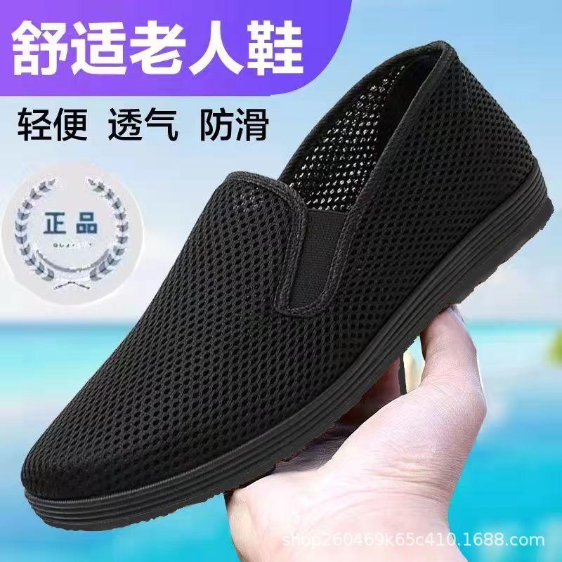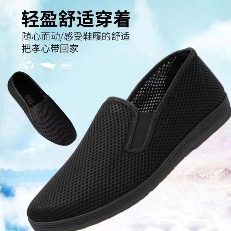Una generación de zapatos de tela viejos de Beijing, zapatos para personas mayores, zapatos de malla para hombre, zapatos de tela negra, verano hueco transpirable talla grande