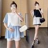 Ropa de Maternidad Verano 2025 Nuevo Estilo Coreano Floral Dulce Camisa Babydoll + Shorts de Soporte para Vientre Conjunto de Maternidad de Dos Piezas