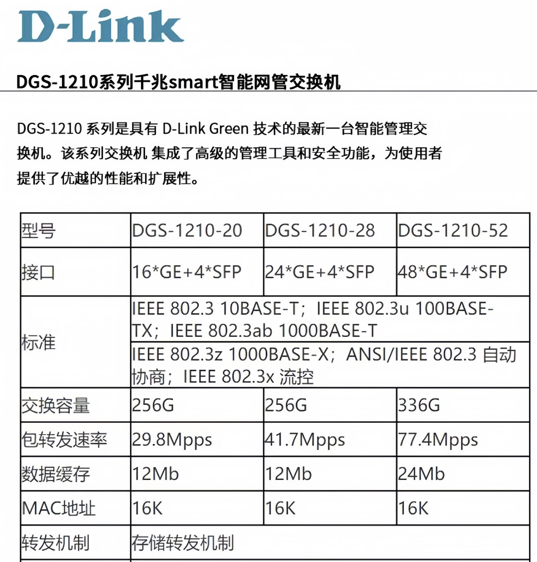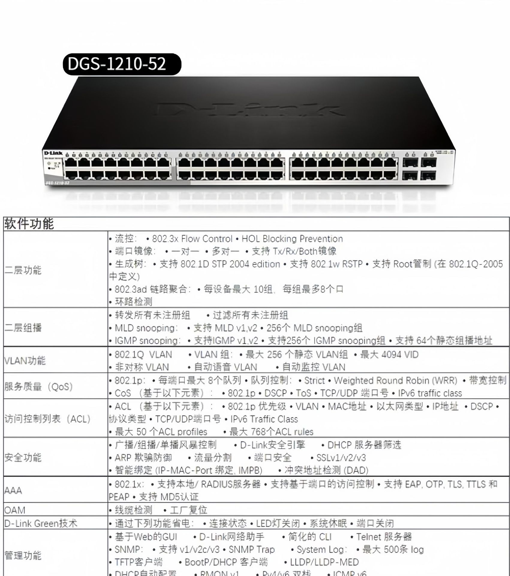 Switch de administración de red inteligente D-Link DGS-1210-52 de clase empresarial todo gigabit todo gigabit/4 óptico 48 alimentación