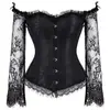 Corsé de Encaje Estilo Europeo y Americano con Varillas de Ballena Lencería Sexy Hebilla Delantera Trasera Base Hueca Moldeadora Modeladora del Cuerpo