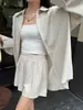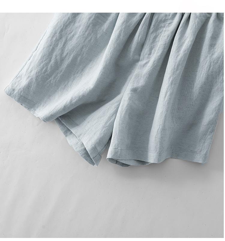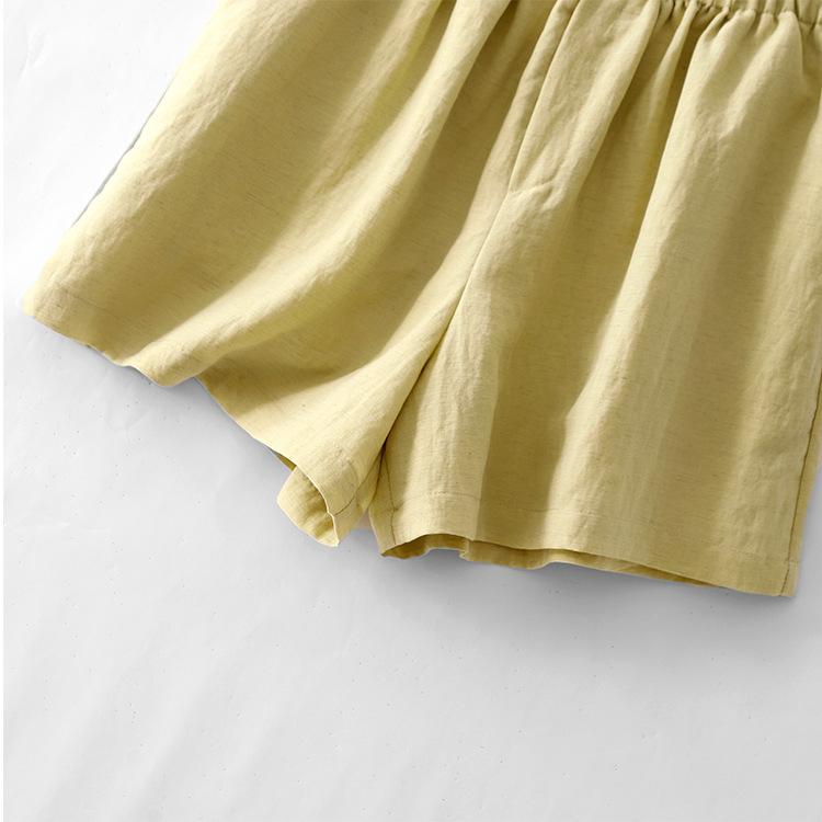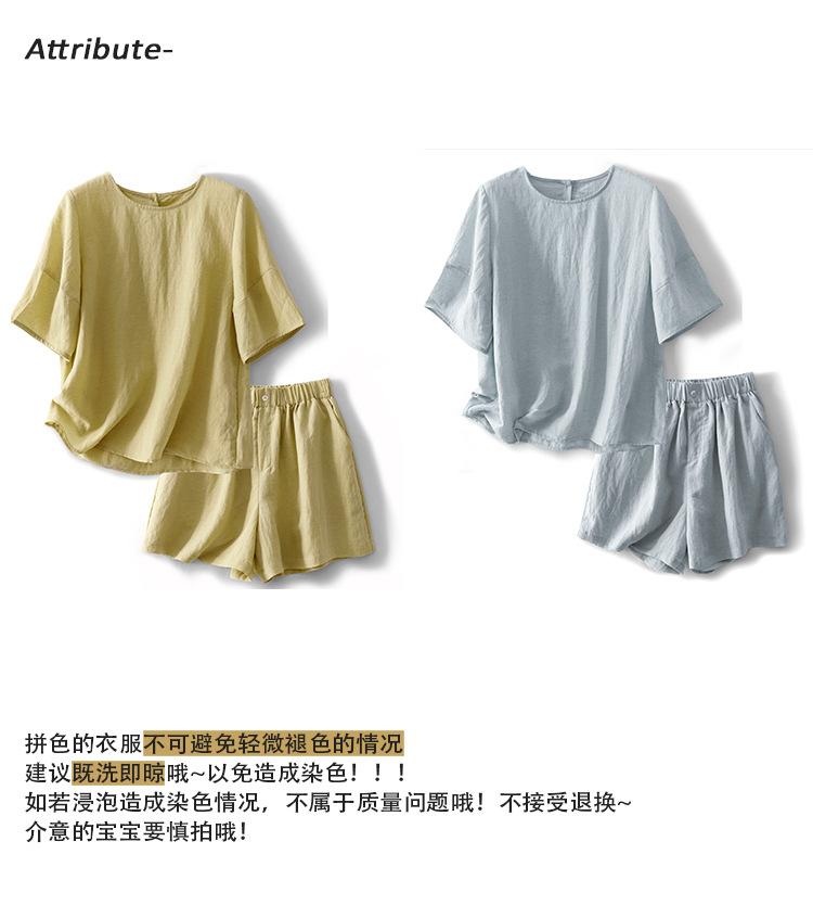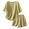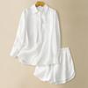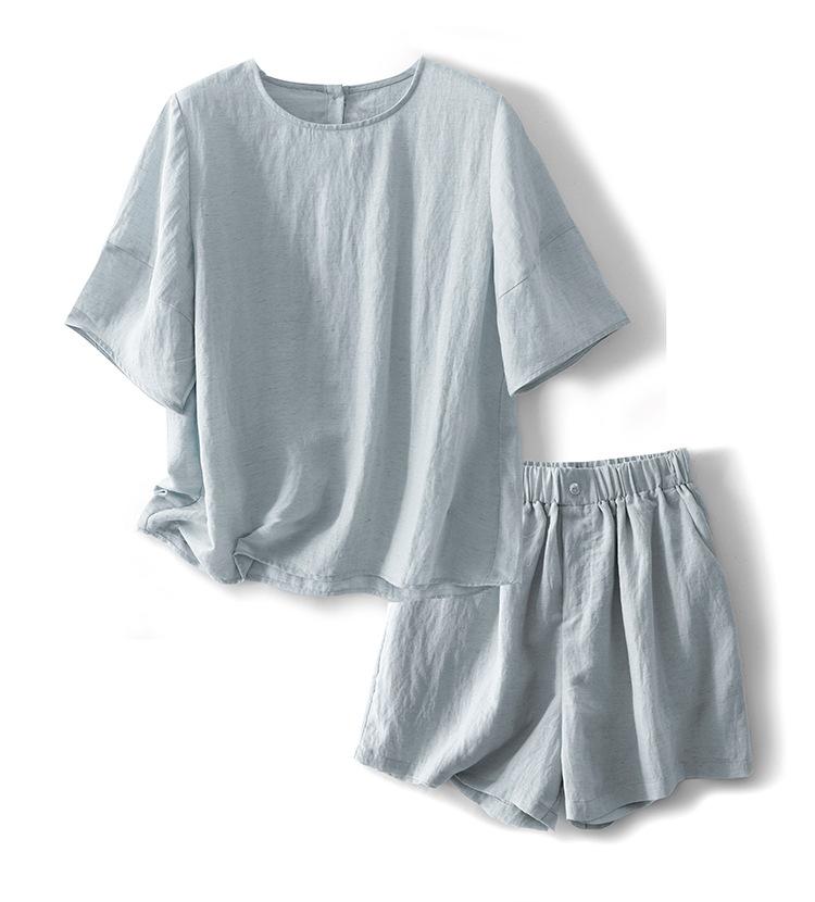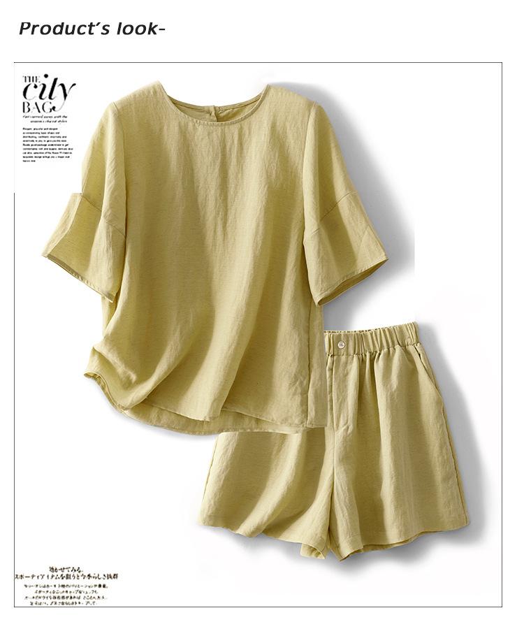 Real Pat Lino Camisa de Manga Corta Shorts Traje de Moda de Dos Piezas Set de Verano Delgado Elegante para Mujer