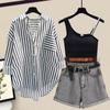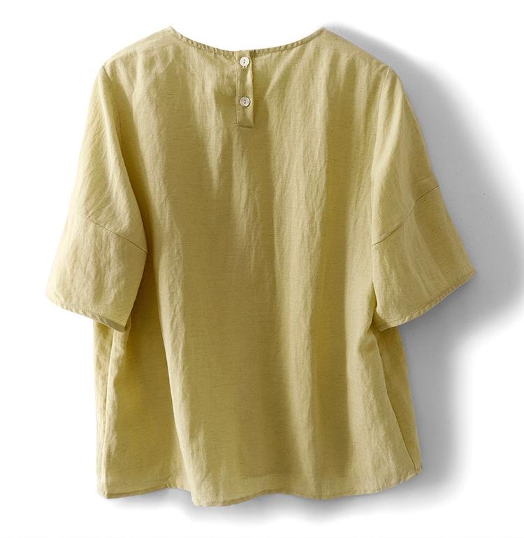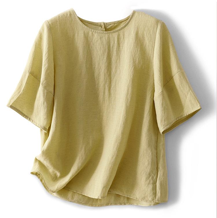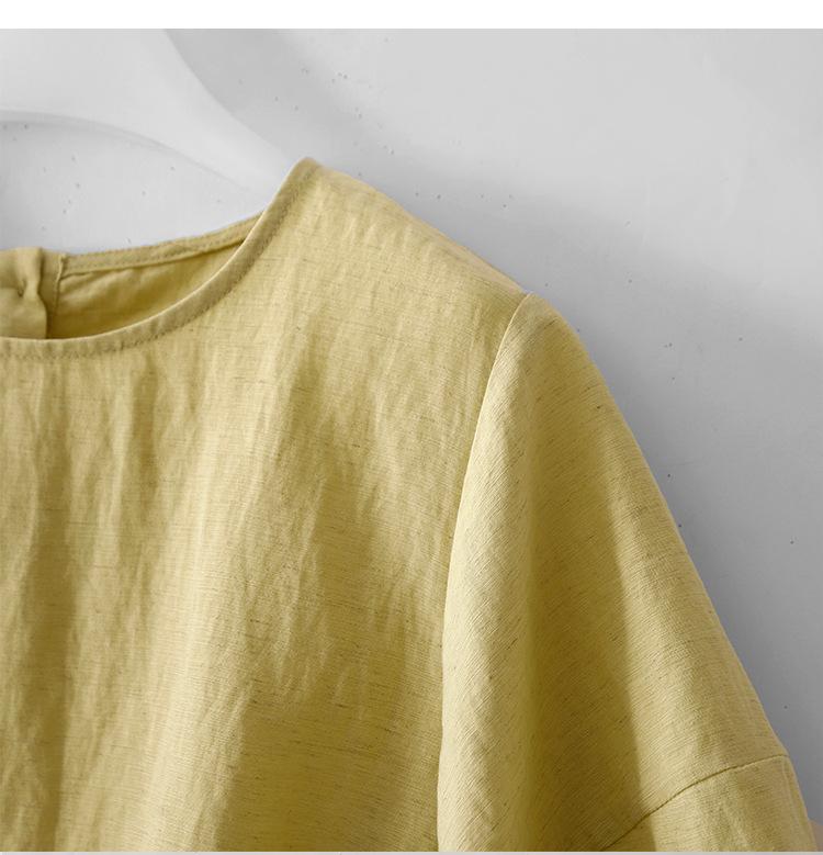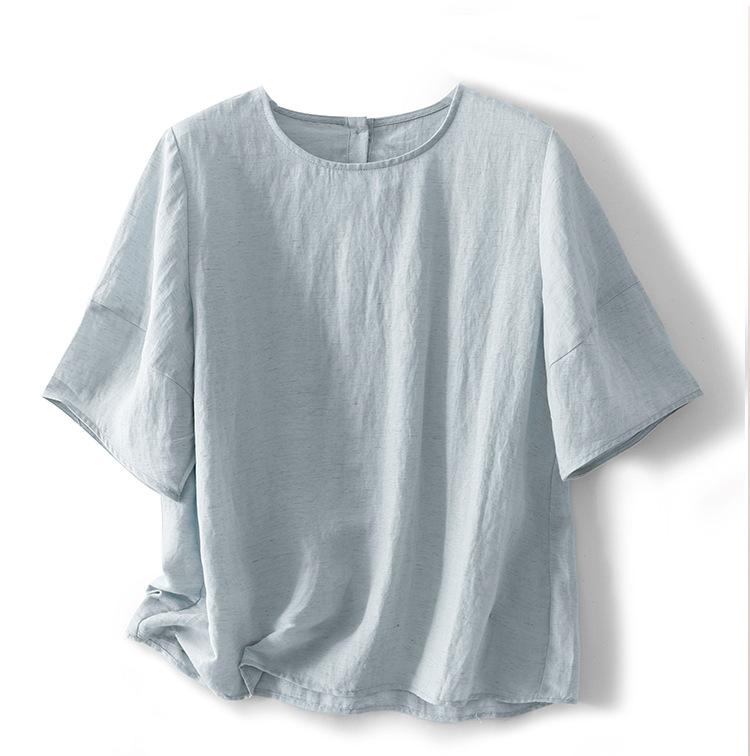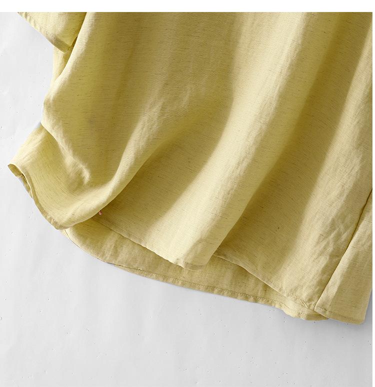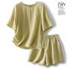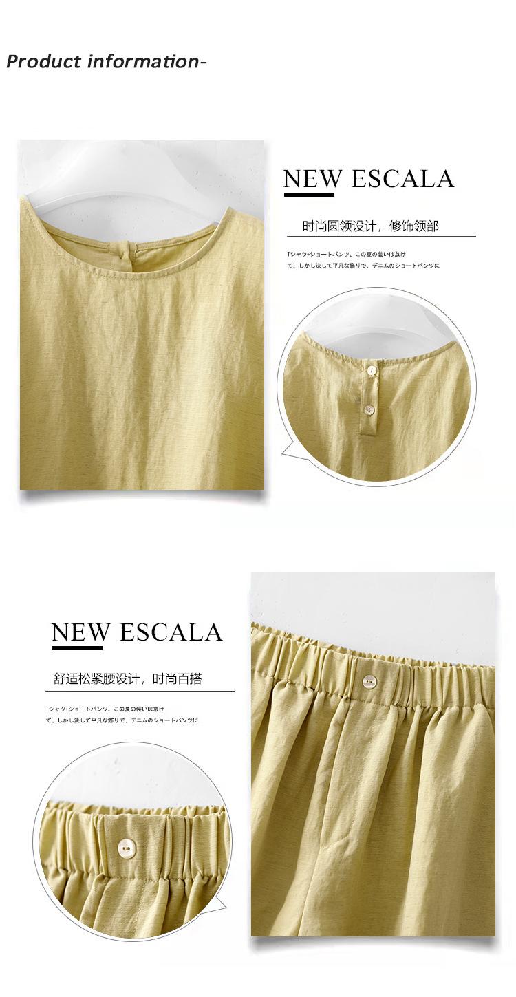 Real Pat Lino Camisa de Manga Corta Shorts Traje de Moda de Dos Piezas Set de Verano Delgado Elegante para Mujer
