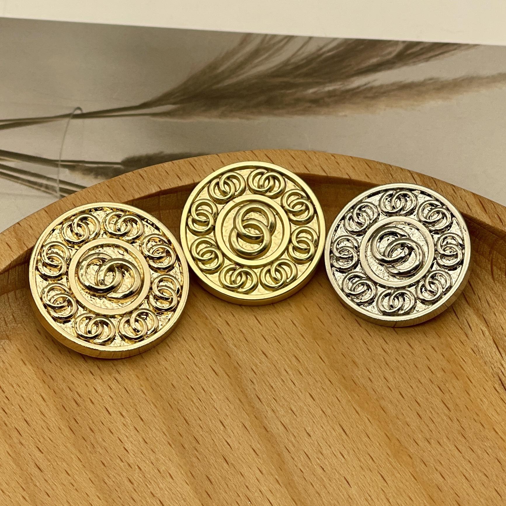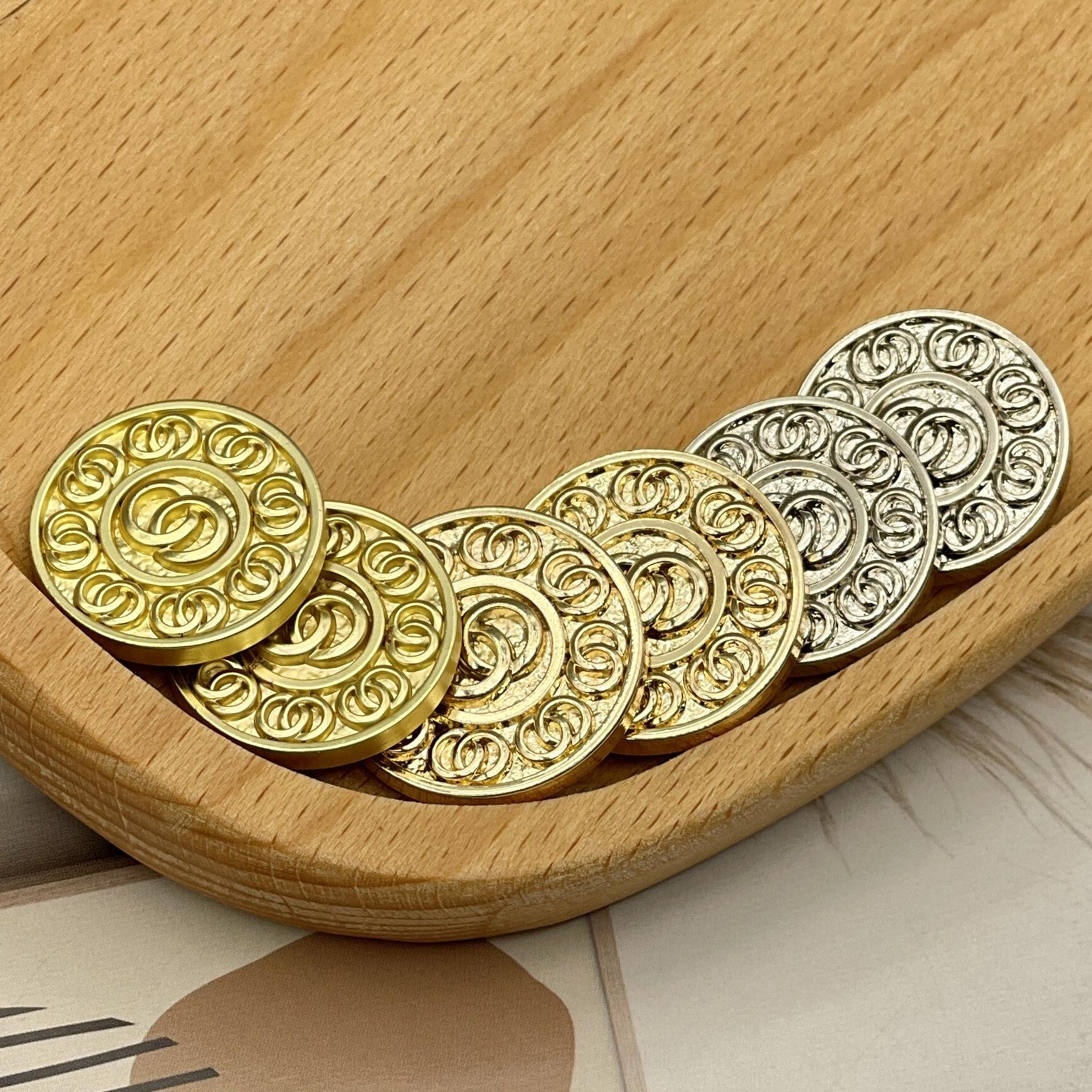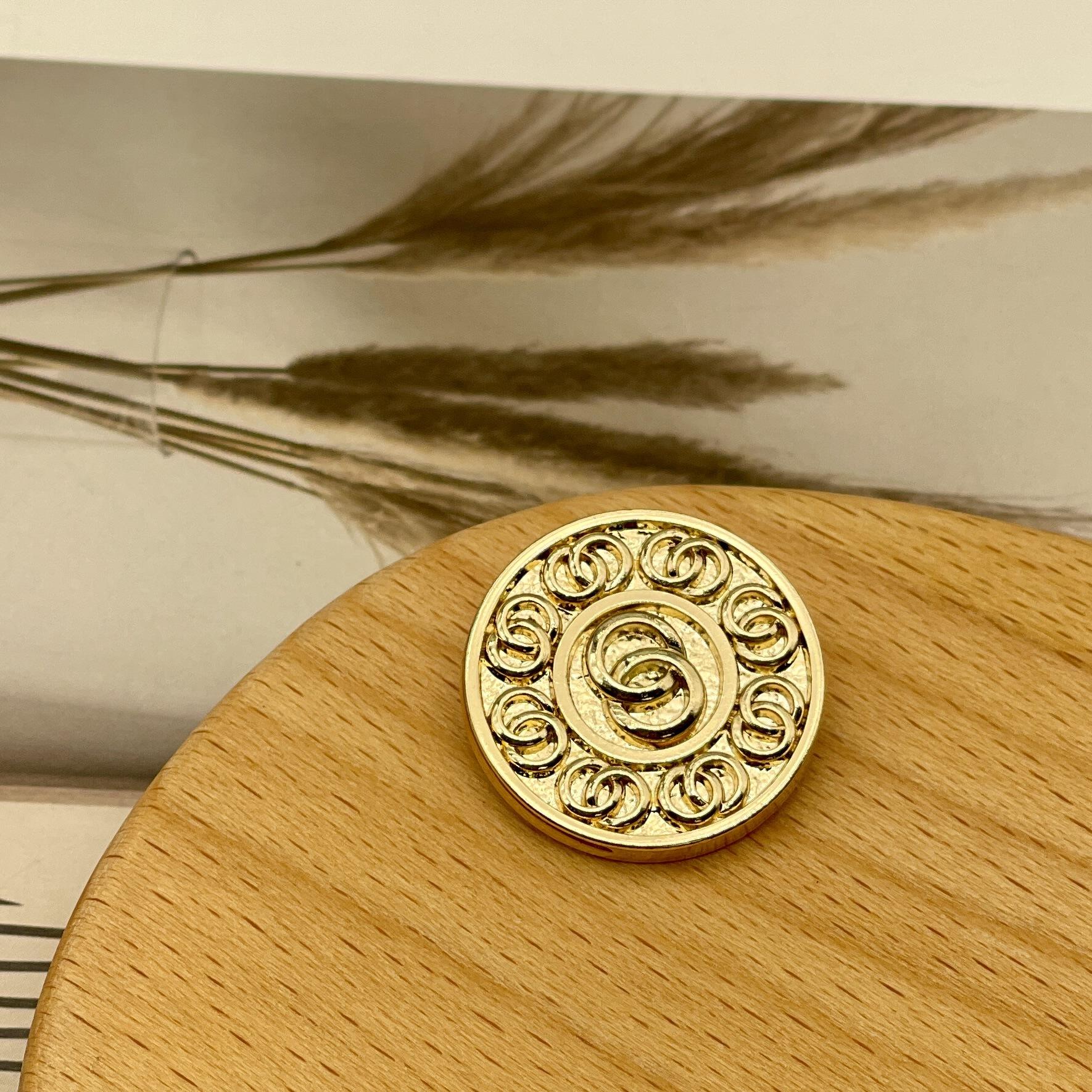 Botón Metálico Moda Estilo Chanel Hecho a Mano Doble Círculo Retro Camisa Antigua Gabardina Abrigo Suéter de Mujer Pies Altos