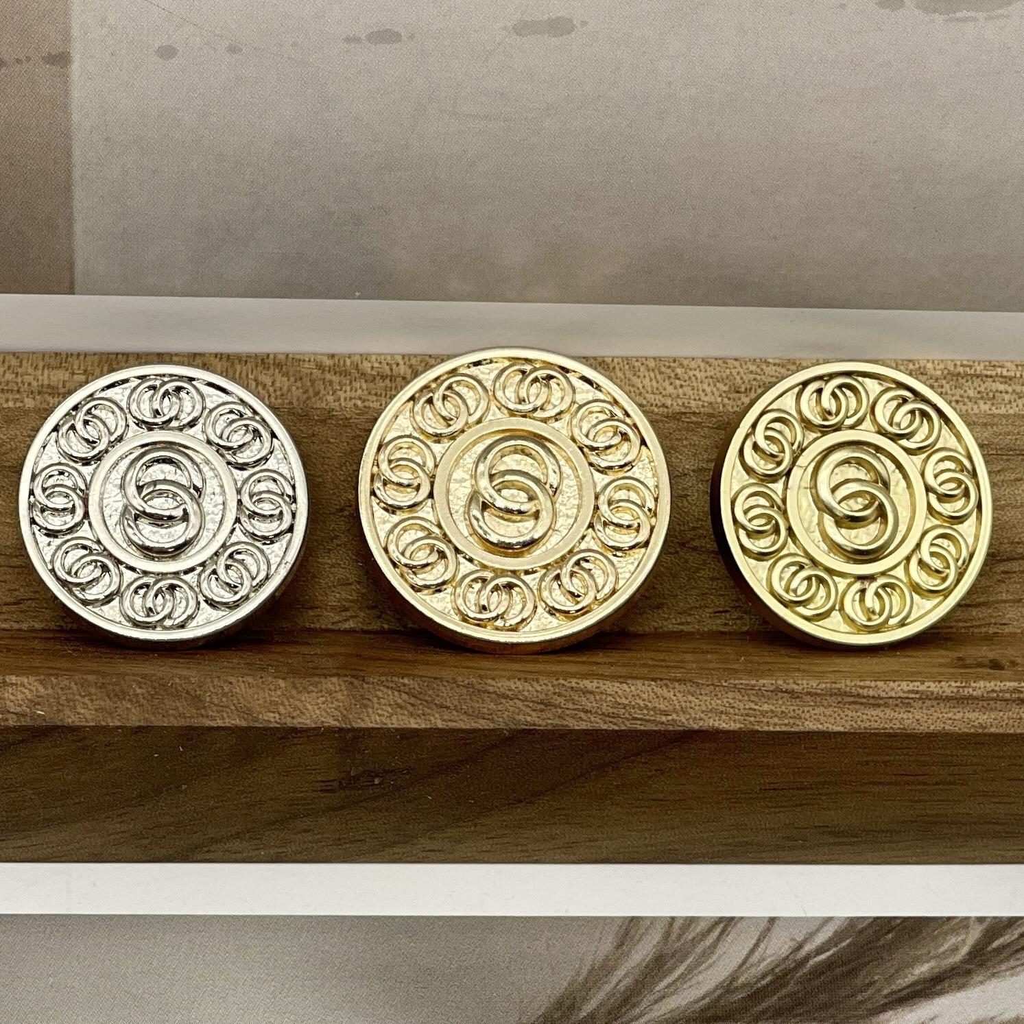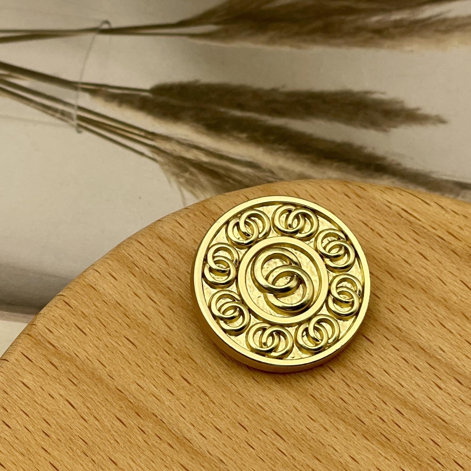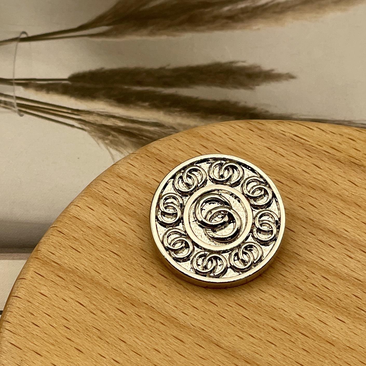 Botón Metálico Moda Estilo Chanel Hecho a Mano Doble Círculo Retro Camisa Antigua Gabardina Abrigo Suéter de Mujer Pies Altos