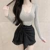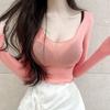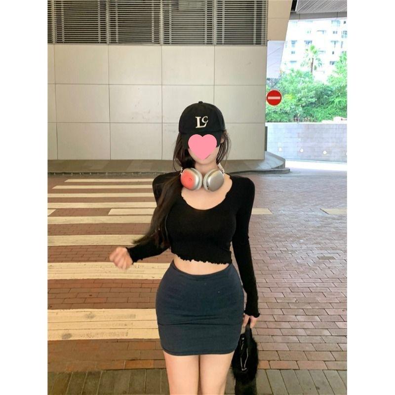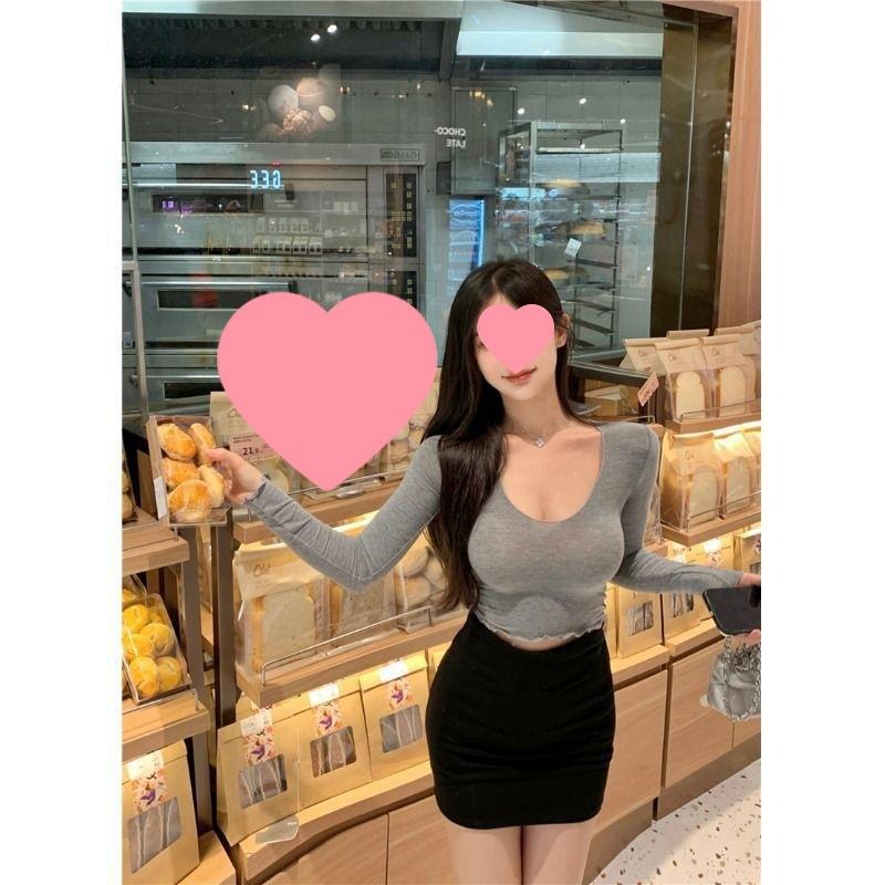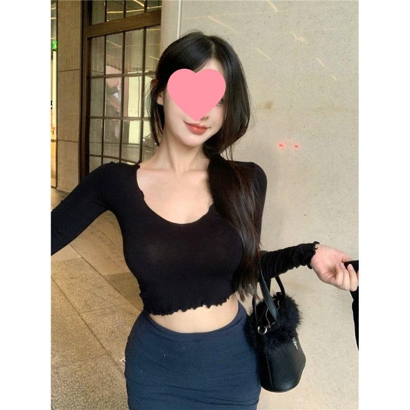 Camiseta de manga larga sexy de chica dulce y de moda para mujer, nueva camiseta de otoño ajustada que combina con todo, camiseta base adelgazante, top de moda