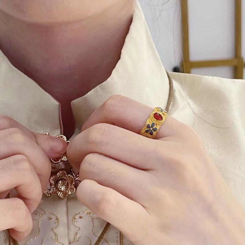 Anillo Xiangxu Filament Dragon Fenghua Femenino Guofeng Retro Esmalte Amarillo Nuevo Anillo de Boda Chino Moda Outlet de Fábrica