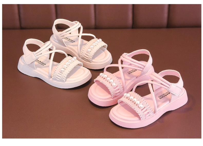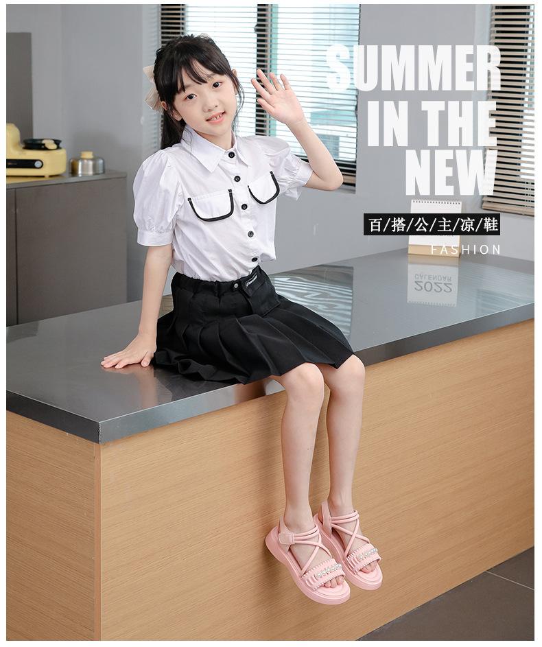 Sandalias para Niñas 2025 Verano Nuevos Zapatos de Princesa para Niños Suela Suave Zapatos de Playa Antideslizantes Suela Suave Zapatos para Niñas Medianos y Grandes