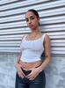 Estilo Europeo y Americano para Mujer 2025 Verano Nuevo Casual Letra Pedrería Cuello U Sexy Sin Mangas Camisola Corta para Mujer
