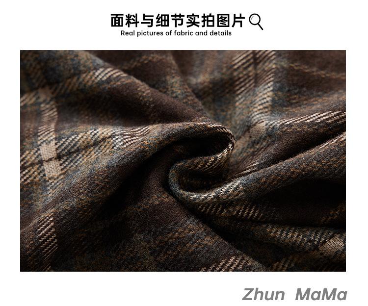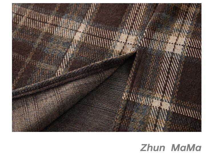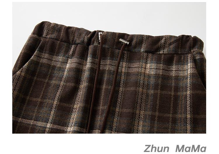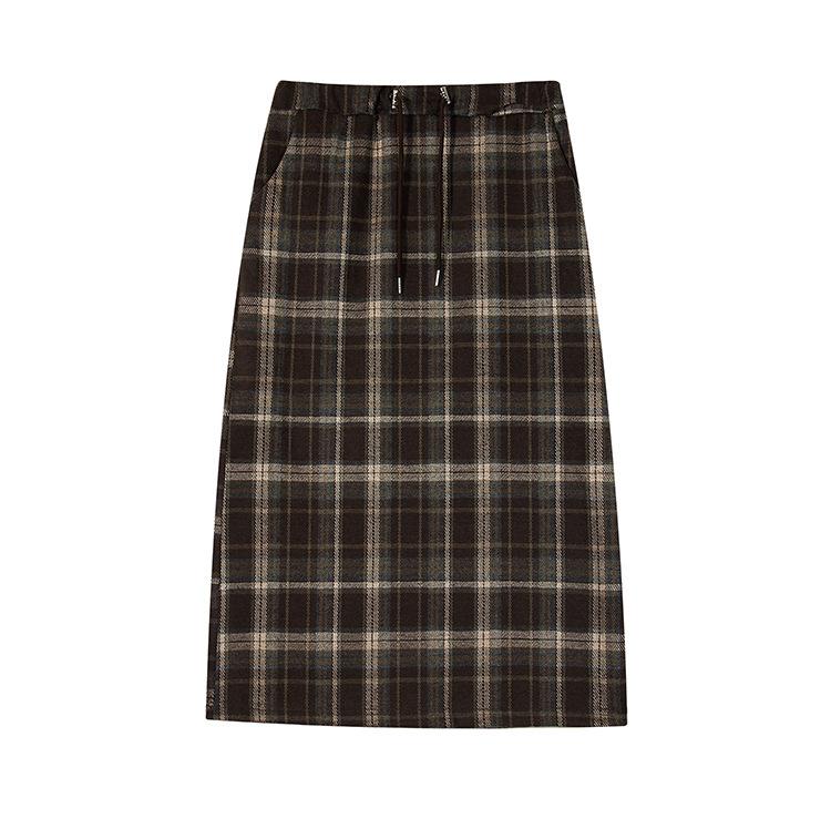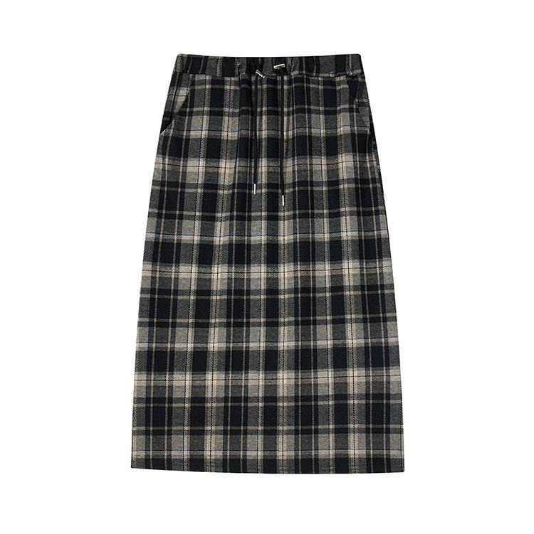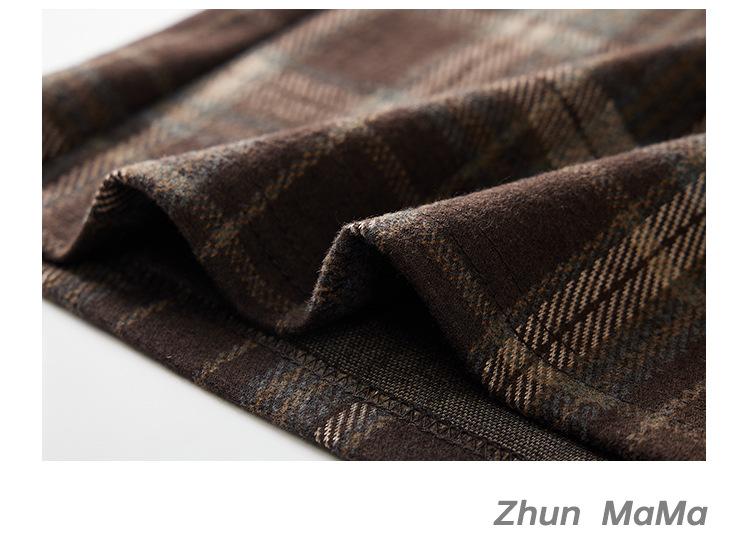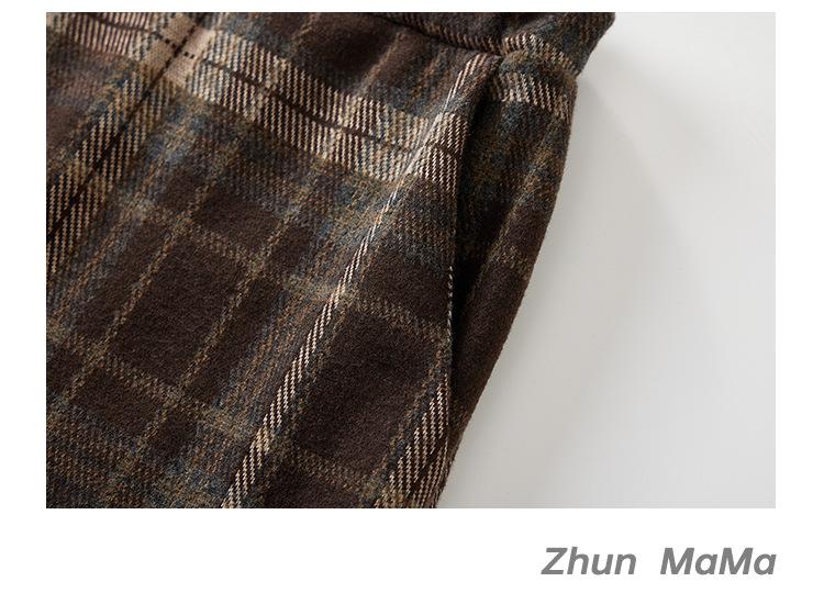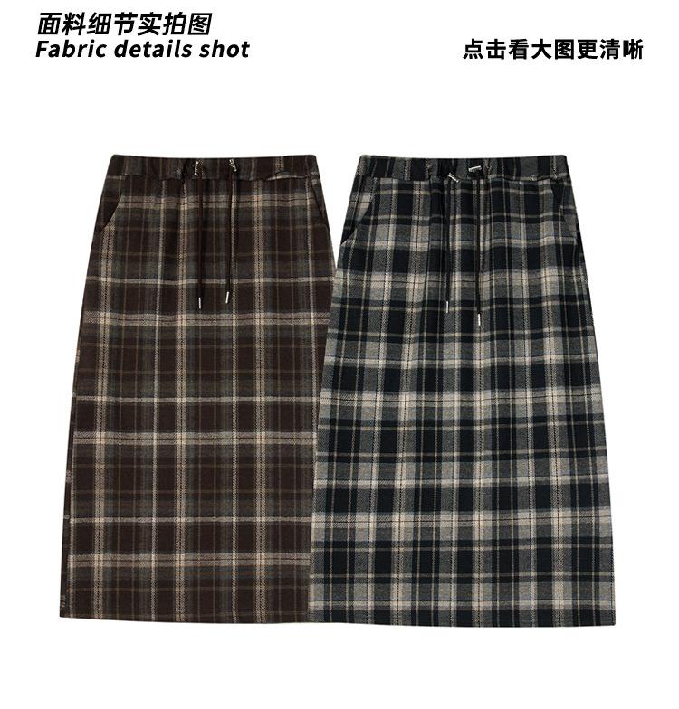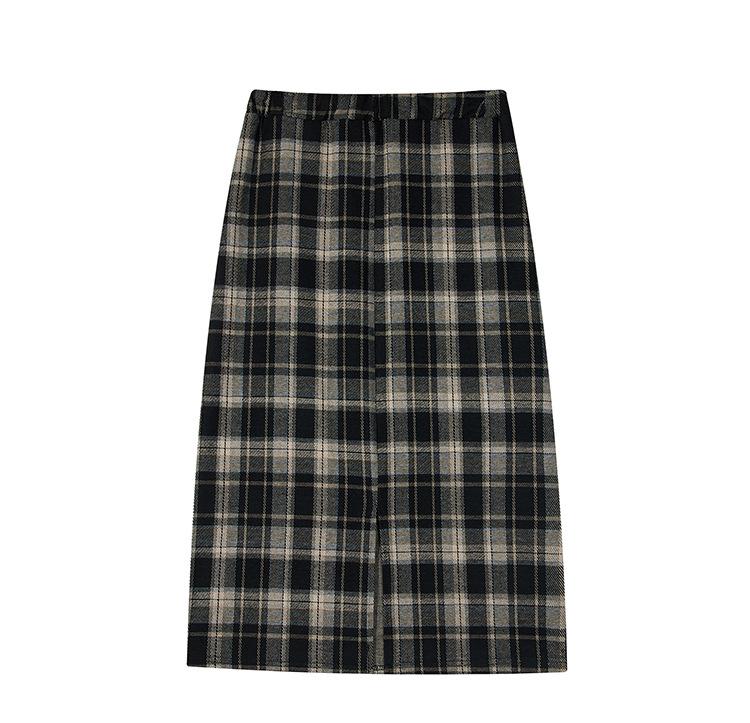 Falda de Maternidad Primavera y Otoño Nueva Falda a Cuadros Soporte para el Vientre de Maternidad Falda Recta de Lana Aspecto Adelgazante Abertura Falda de un Paso