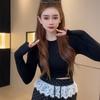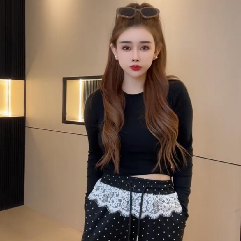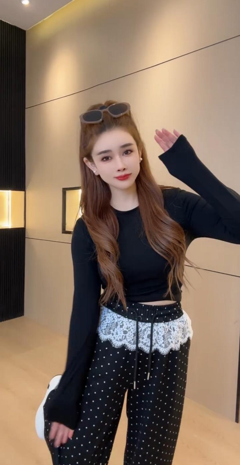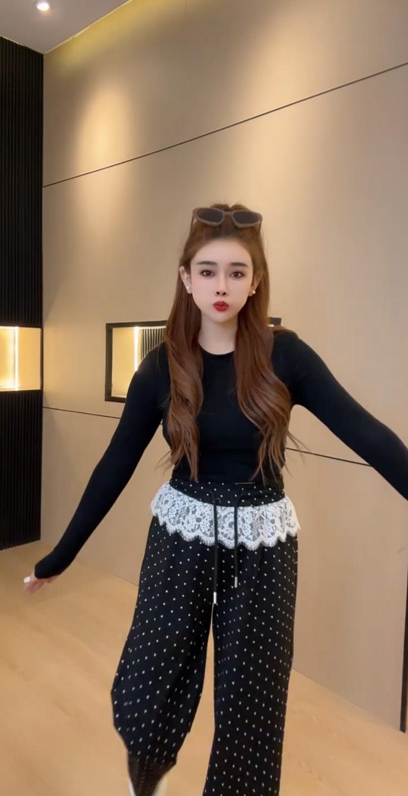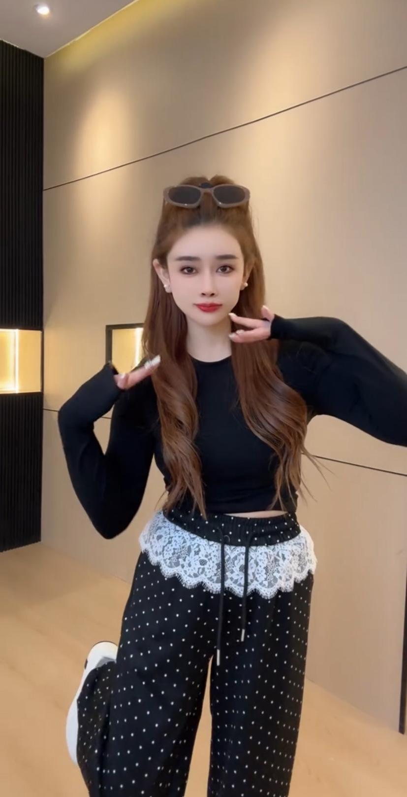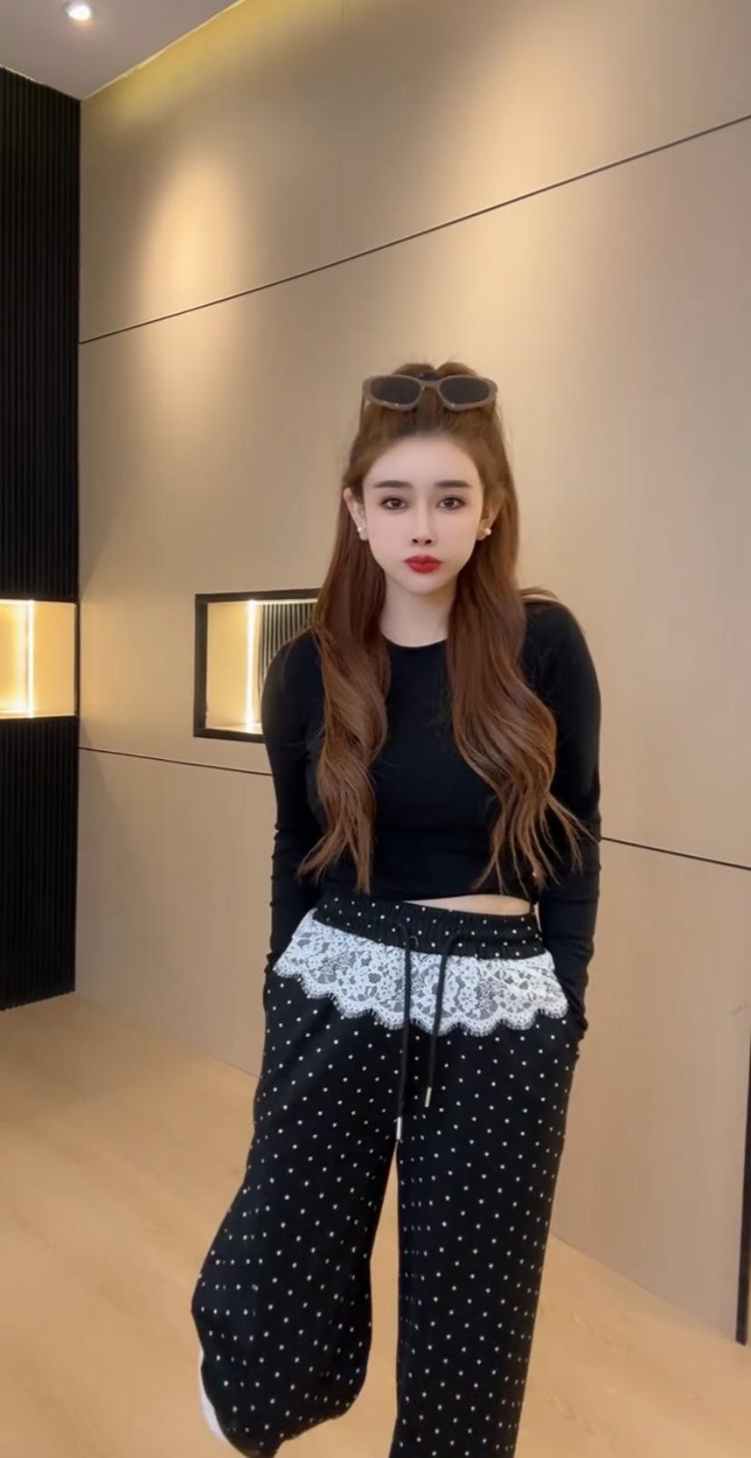 Moda Femenina Primavera 2025 Pantalones Rectos con Sentido del Diseño Elegante Encaje Puntadas Punto de Ola Pierna Ancha Estilo Colgante Pantalones Casuales