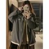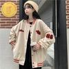 Abrigo de traje de béisbol de estilo perezoso para mujer, otoño e invierno, forrado de vellón, grueso, retro, suelto, casual, suéter cárdigan, moderno