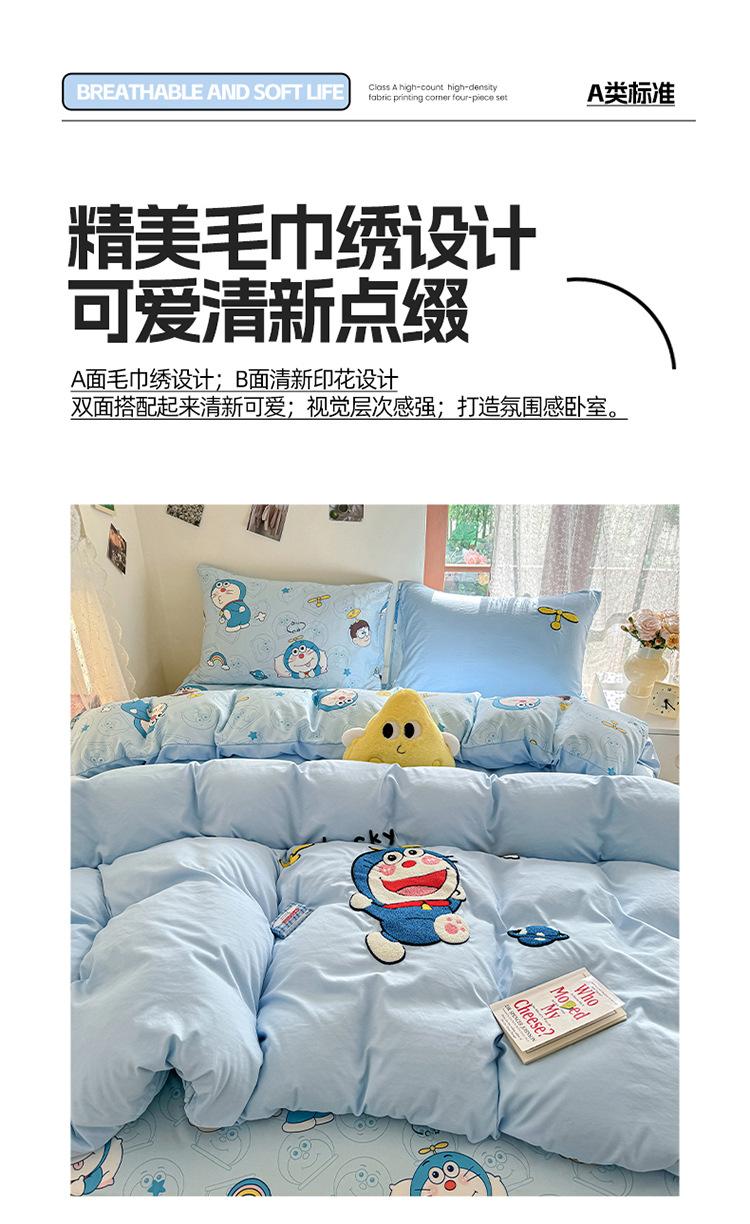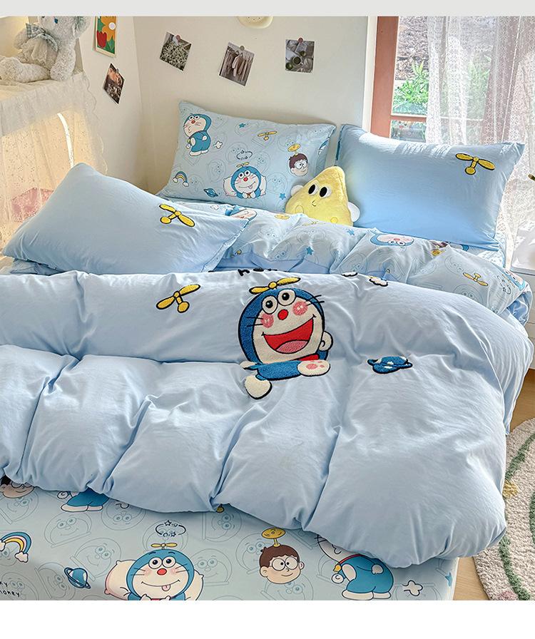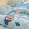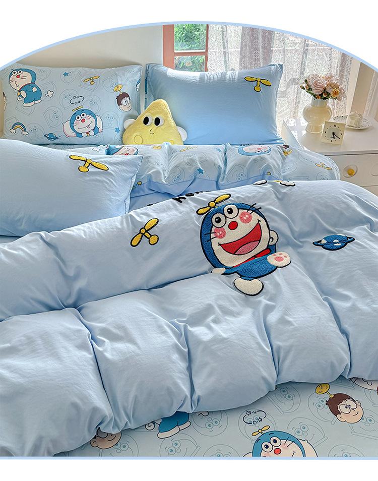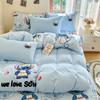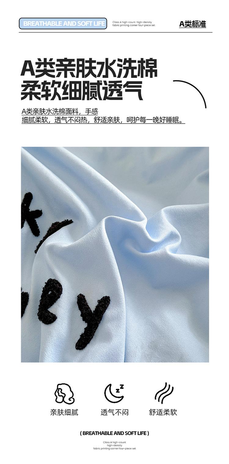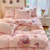 Juego de cuatro piezas de ropa de cama para niños Algodón lavado Niños y Niñas Dormitorio Dibujos animados Bordado Funda de edredón Sábana Juego de tres piezas Cubrecama