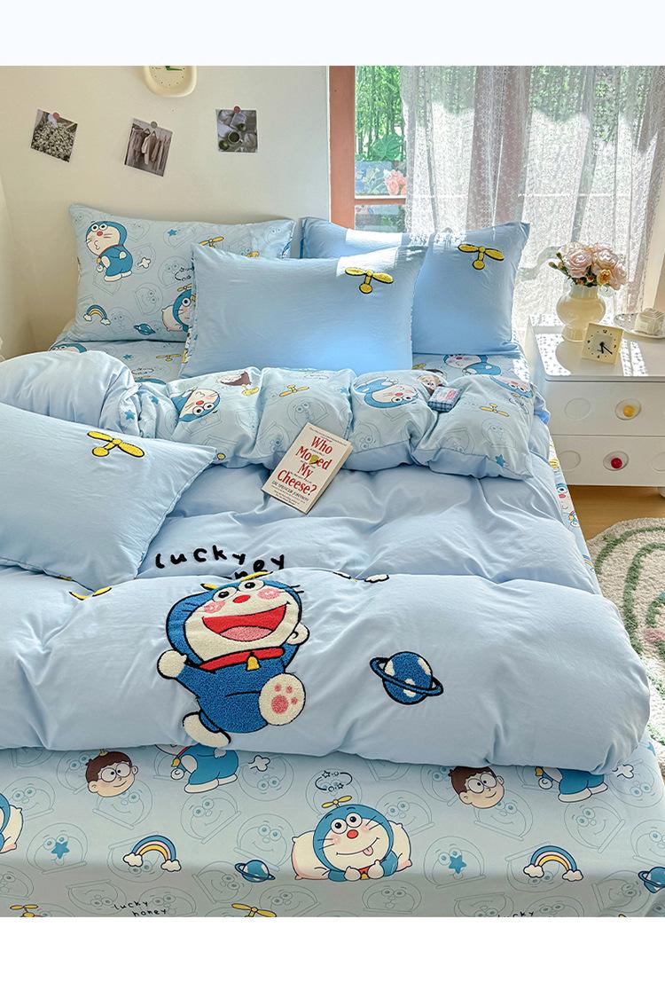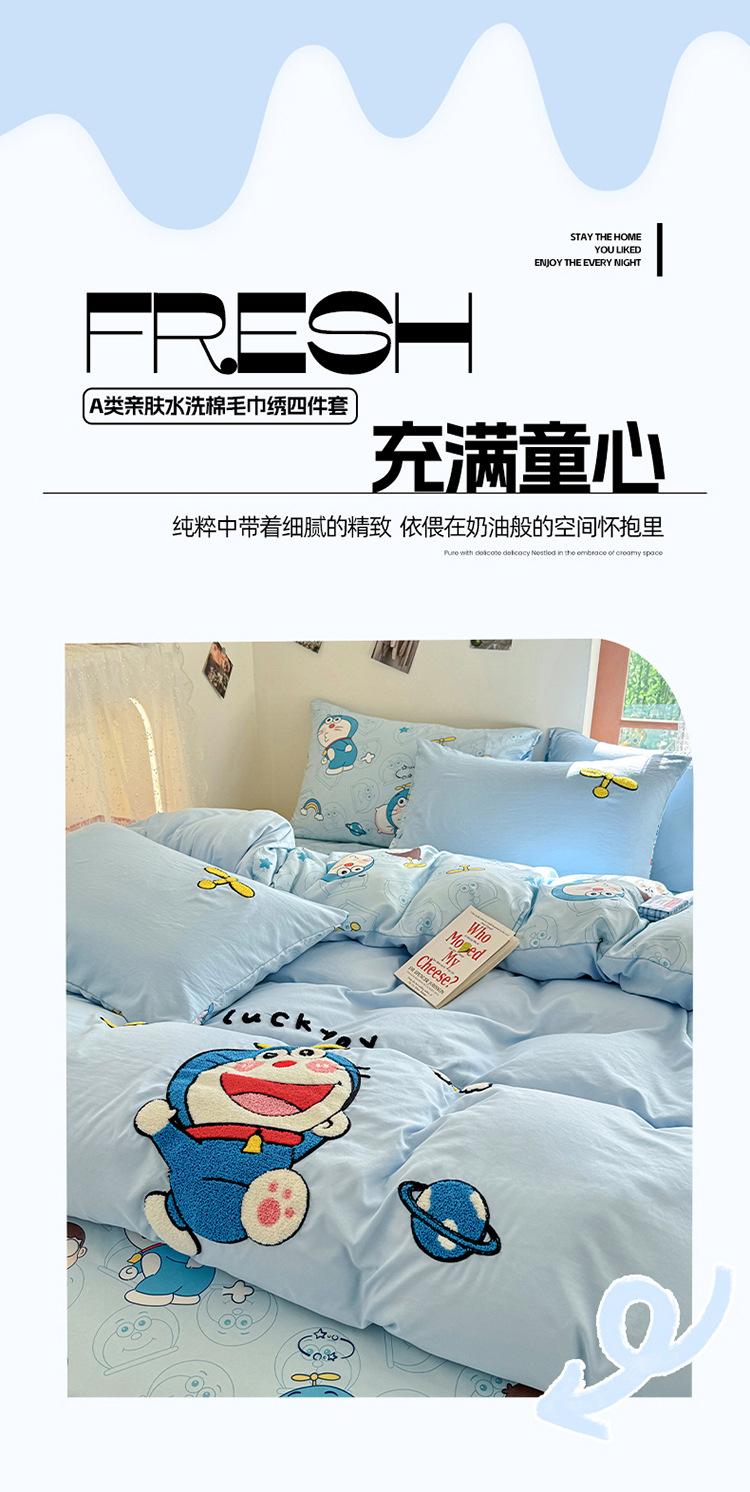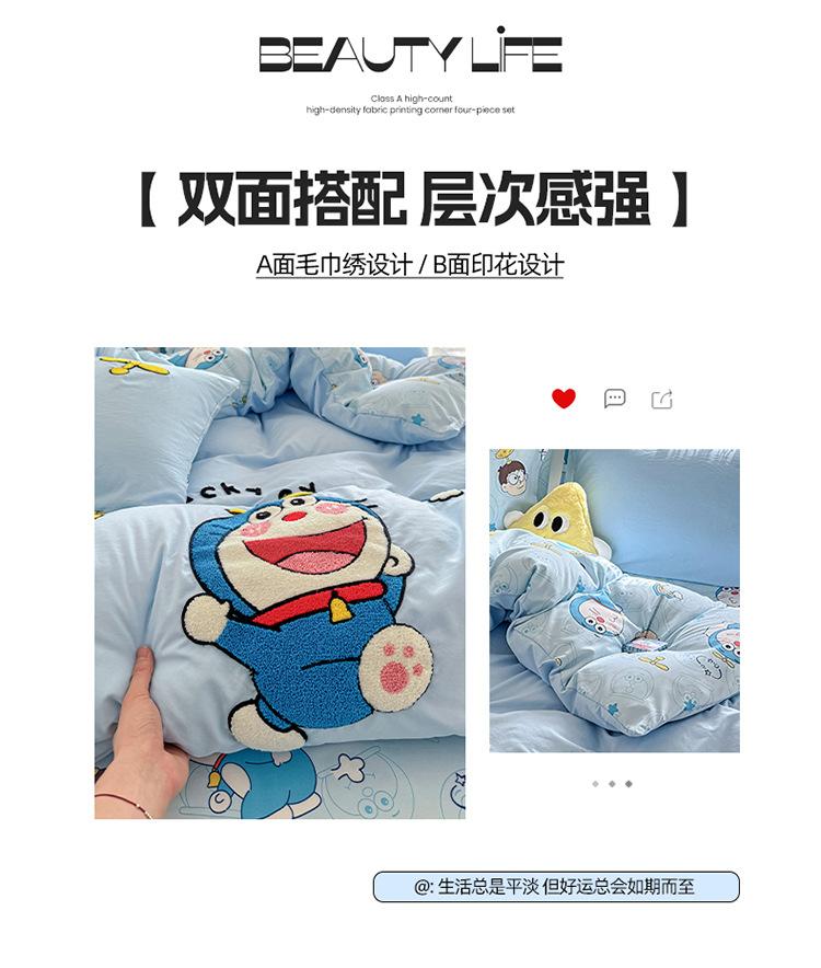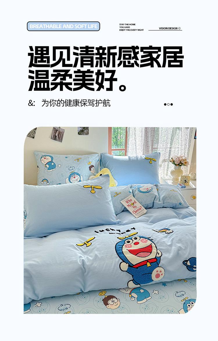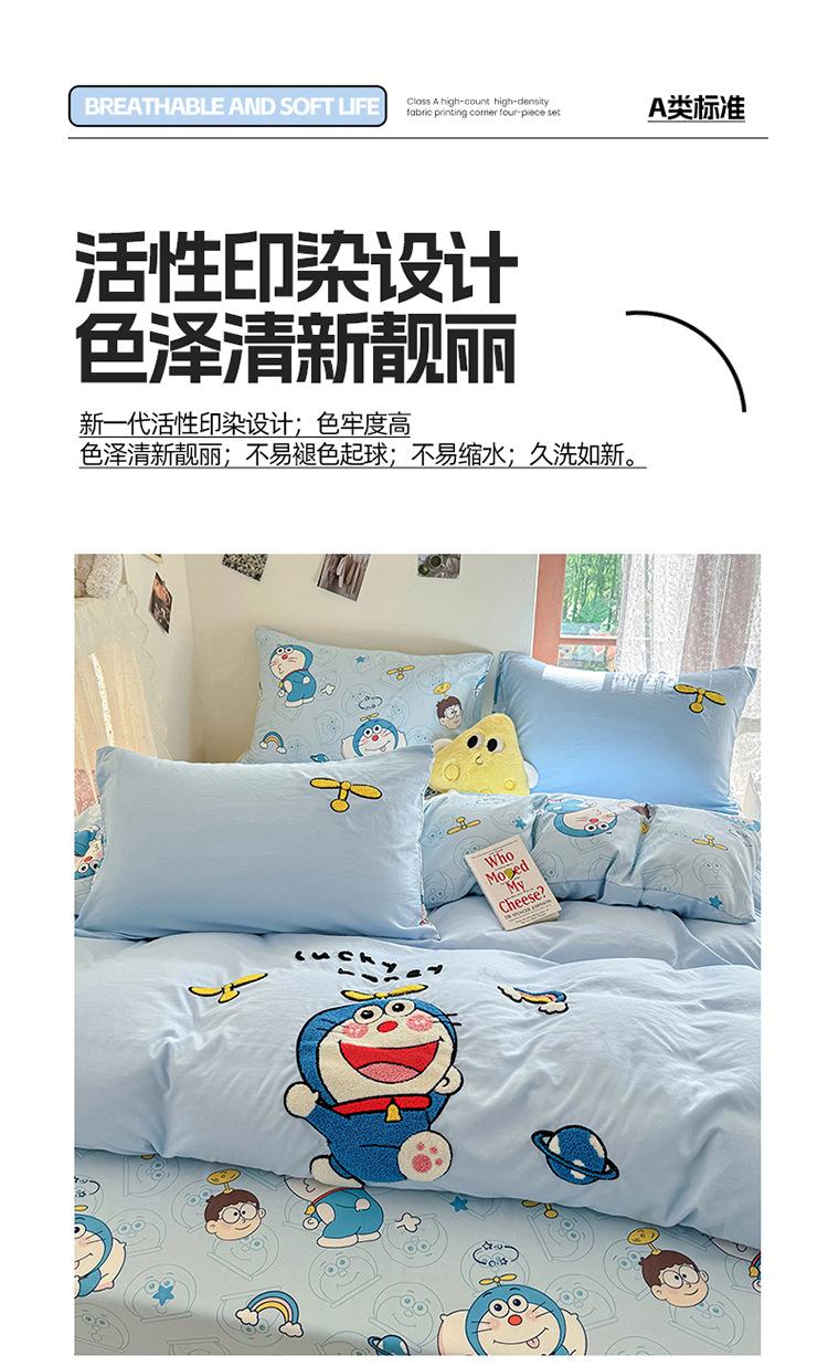 Juego de cuatro piezas de ropa de cama para niños Algodón lavado Niños y Niñas Dormitorio Dibujos animados Bordado Funda de edredón Sábana Juego de tres piezas Cubrecama