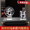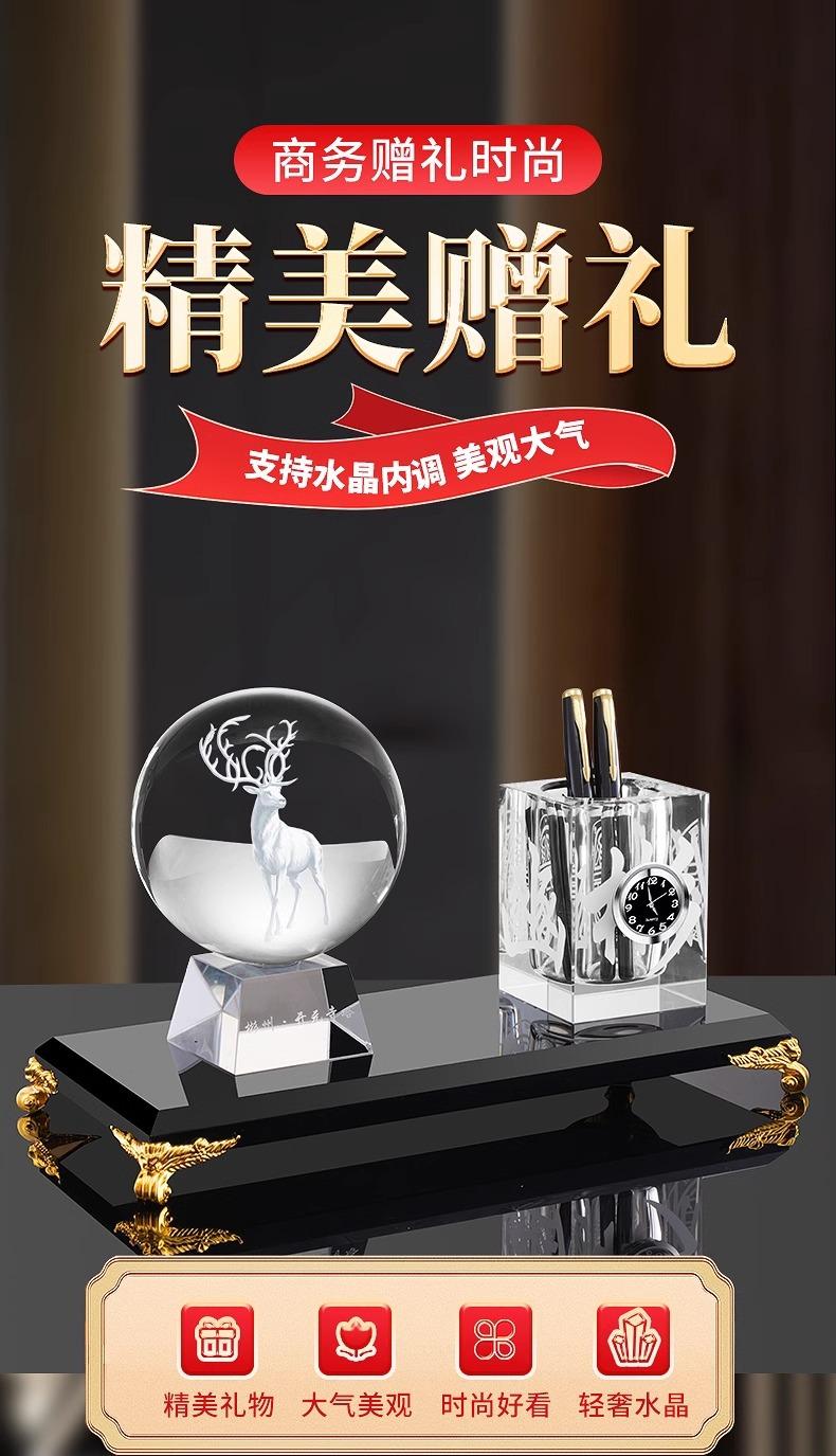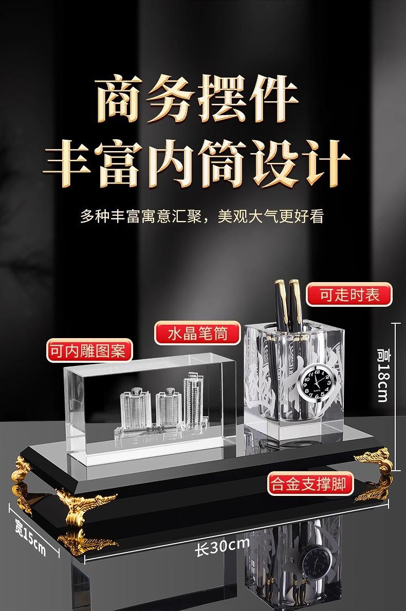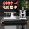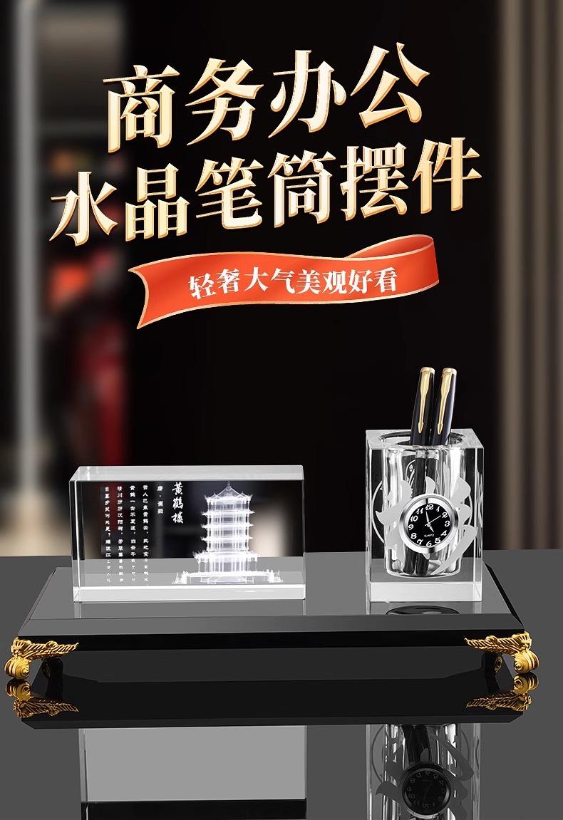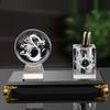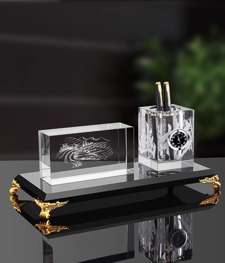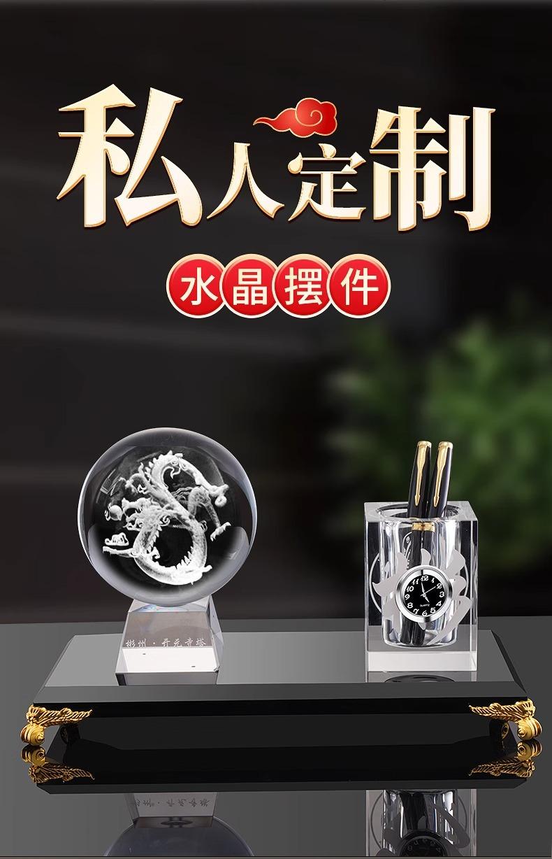 Crystal ball + pen holder, black background, with feet (support customization), Crystal cube + pen holder, bla...