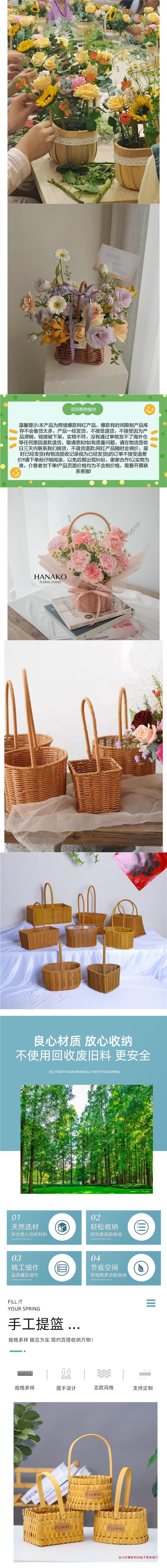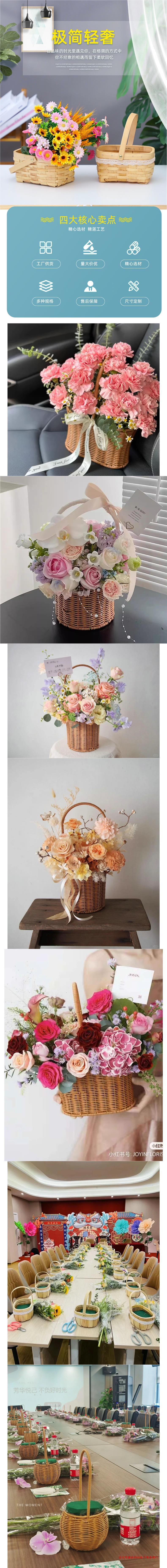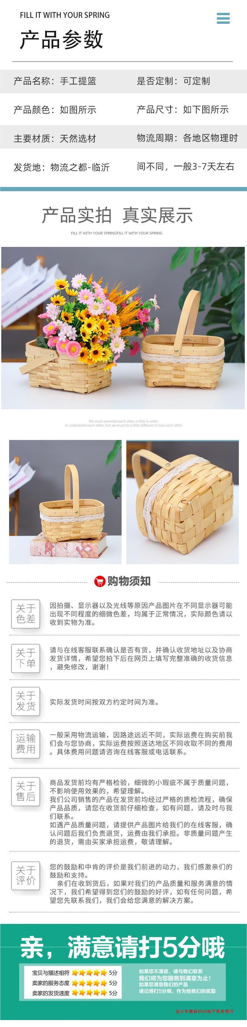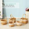 Cesta de flores portátil, cesta de bambú, maceta tejida, cesta pequeña, cesta de paja para niña de las flores, cesta de ratán