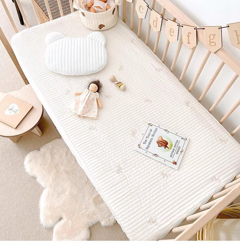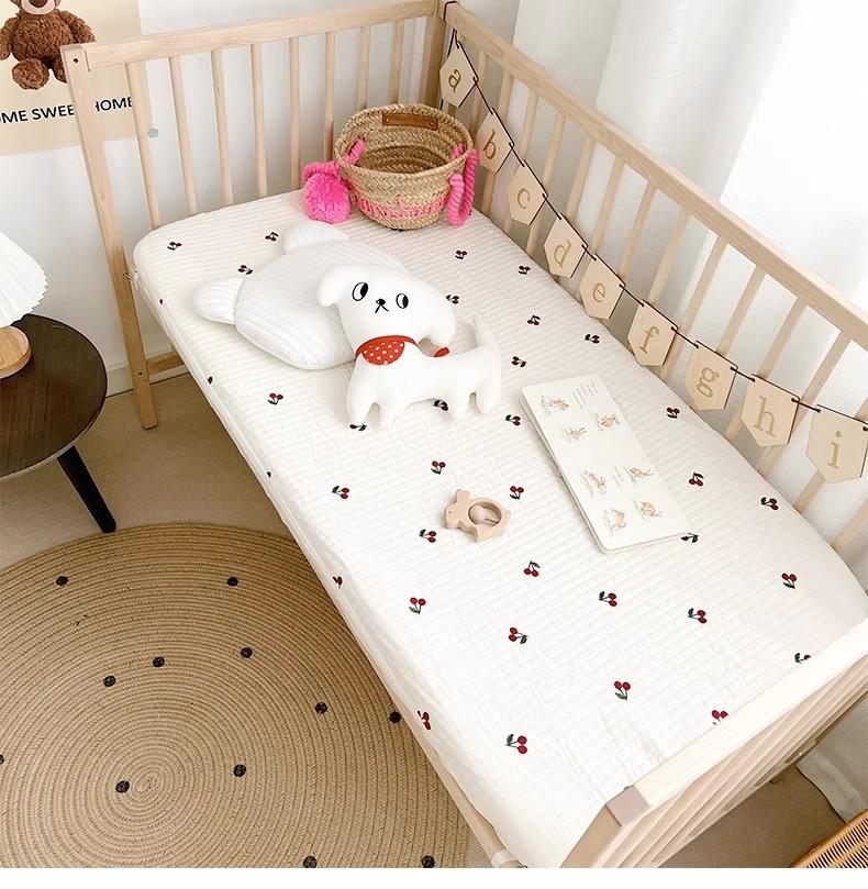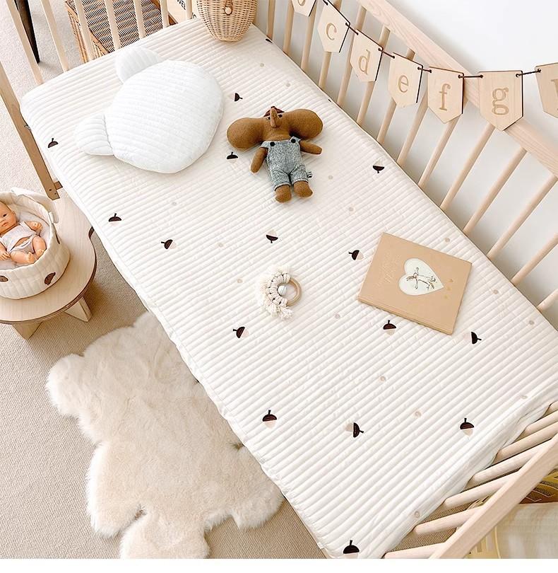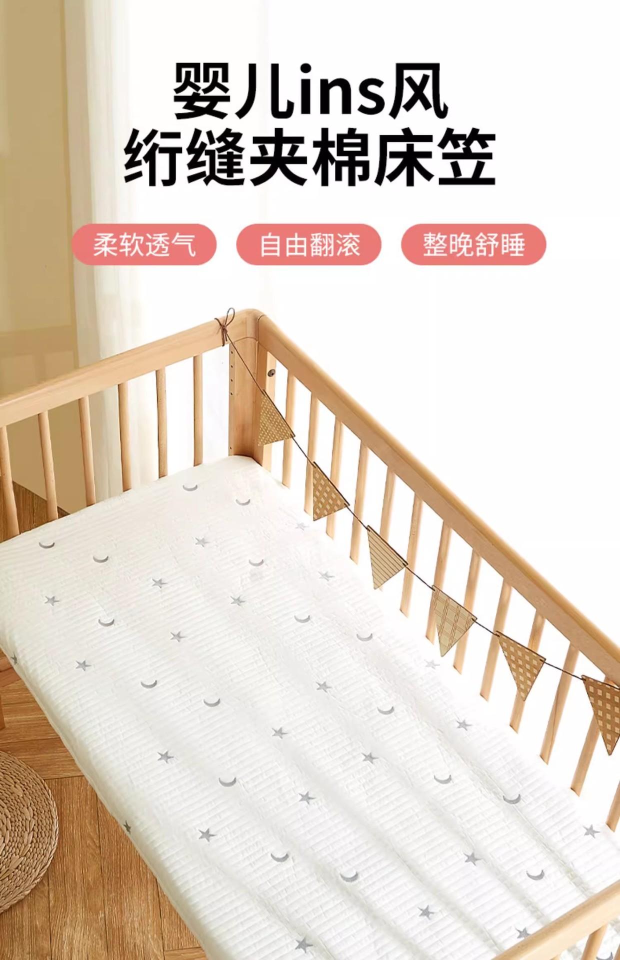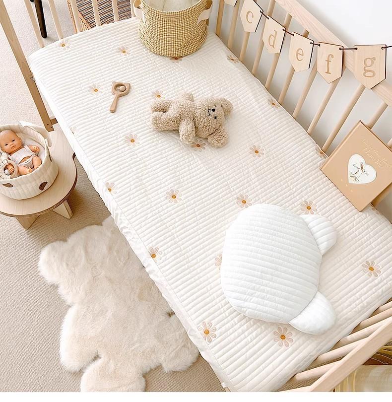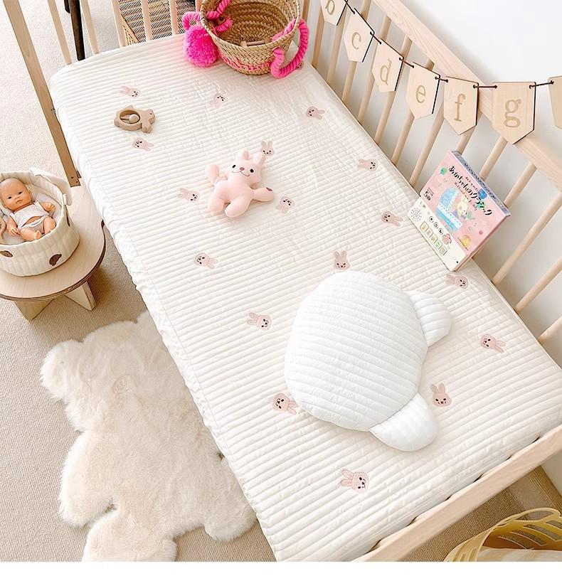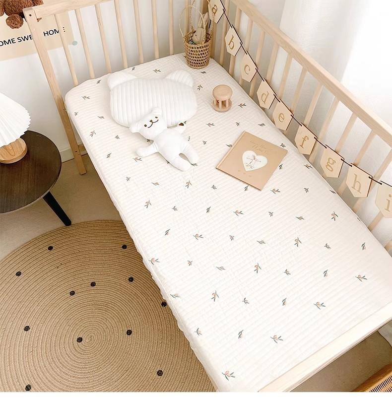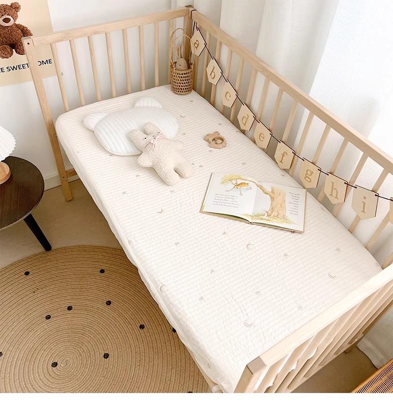 Sábana ajustable para cuna de algodón puro, funda de colchón para recién nacidos, sábana acolchada para niños, cosida para cama de cuatro estaciones
