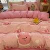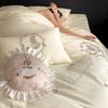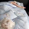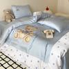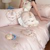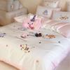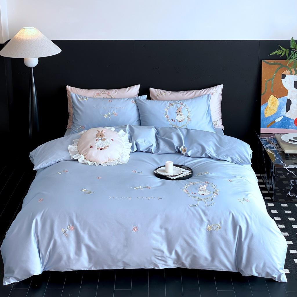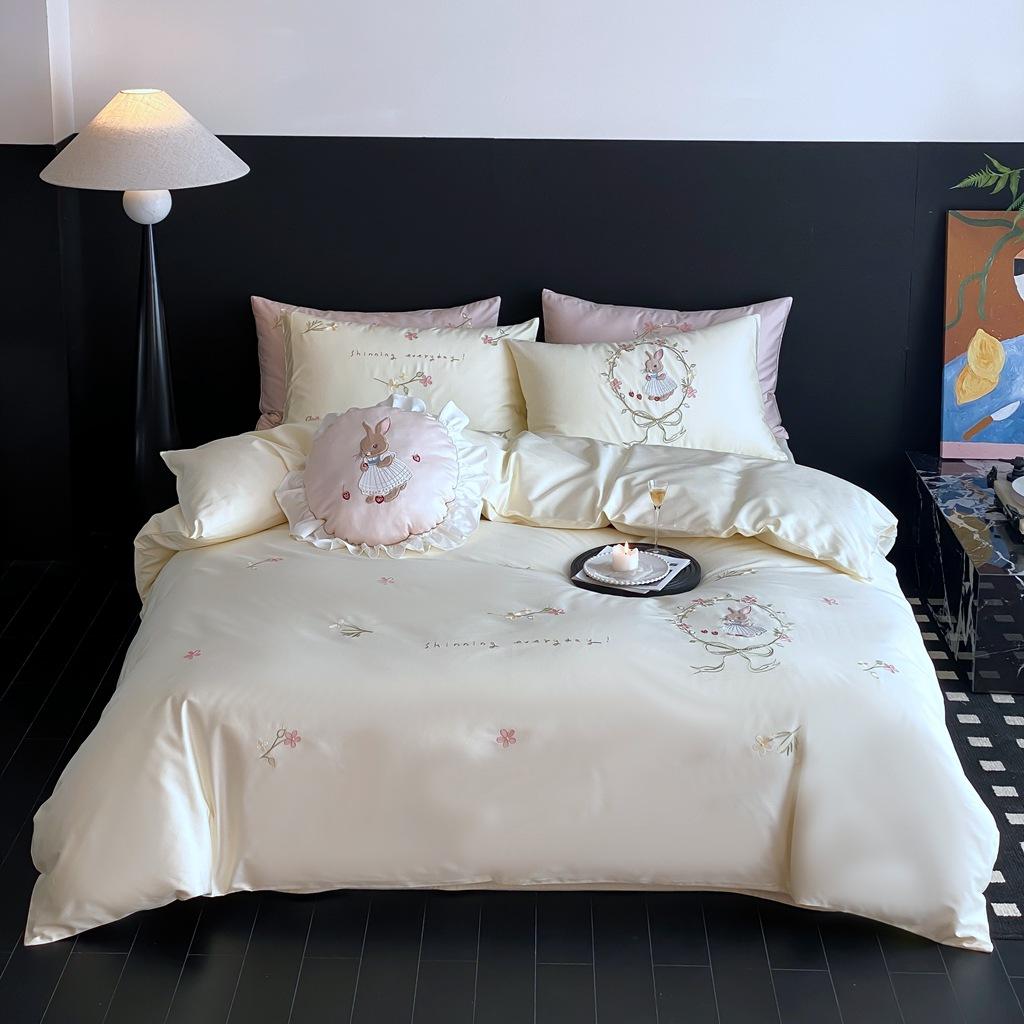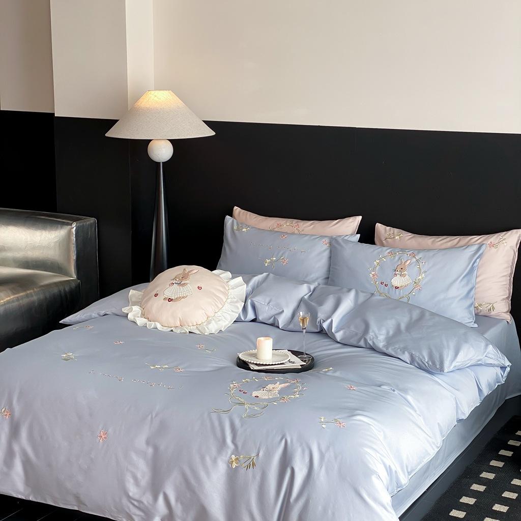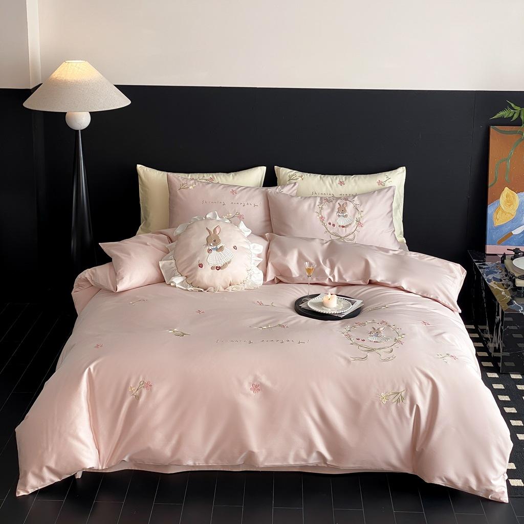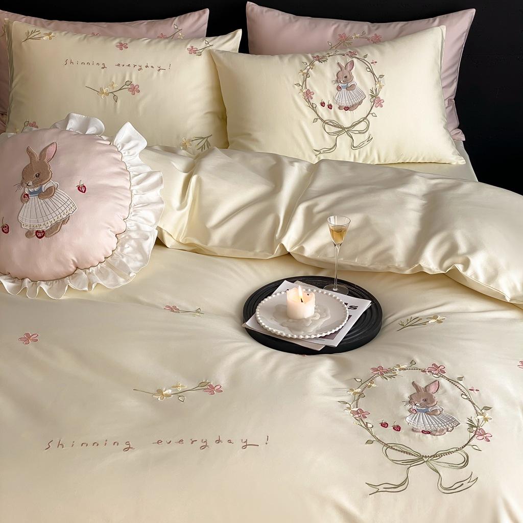 Juego de cuatro piezas de algodón de fibra larga Corazón de niña Rama alta Algodón Algodón Lindo Conejo Bordado Funda de edredón Sábana Cama Ropa de cama Primavera y Verano