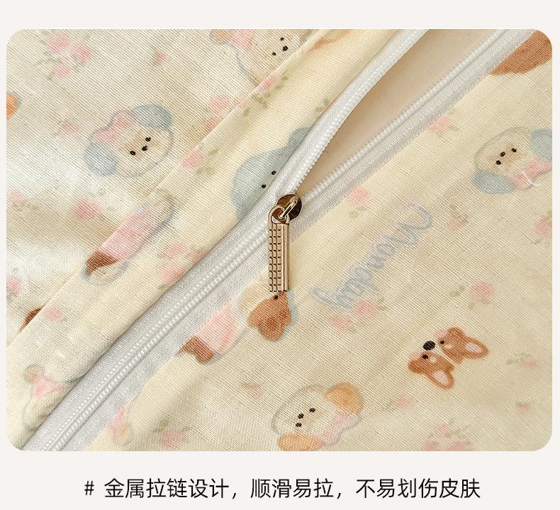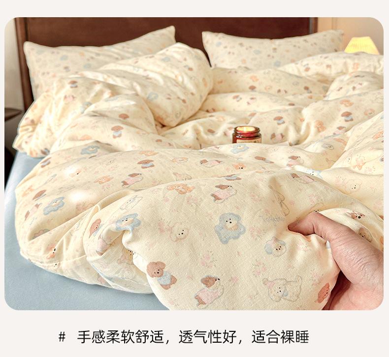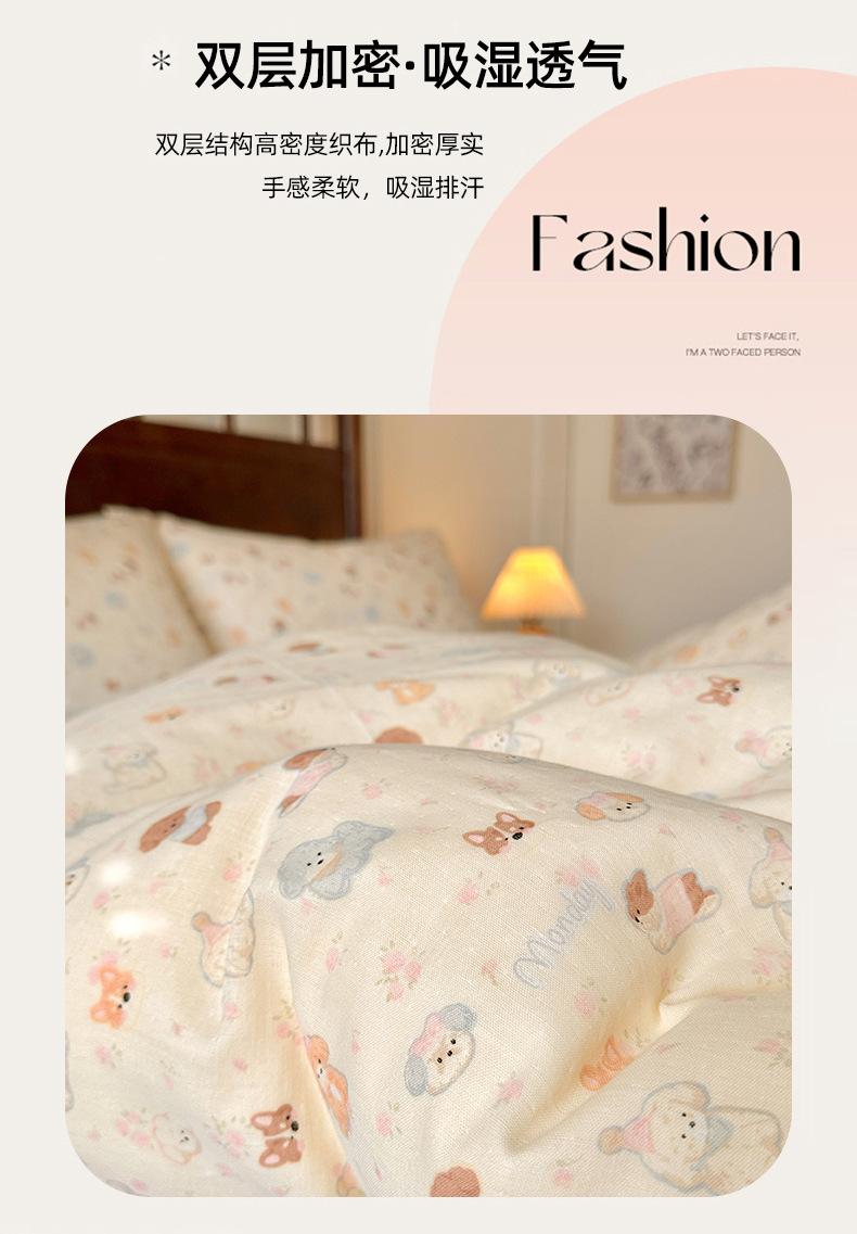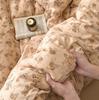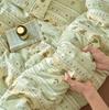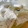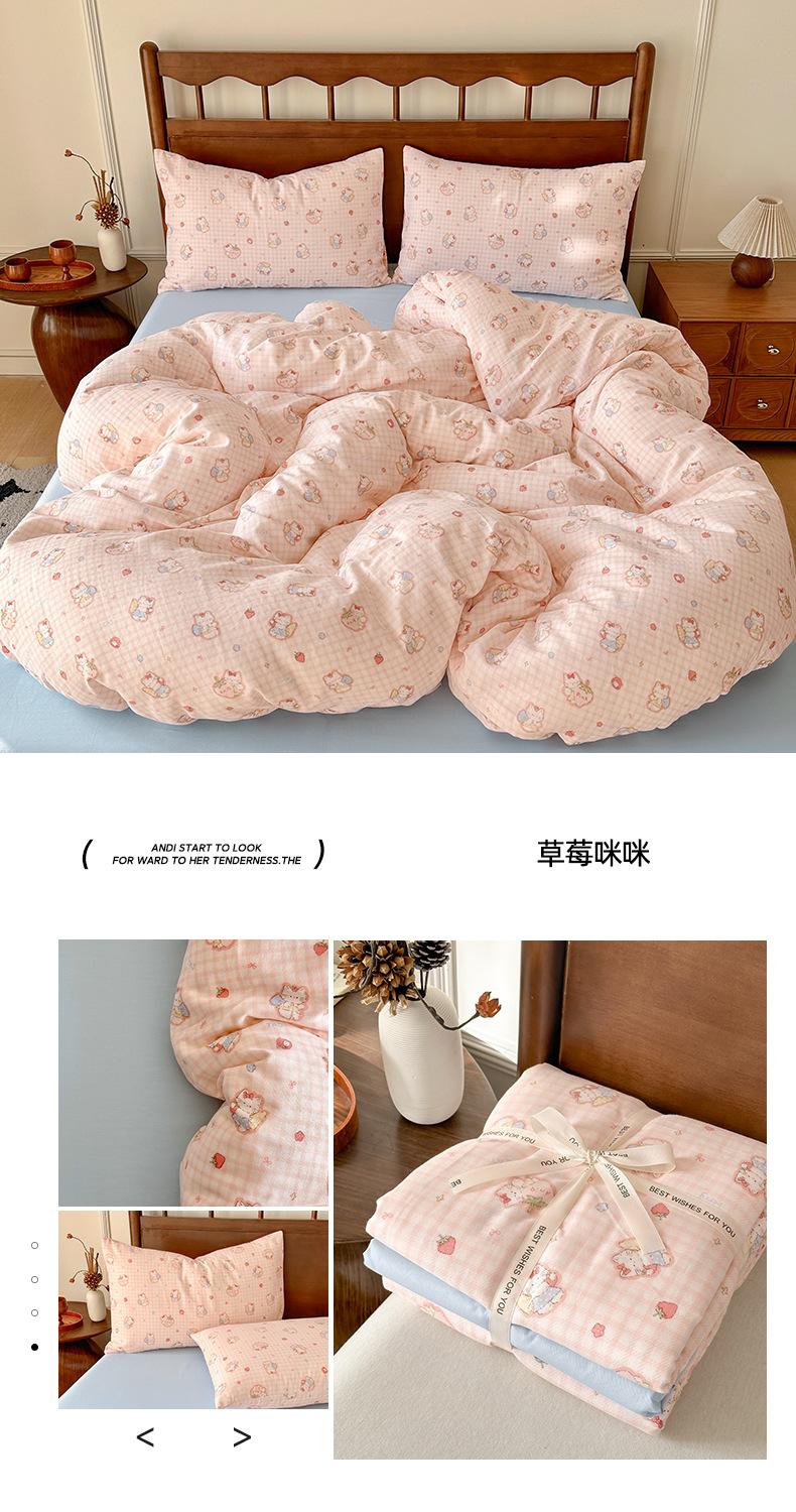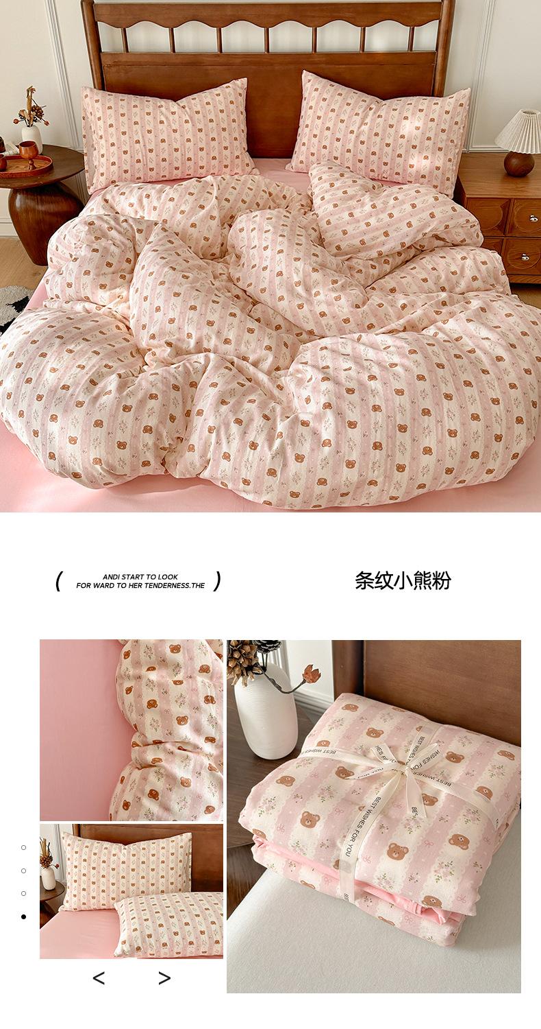 Juego de edredón de algodón de doble capa de cuatro piezas de calidad materna e infantil de clase A, adorable funda de edredón de algodón con dibujos animados de corazón para niña, ropa de cama de 1,5 m y 1,8 m