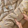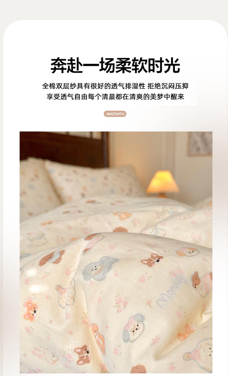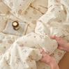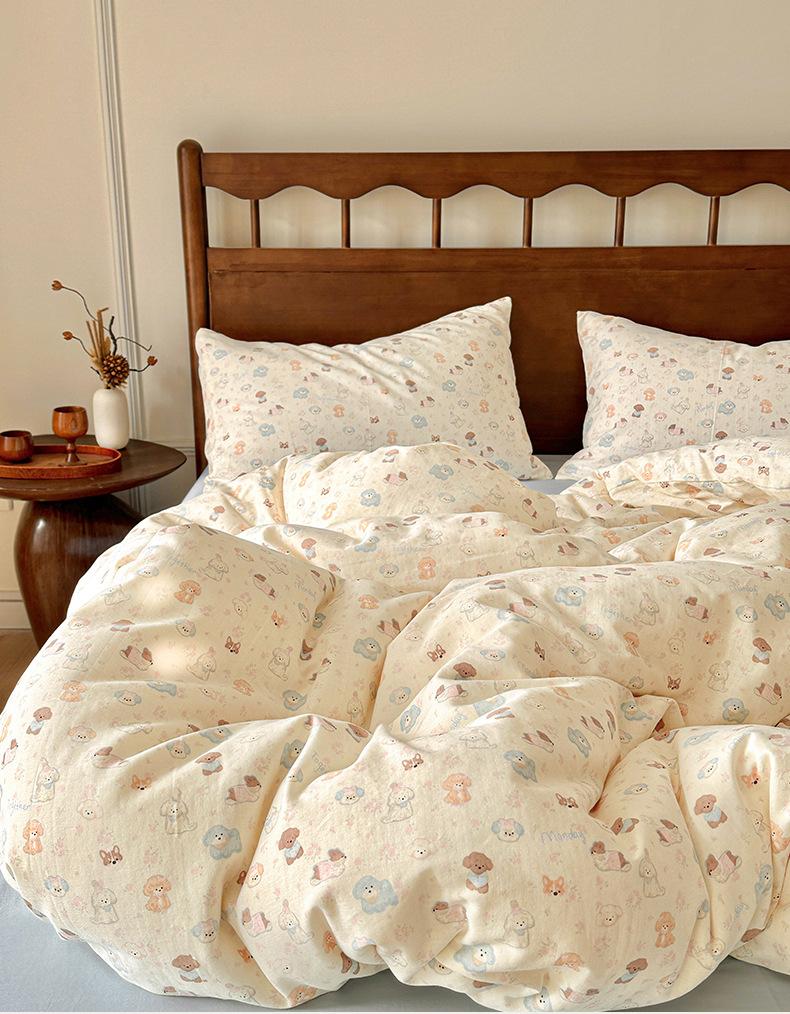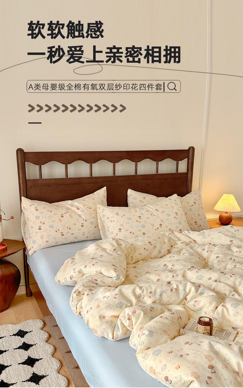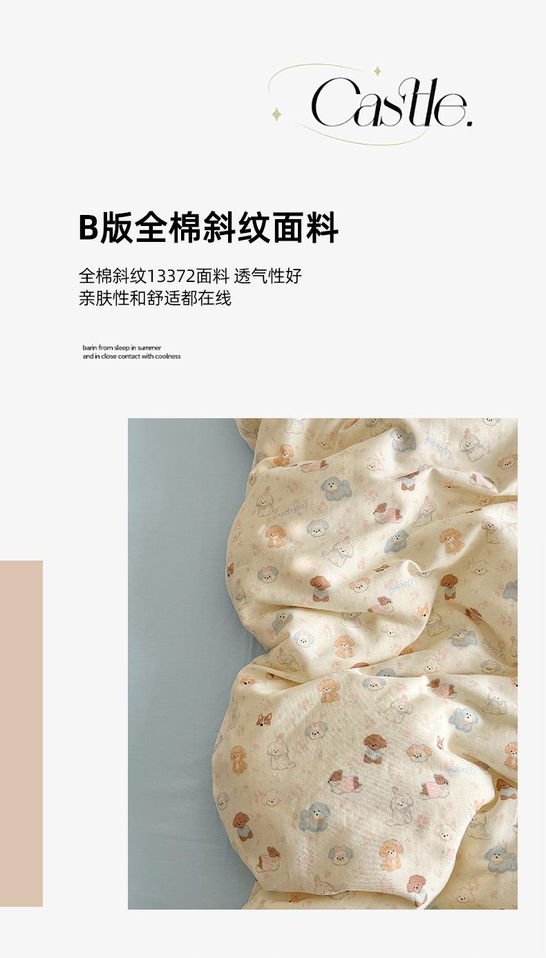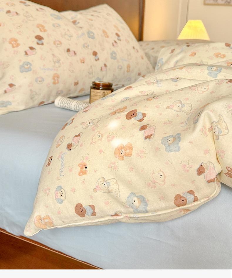 Juego de edredón de algodón de doble capa de cuatro piezas de calidad materna e infantil de clase A, adorable funda de edredón de algodón con dibujos animados de corazón para niña, ropa de cama de 1,5 m y 1,8 m