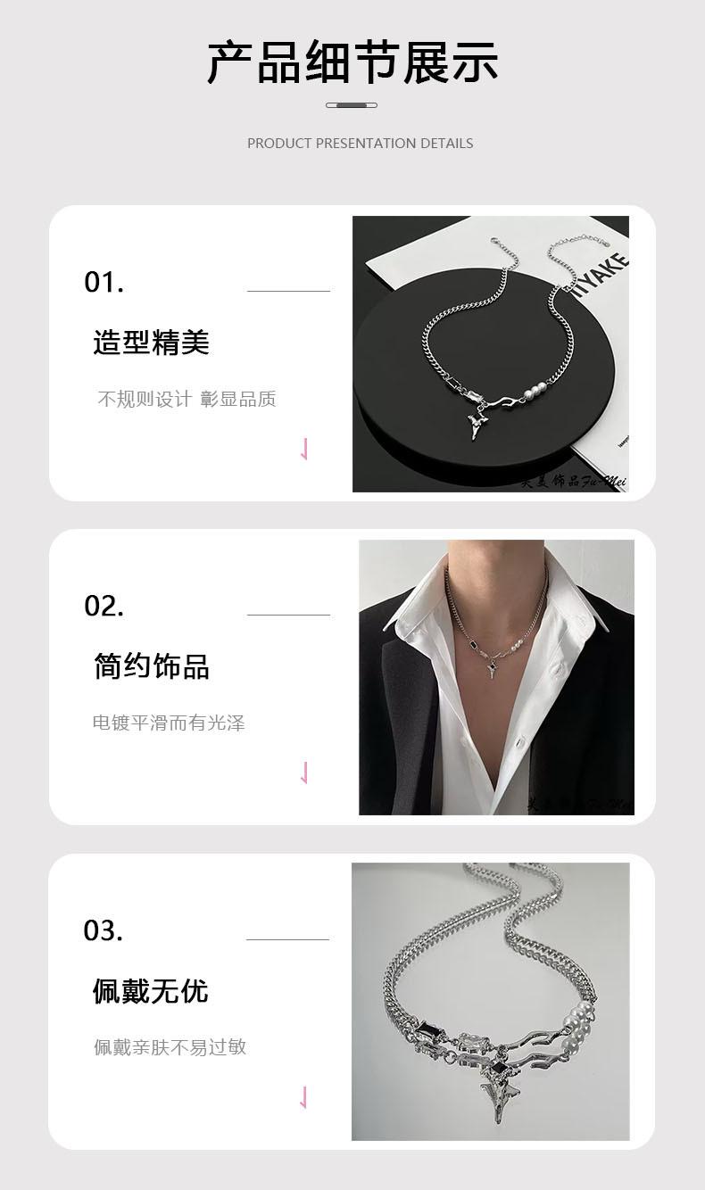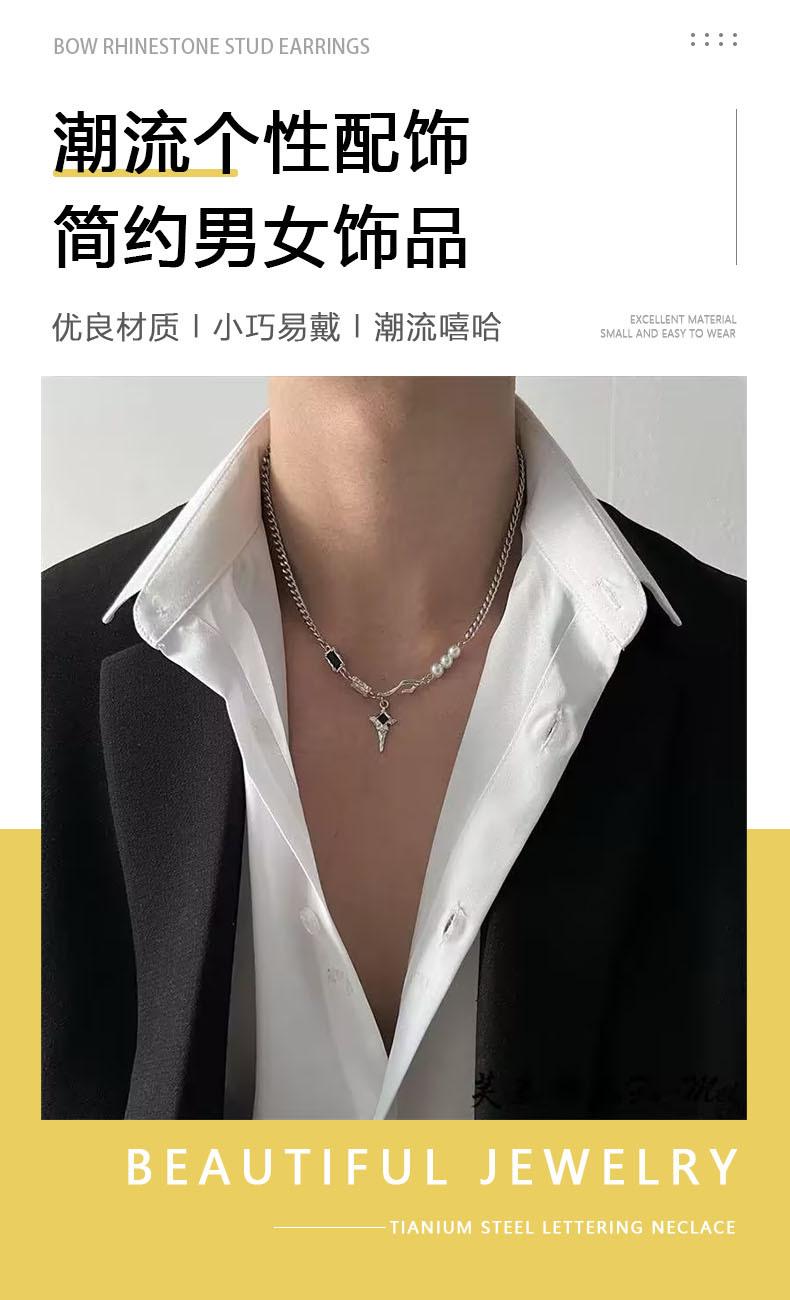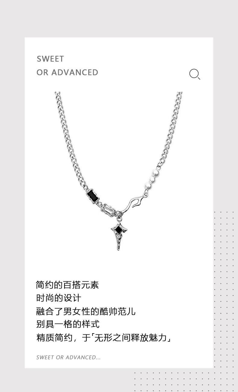 Collar Estrella Zircón Blanco y Negro Mangxing Acero Titanio para Hombre Lujo Ligero Hip-hop Dulce Cool Todo Combinable Accesorios de Alta Gama Joyería para Mujer