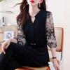 Compra Moda Primaveral 2026 Tallas Grandes para Mujer Blusa Suelta de Gasa con Bloques de Color y Manga Larga al por mayor en Joom.pro