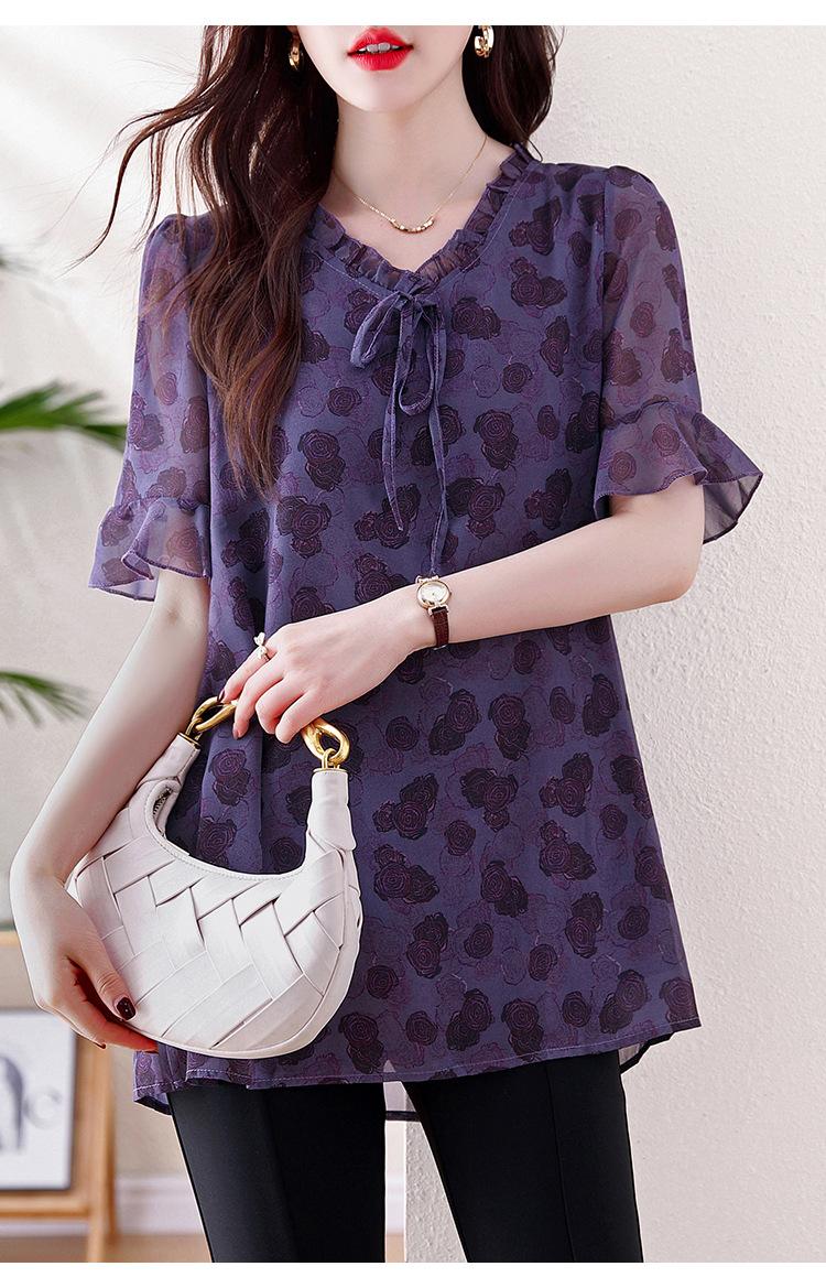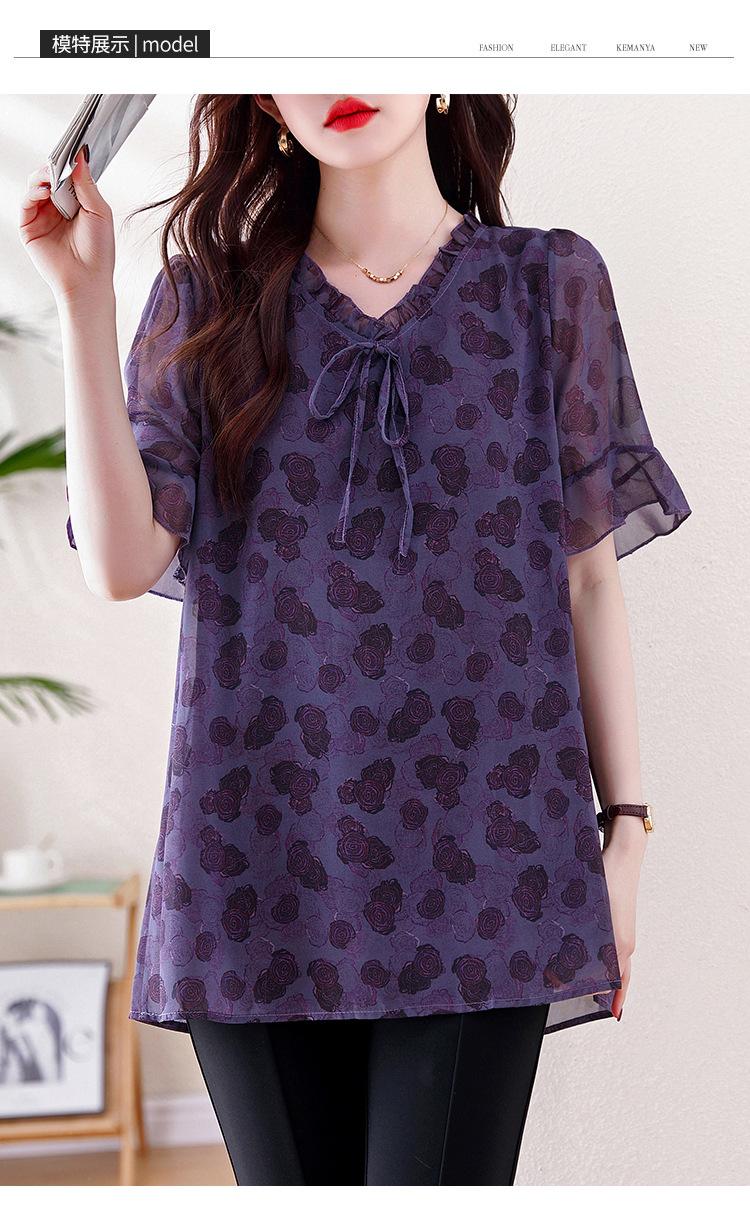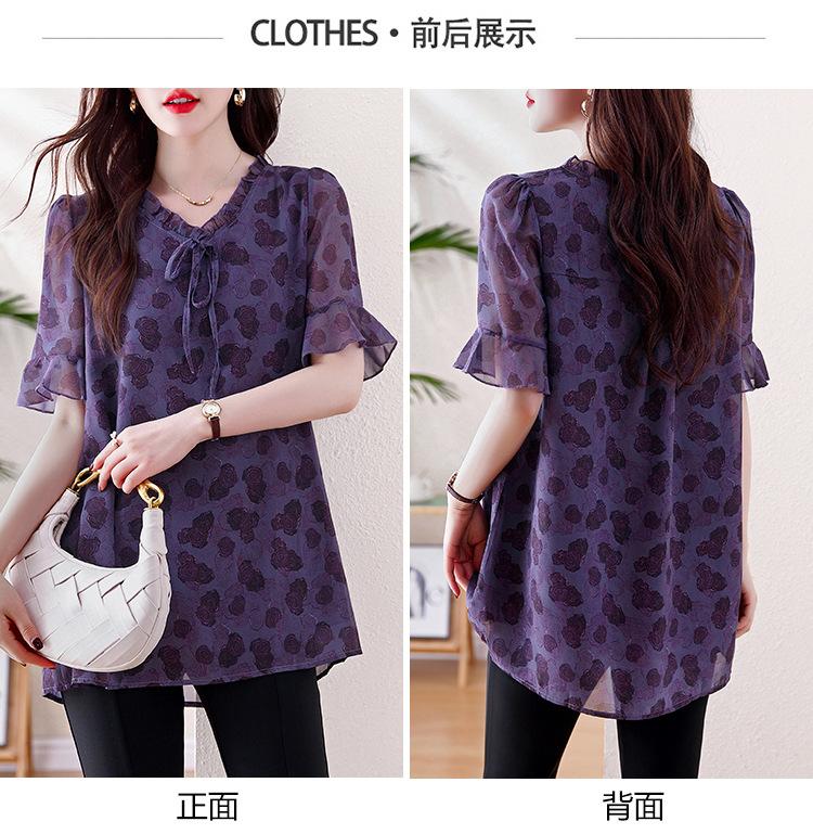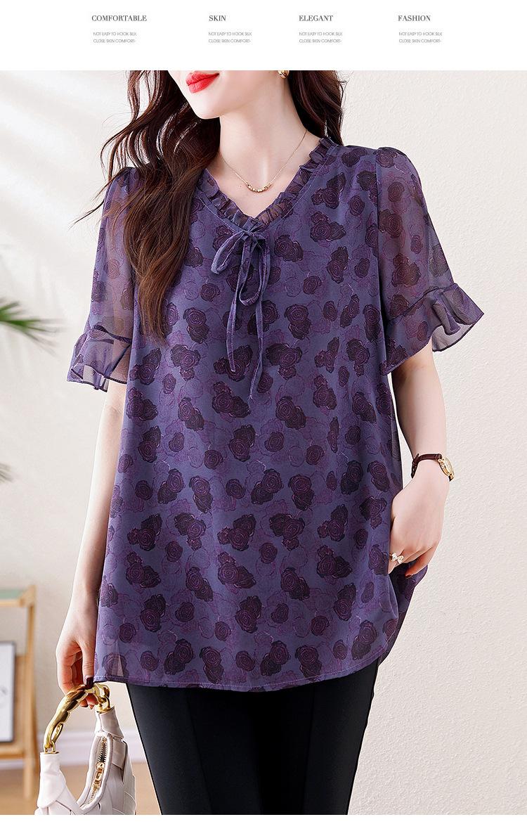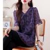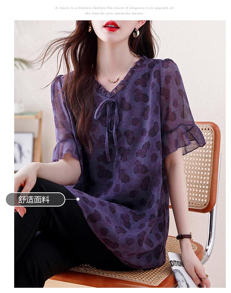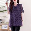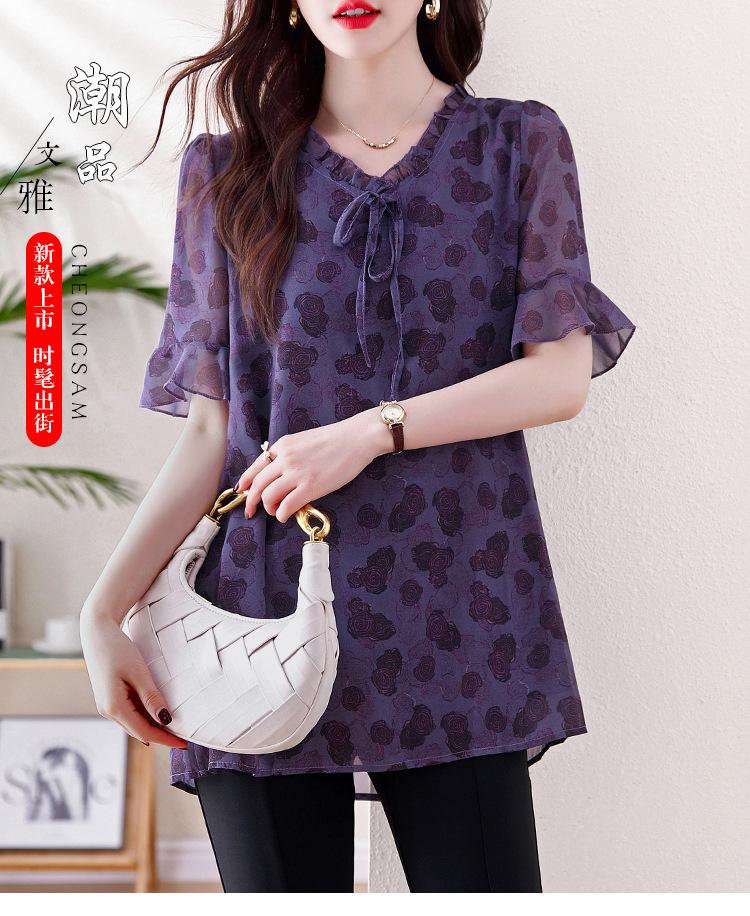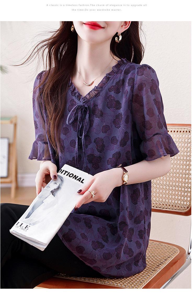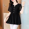 Camisa de gasa de manga corta informal para mujer, talla grande, estilo occidental, adelgazante, suelta, para cubrir el vientre, verano 2025