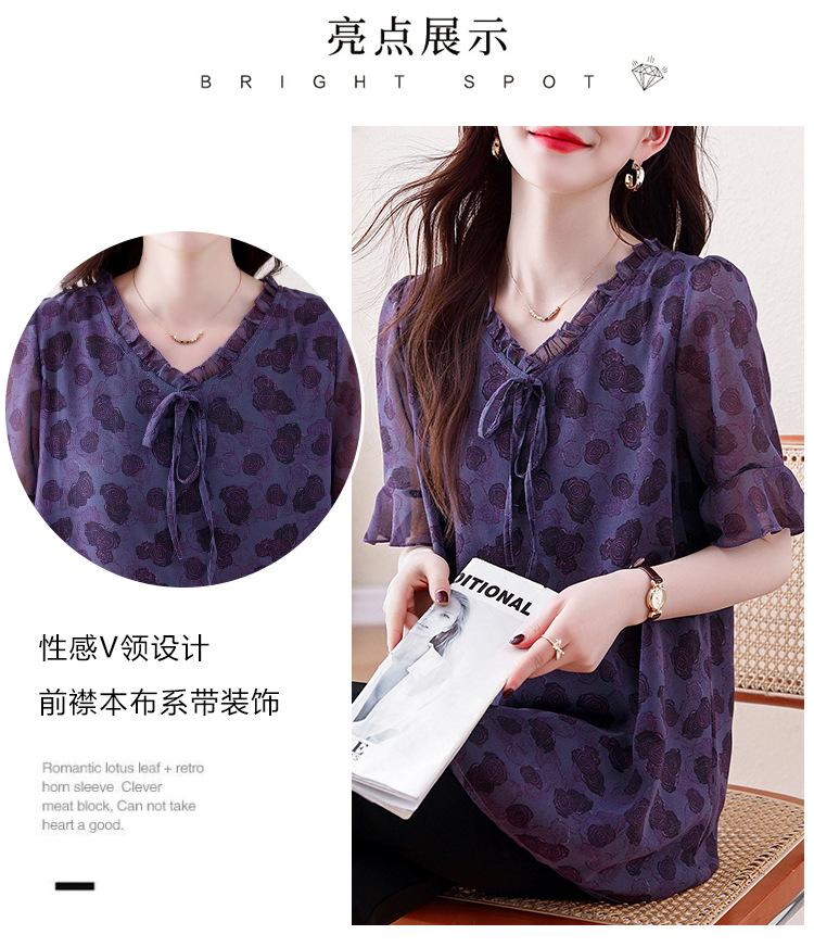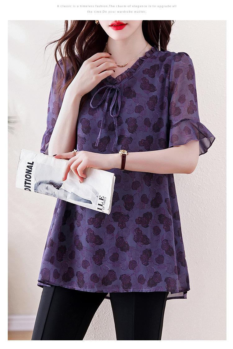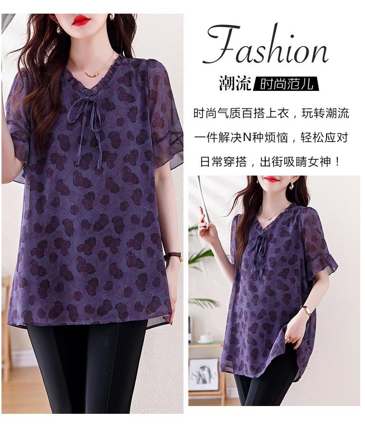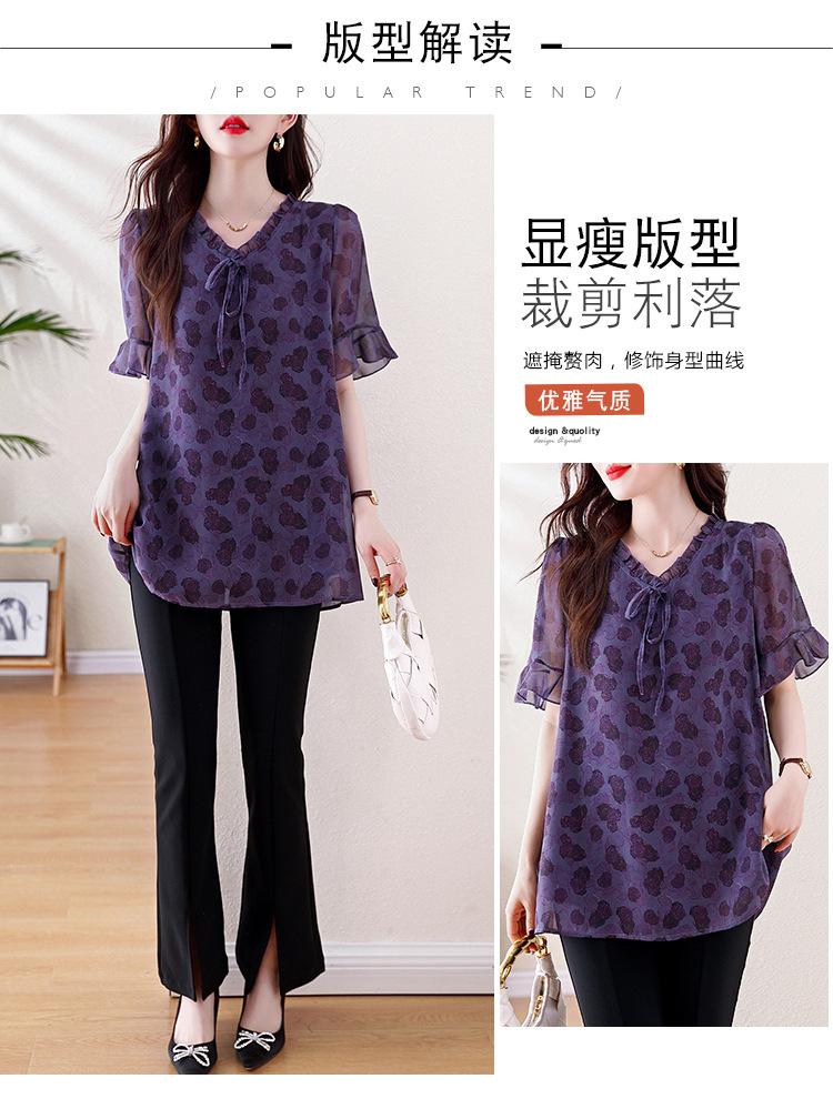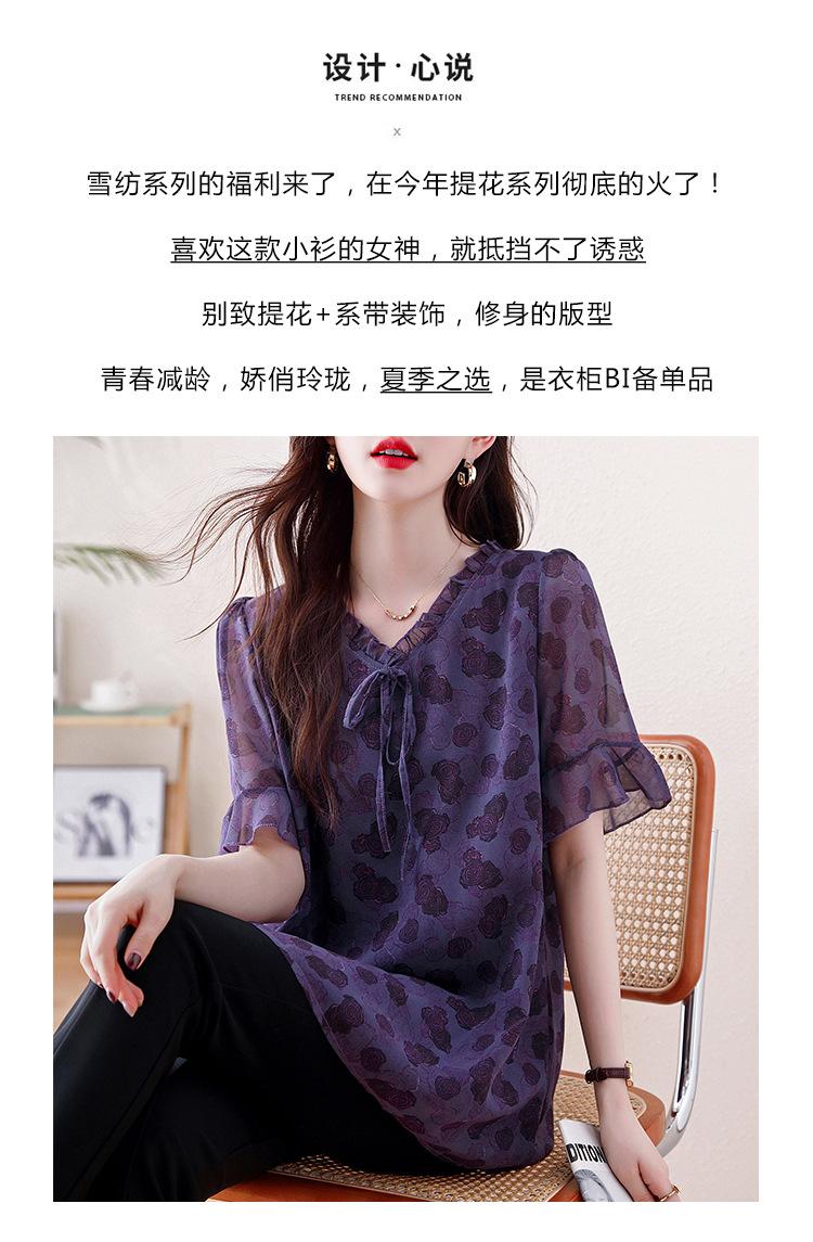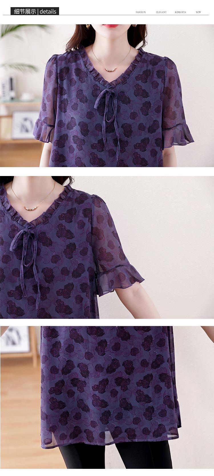 Camisa de gasa de manga corta informal para mujer, talla grande, estilo occidental, adelgazante, suelta, para cubrir el vientre, verano 2025
