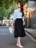 Camisa Azul de Siete Mangas Camisa de Mujer Falda Falda Cola de Pescado Traje Francés de Dos Piezas de Alta Calidad para Primavera, Verano y Otoño