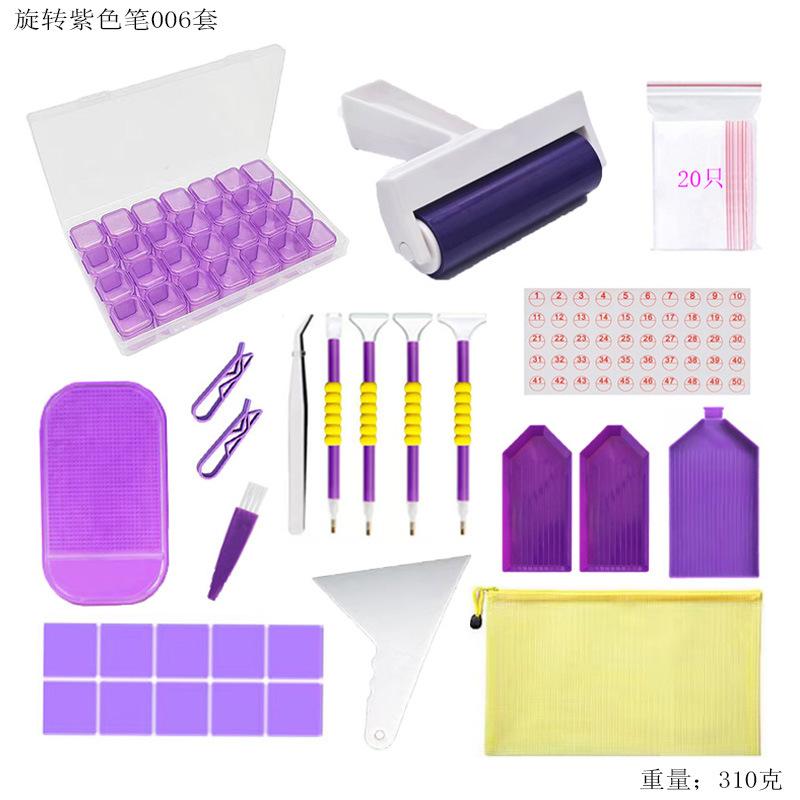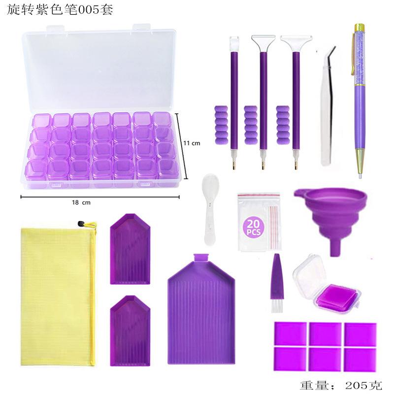 Nuevo Juego de Herramientas para Pintura de Diamantes Embudo Punto Placa de Diamantes Pluma de Diamantes Arcilla Morado Caja de Almacenamiento de 28 Rejillas Accesorios Accesorios