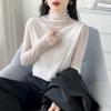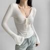 Camiseta de manga larga con lazo de encaje y escote en V para mujer, top interior sexy y ajustado, 2024