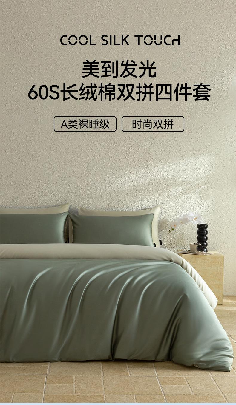 Juego de sábanas y fundas de edredón de algodón puro de color liso, de cuatro piezas, de algodón de fibra larga, grado 60, para uso maternoinfantil, clase A