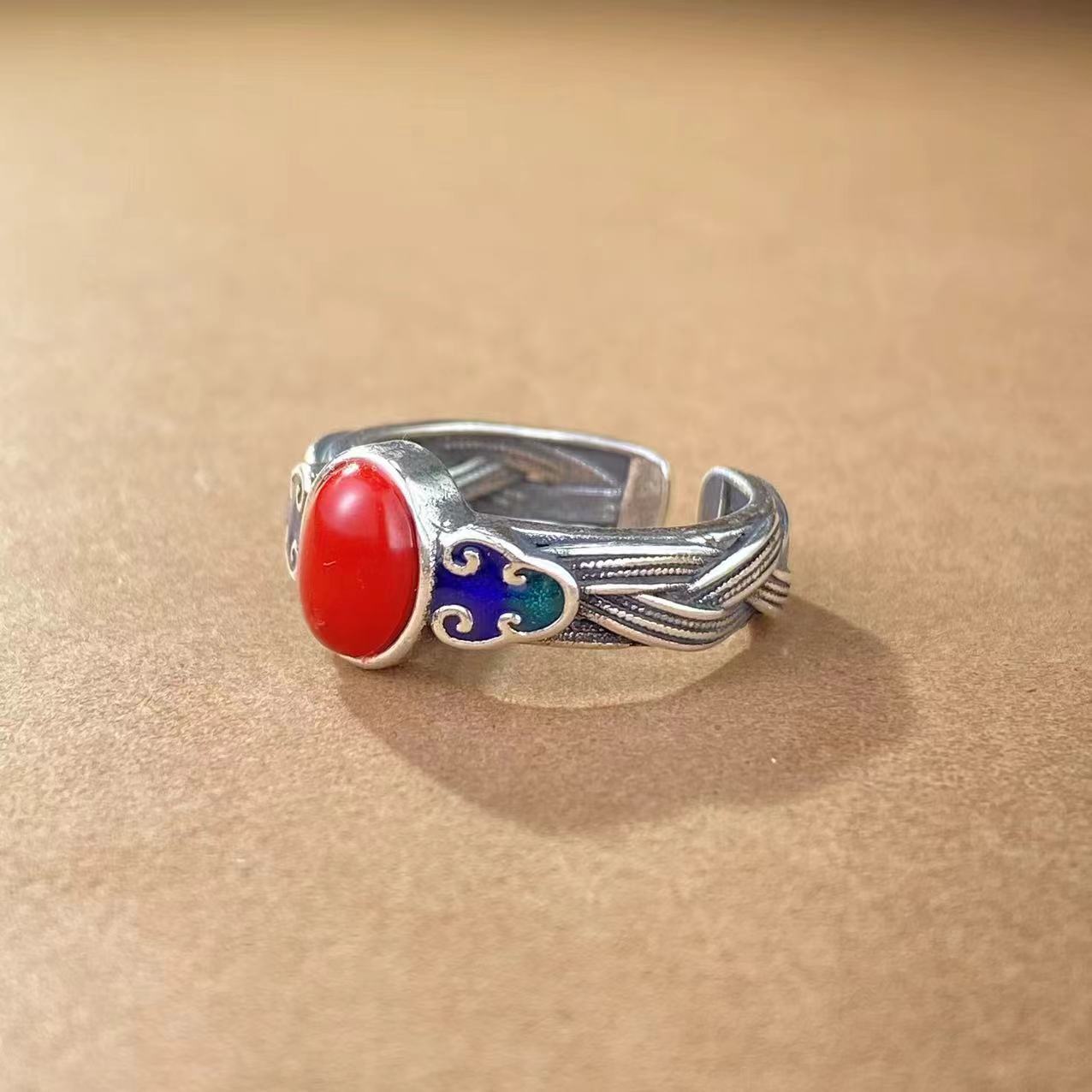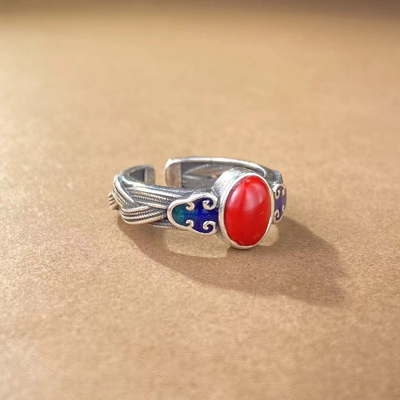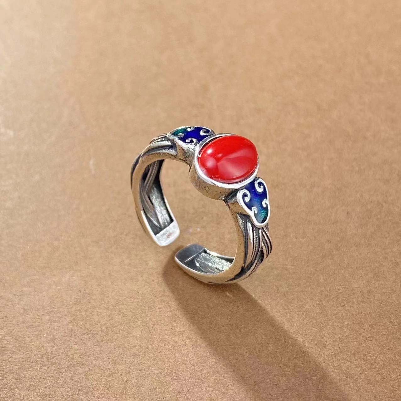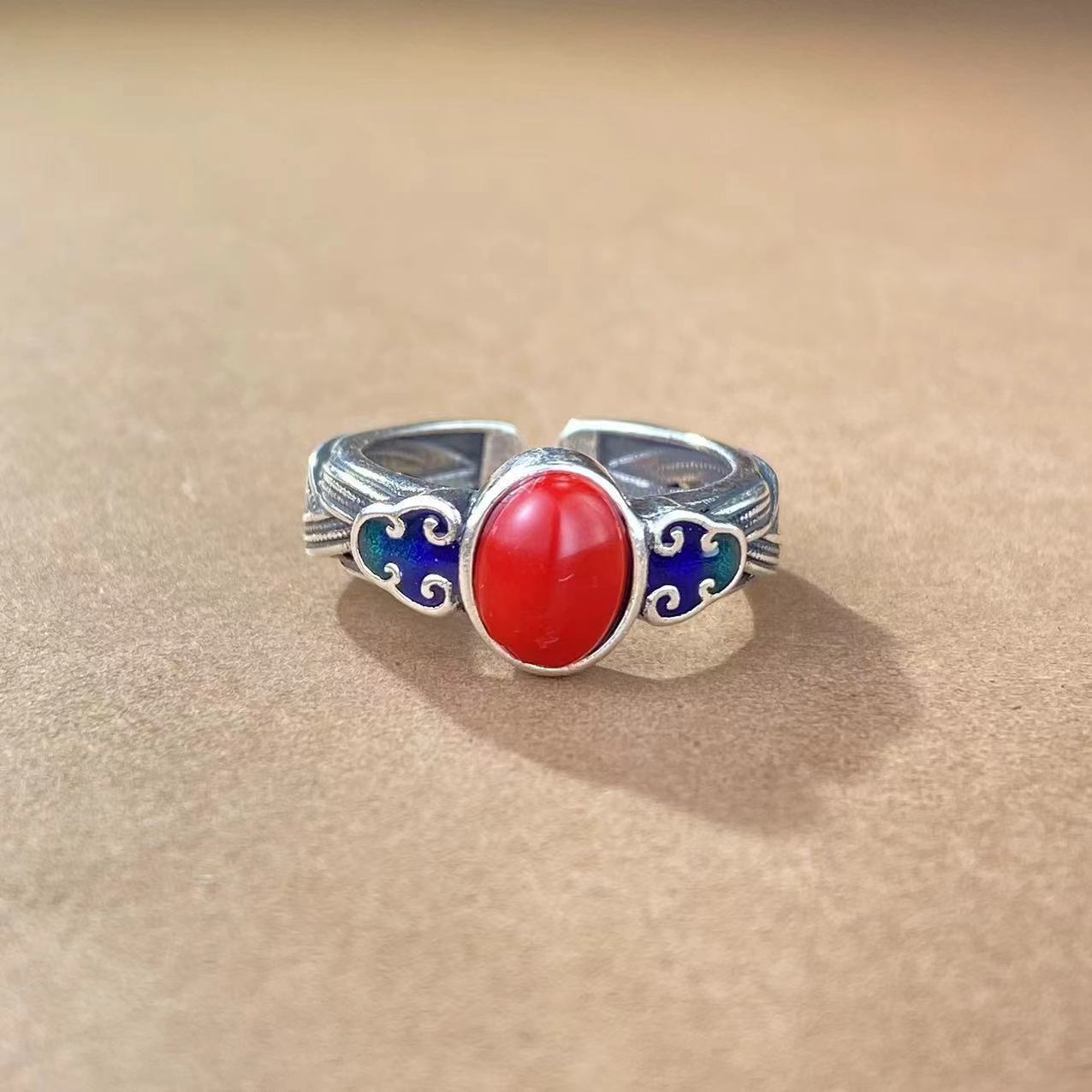 Anillo Xiangxu de esmalte cloisonné Xiangyun superficie de huevo estilo retro cortesano apertura anillo creativo para dedo índice ventas directas de fábrica
