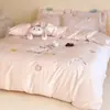 Juego de cuatro piezas de edredón y sábanas bordadas con parches de algodón de fibra larga, suaves y agradables para la piel, para niños pequeños y frescos, ropa de cama para niñas