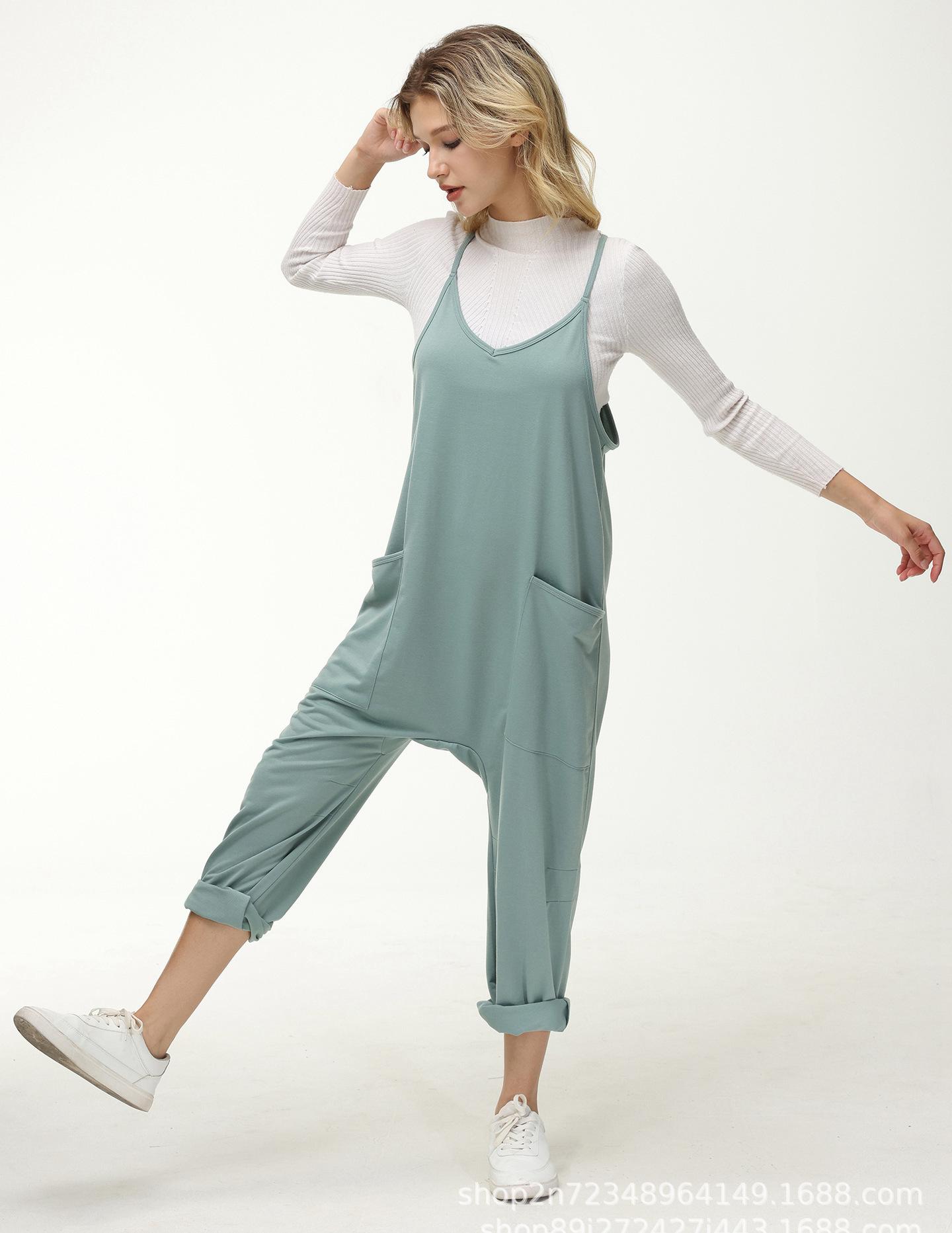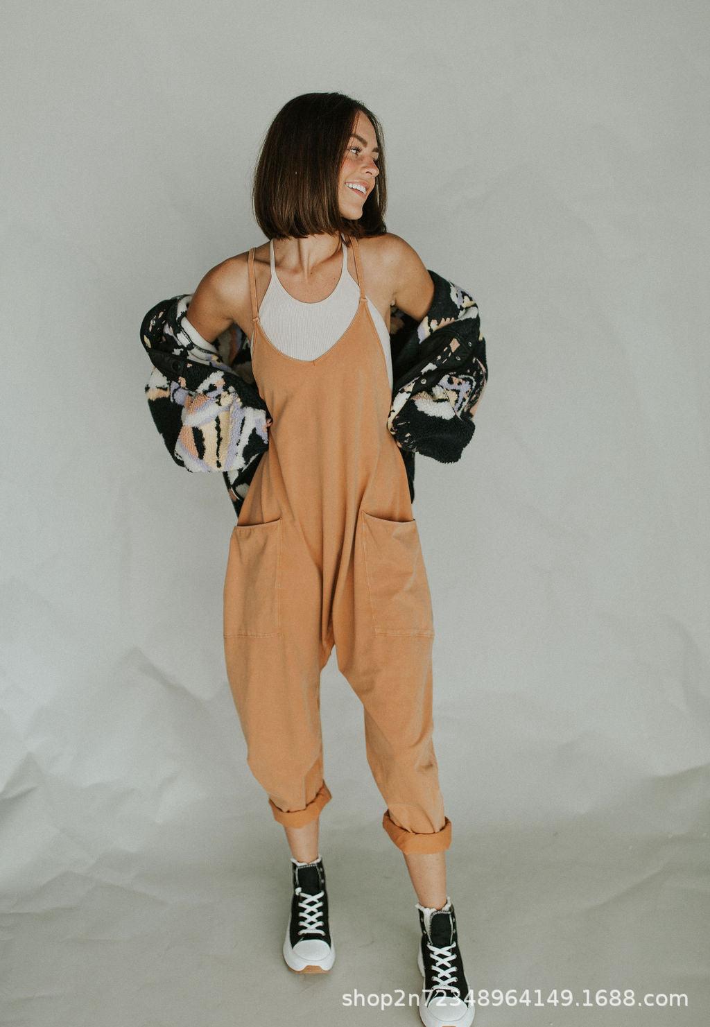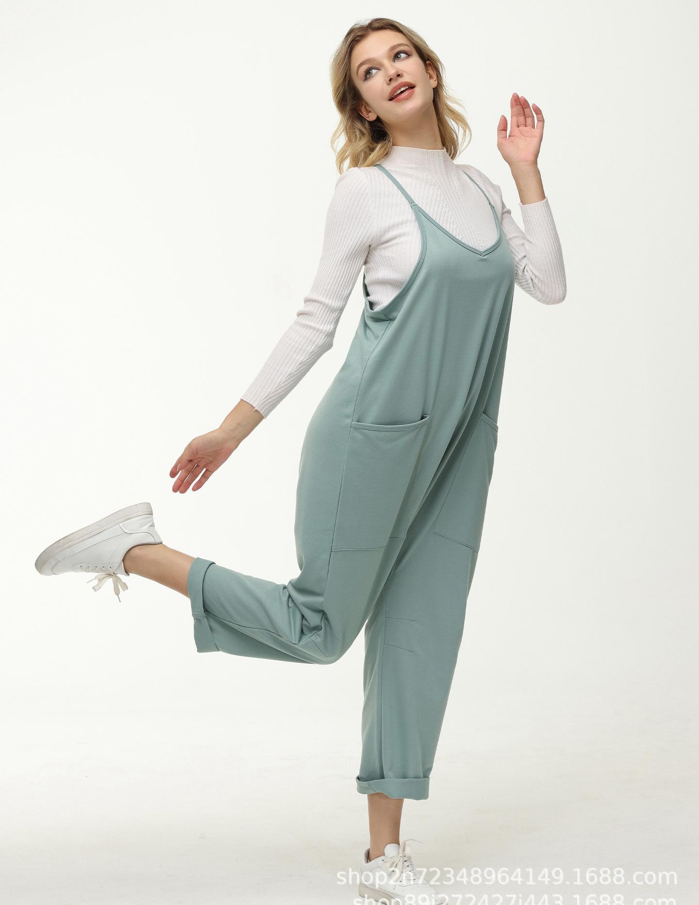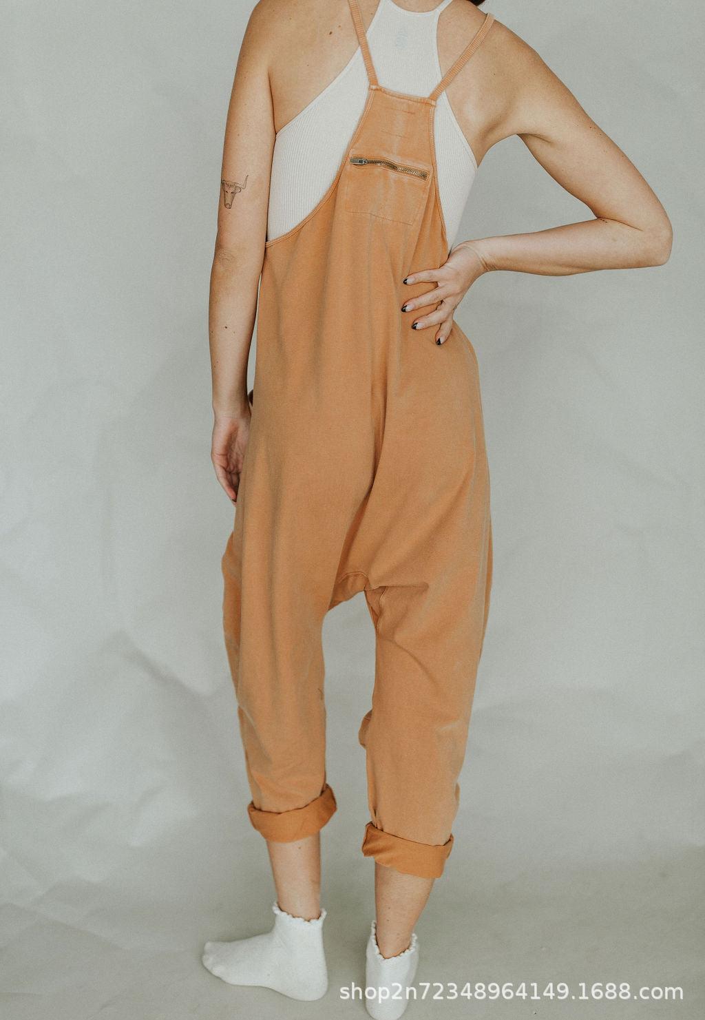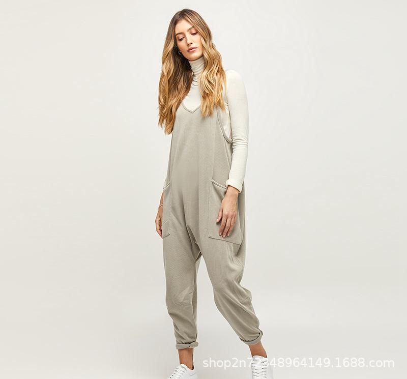 Estación independiente Comercio exterior europeo y americano Transfronterizo Mono casual de pierna ancha para mujer Bolsillo con cremallera Pantalón con tirantes Mono