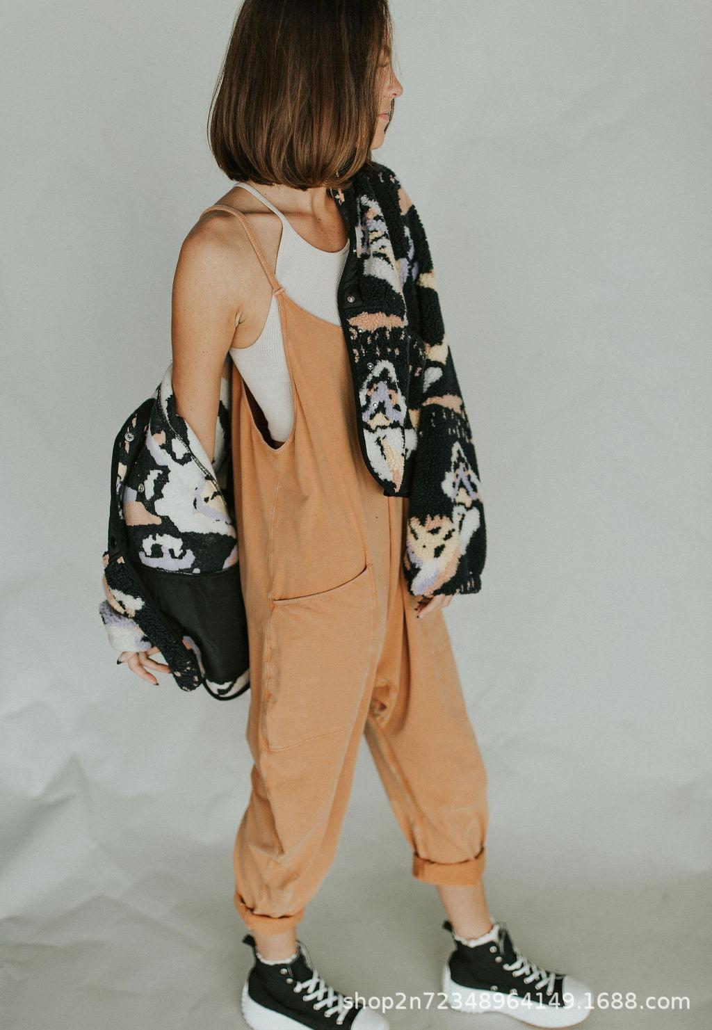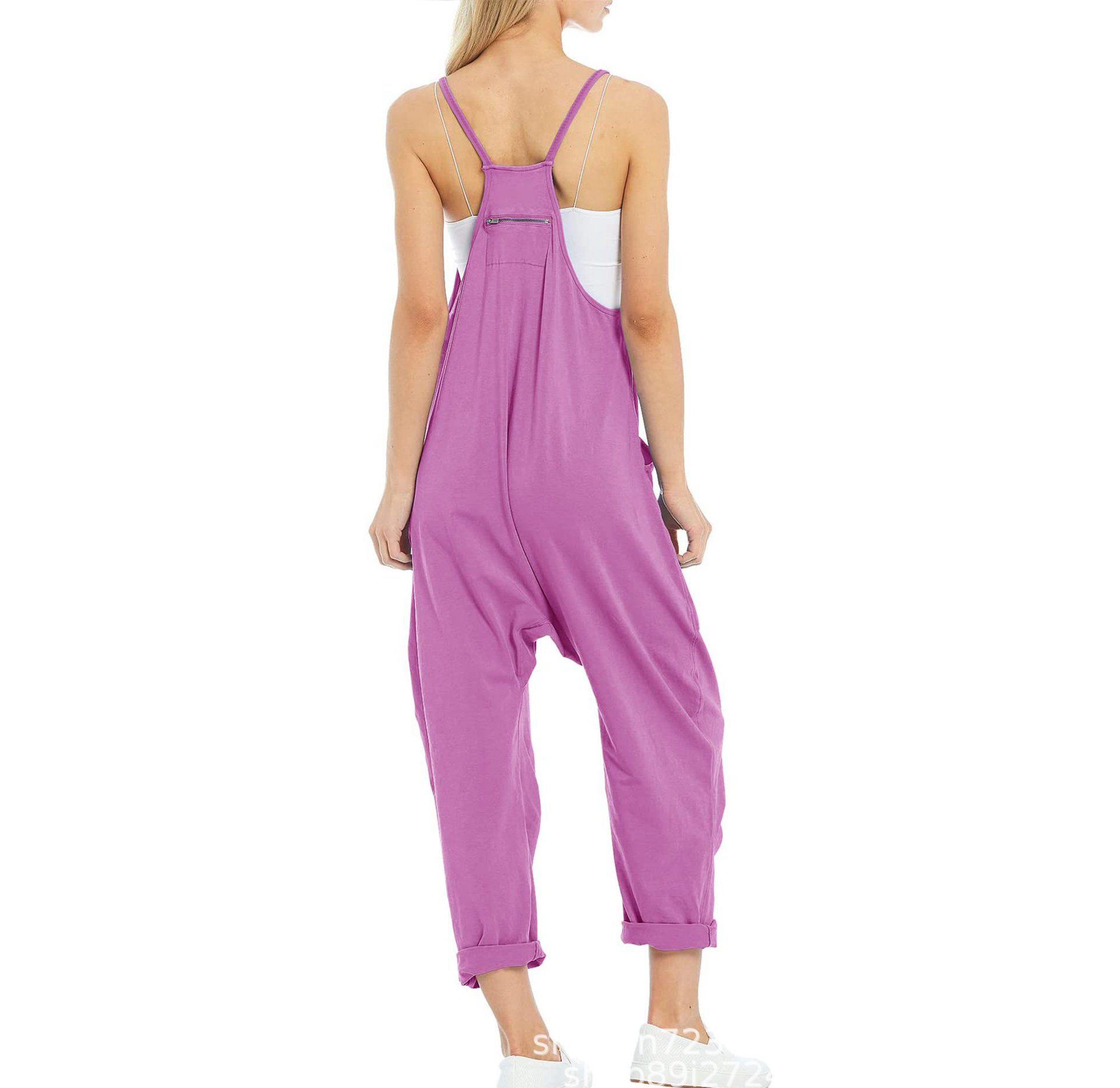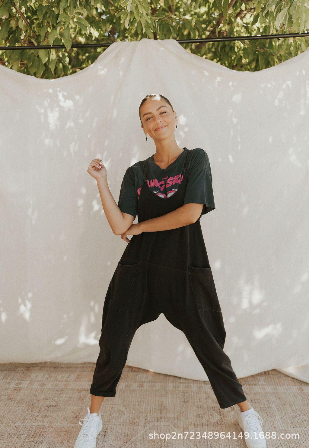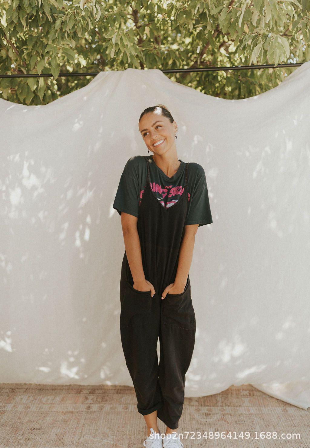 Estación independiente Comercio exterior europeo y americano Transfronterizo Mono casual de pierna ancha para mujer Bolsillo con cremallera Pantalón con tirantes Mono