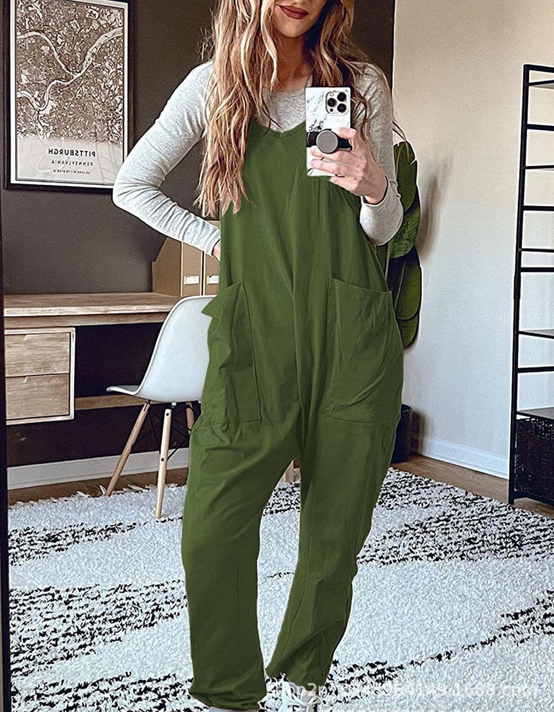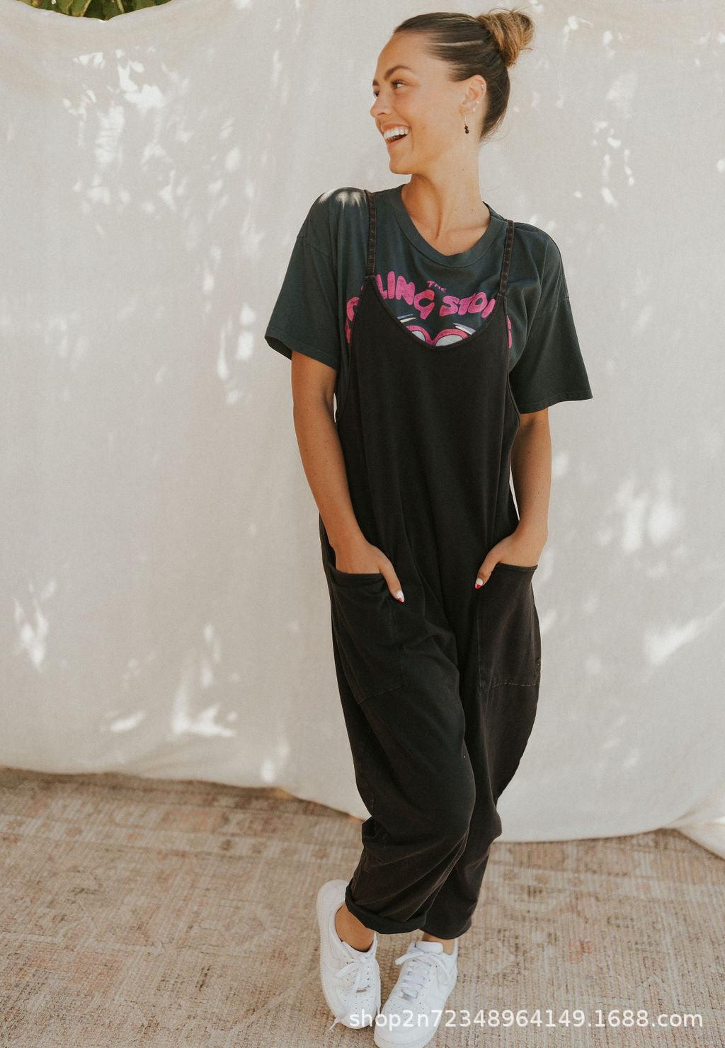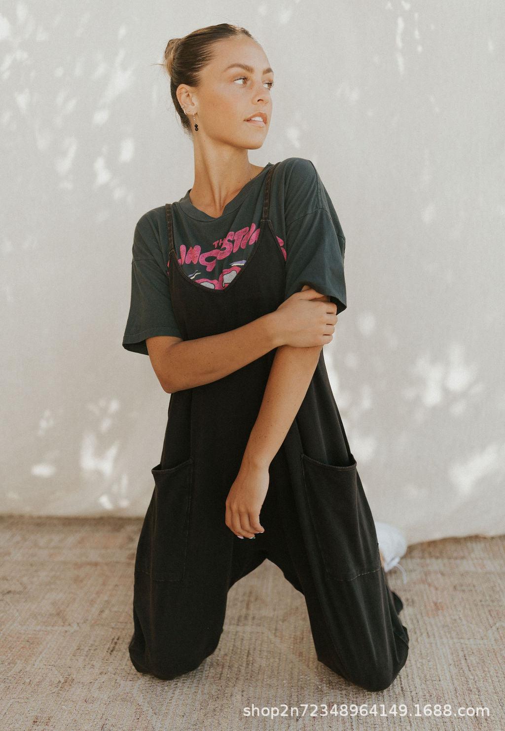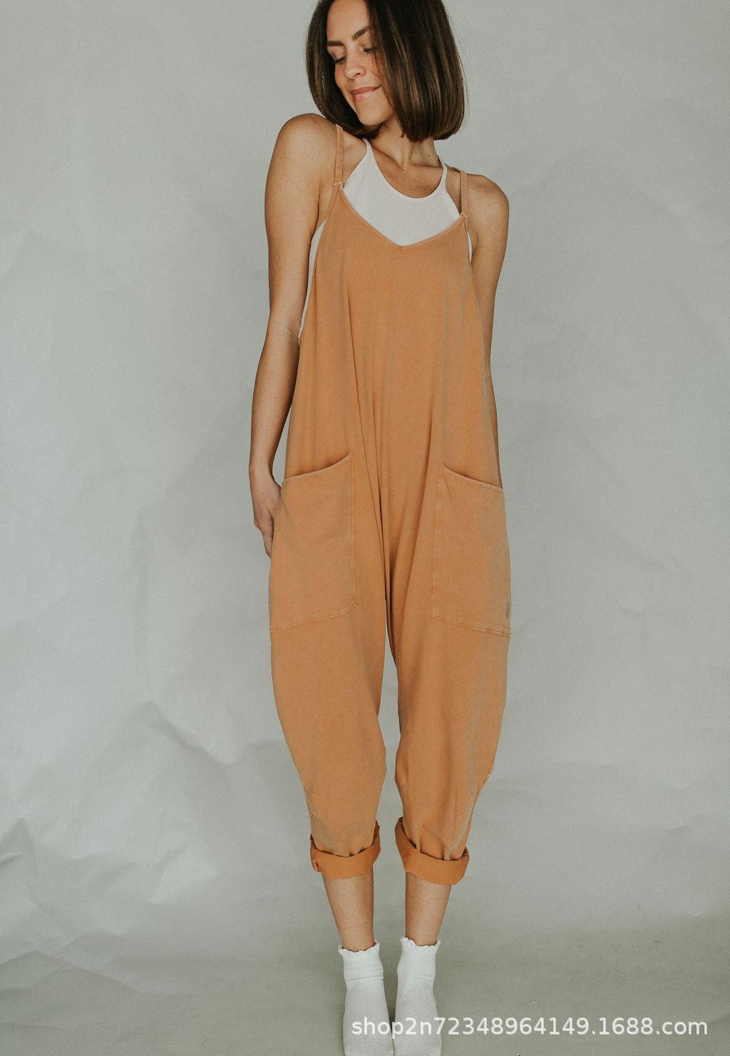 Estación independiente Comercio exterior europeo y americano Transfronterizo Mono casual de pierna ancha para mujer Bolsillo con cremallera Pantalón con tirantes Mono