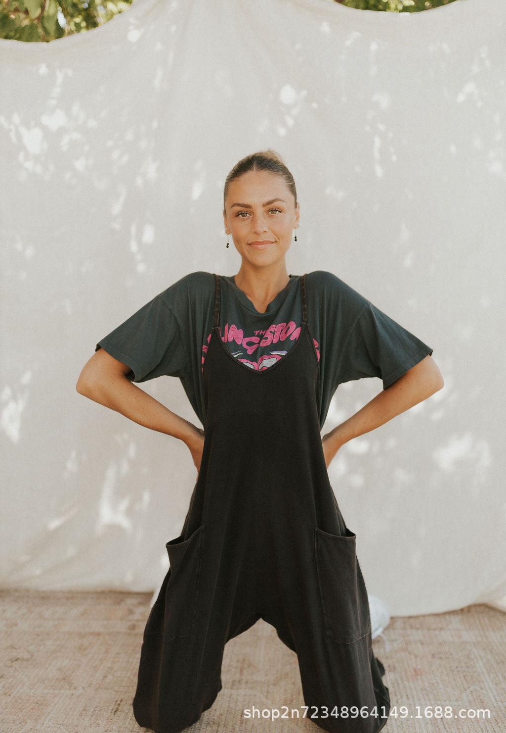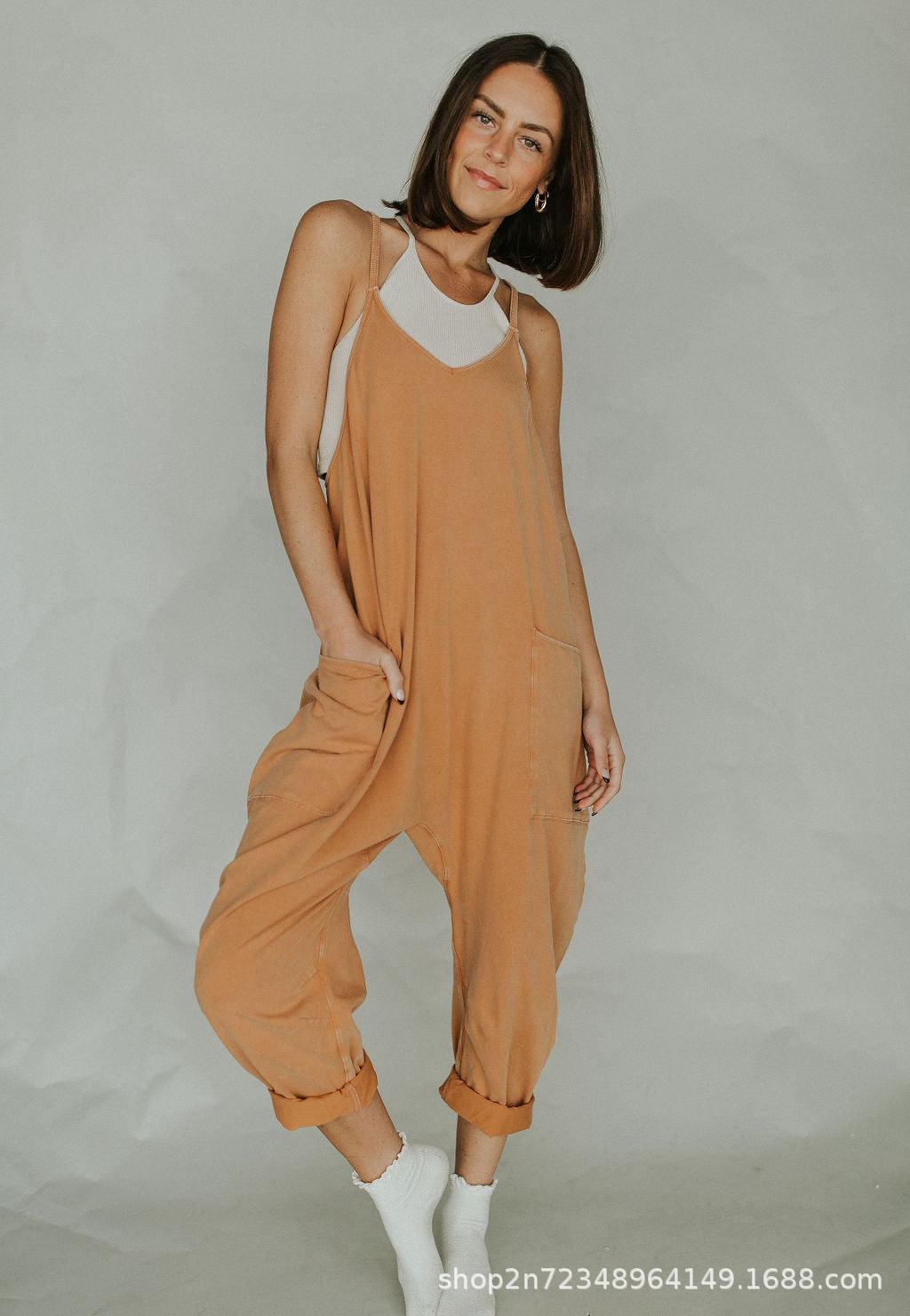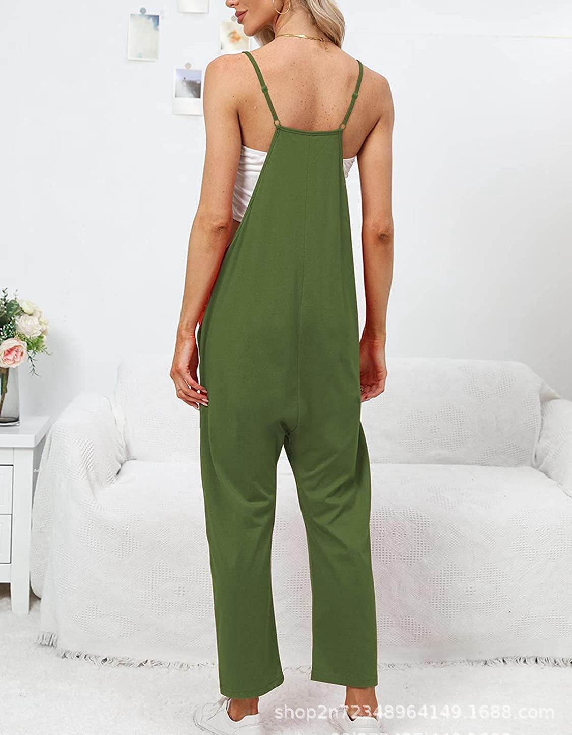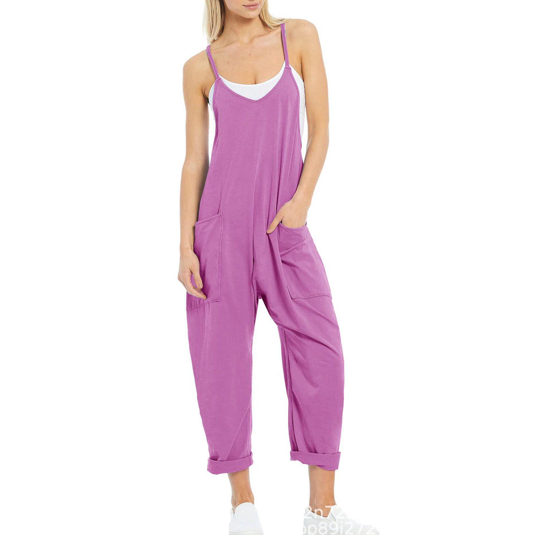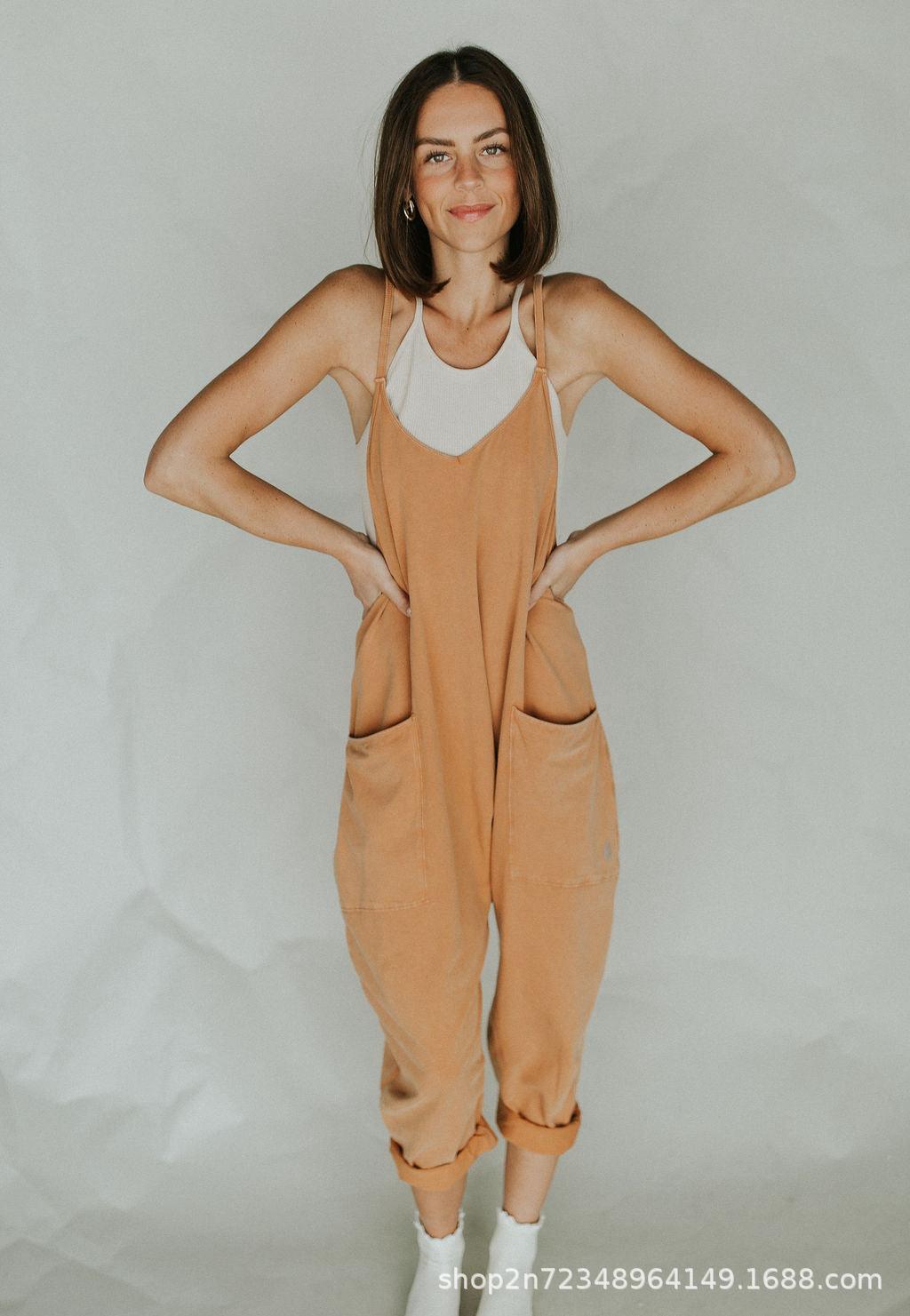 Estación independiente Comercio exterior europeo y americano Transfronterizo Mono casual de pierna ancha para mujer Bolsillo con cremallera Pantalón con tirantes Mono