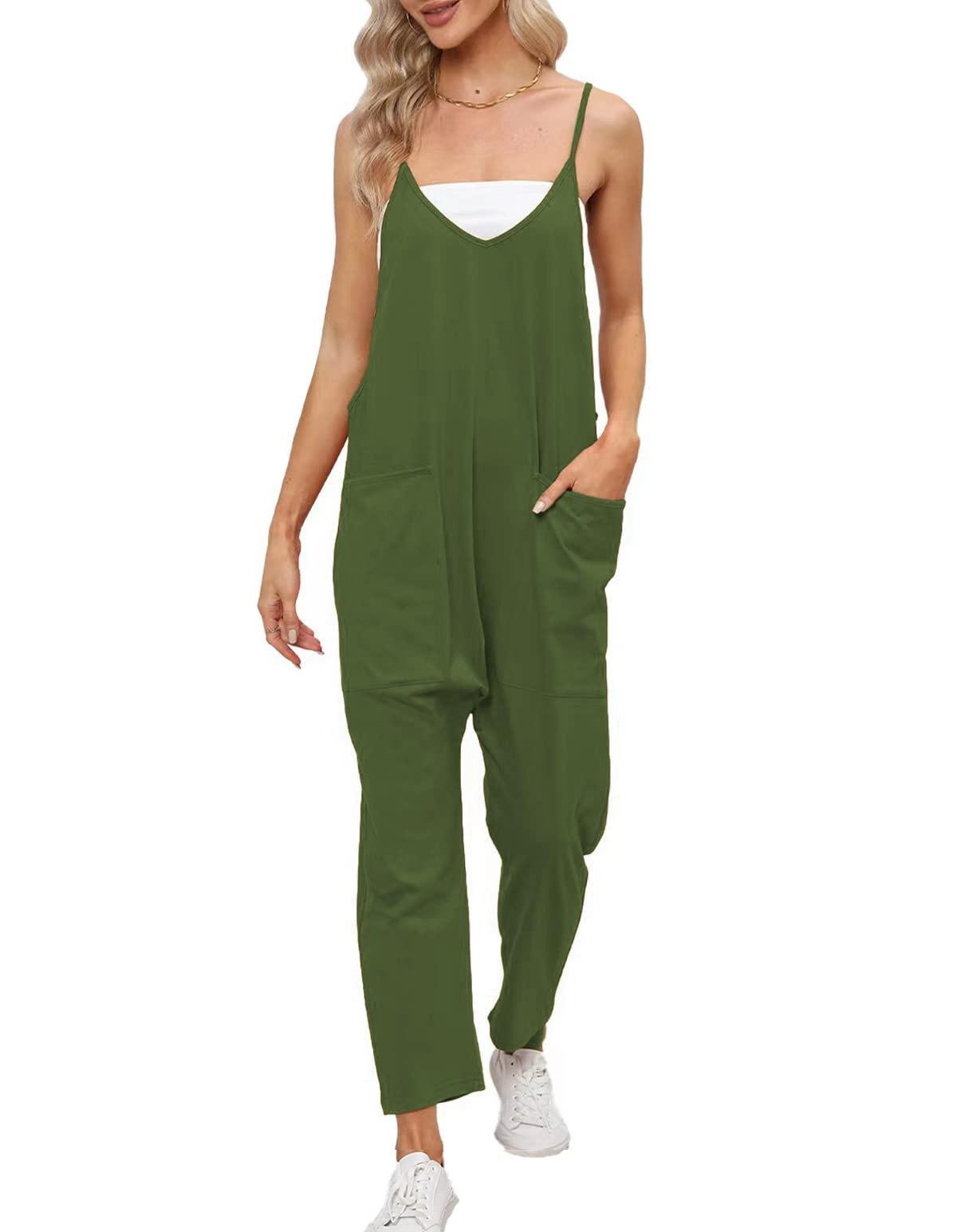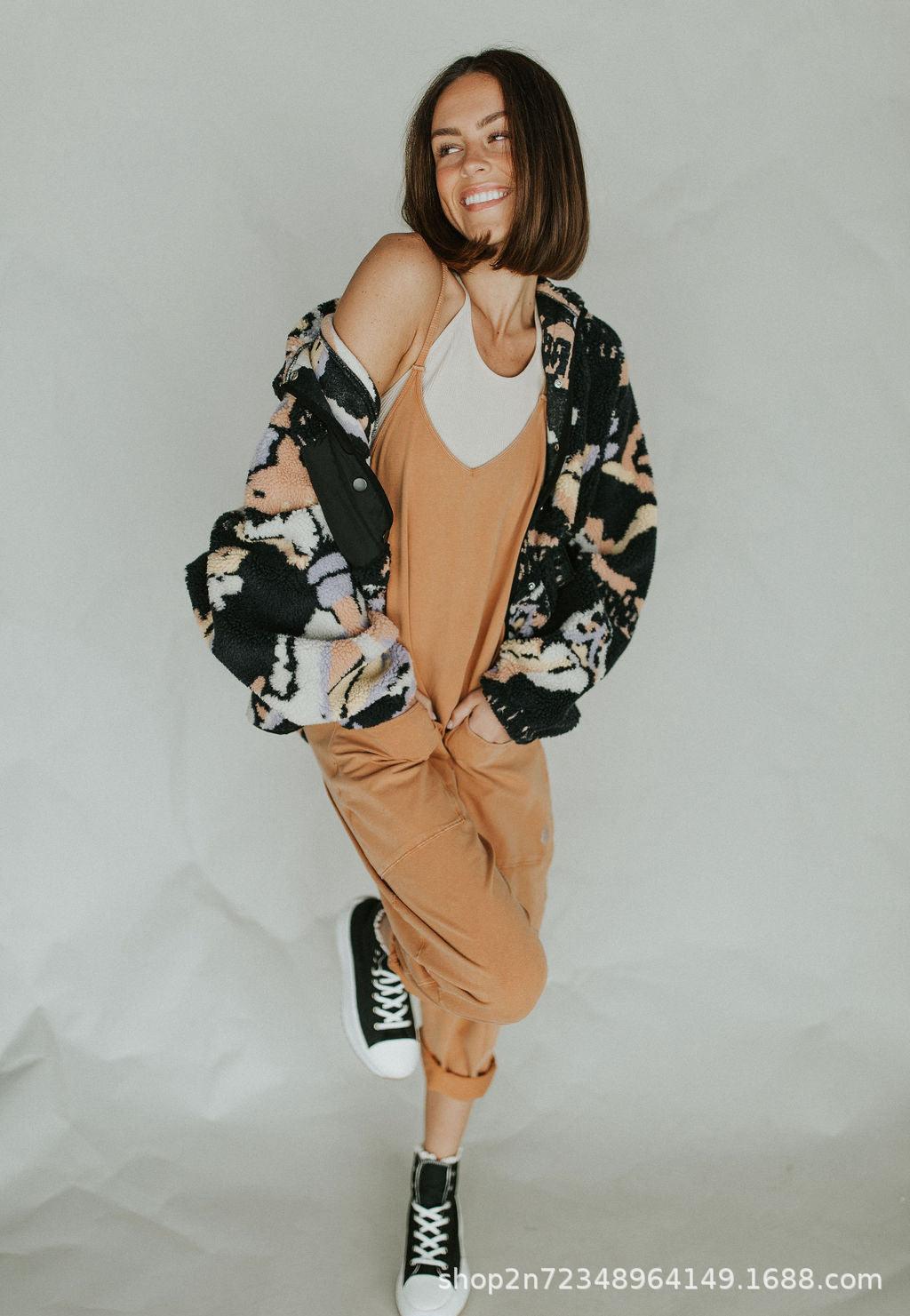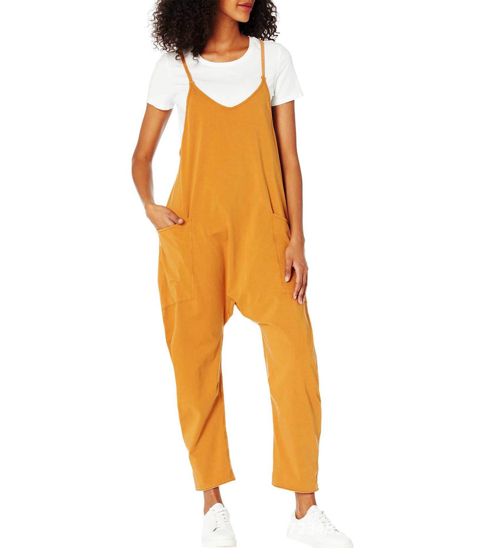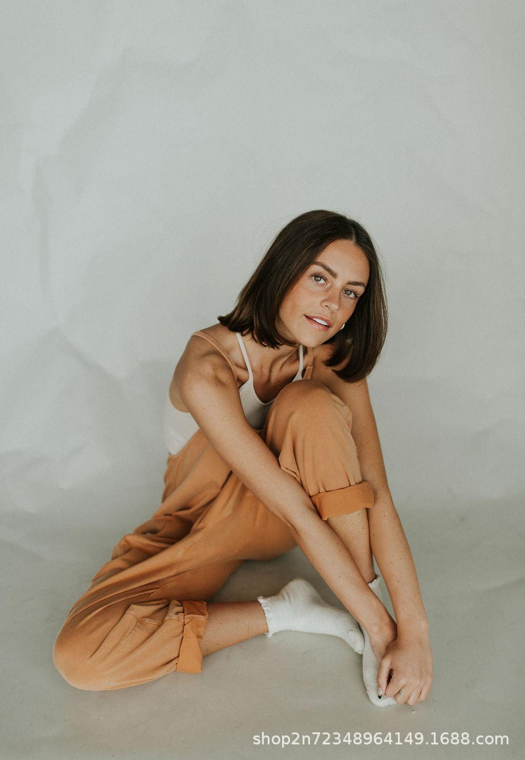 Estación independiente Comercio exterior europeo y americano Transfronterizo Mono casual de pierna ancha para mujer Bolsillo con cremallera Pantalón con tirantes Mono