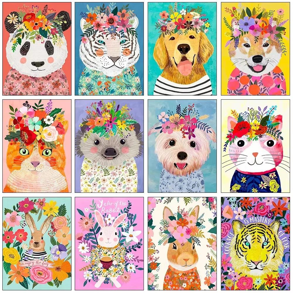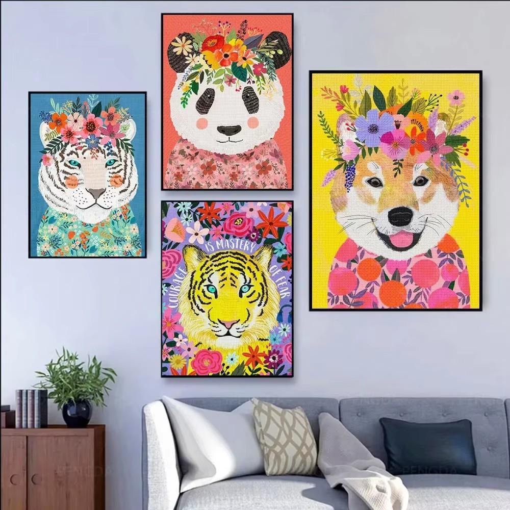Kit de pintura de diamantes 5D DIY, diseño de animales, perro, gato, tigre, conejo, cerdo, avestruz, punto de cruz, decoración del hogar