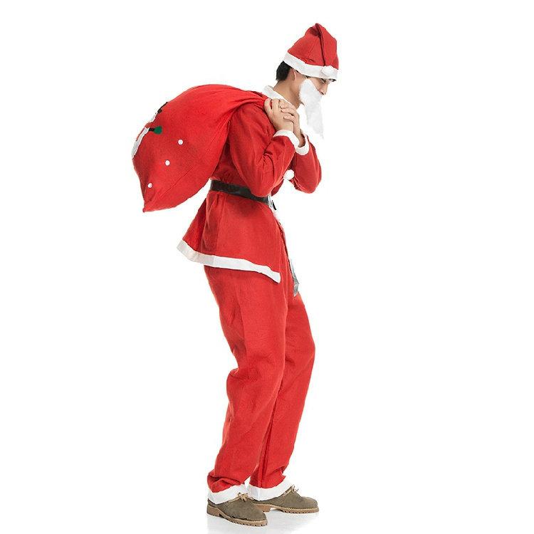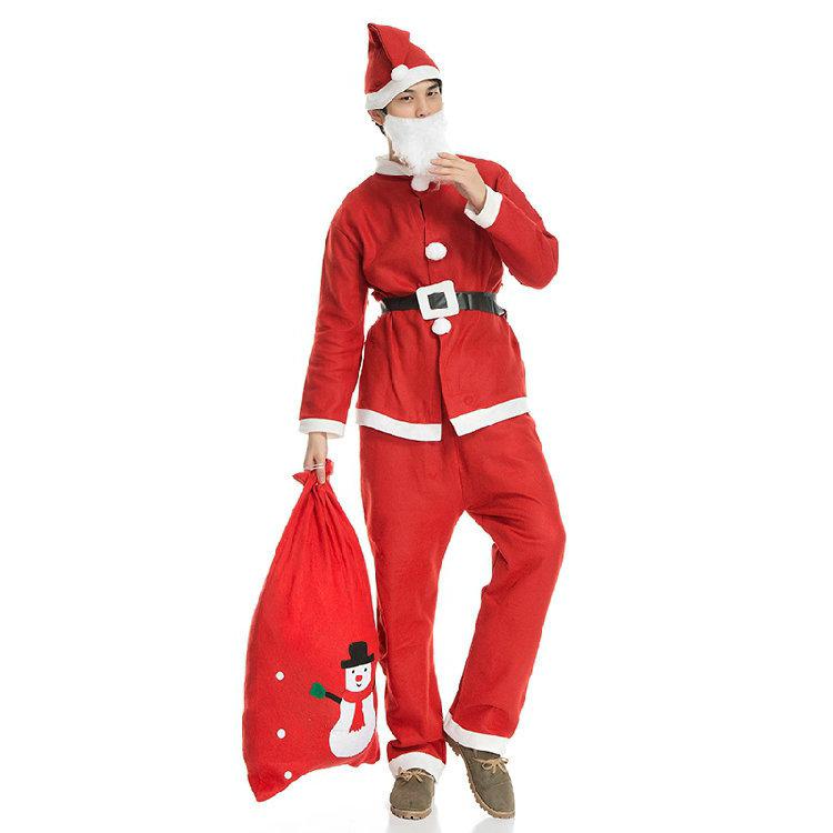 Camisa de Navidad + pantalones + cinturón + barba + sombrero