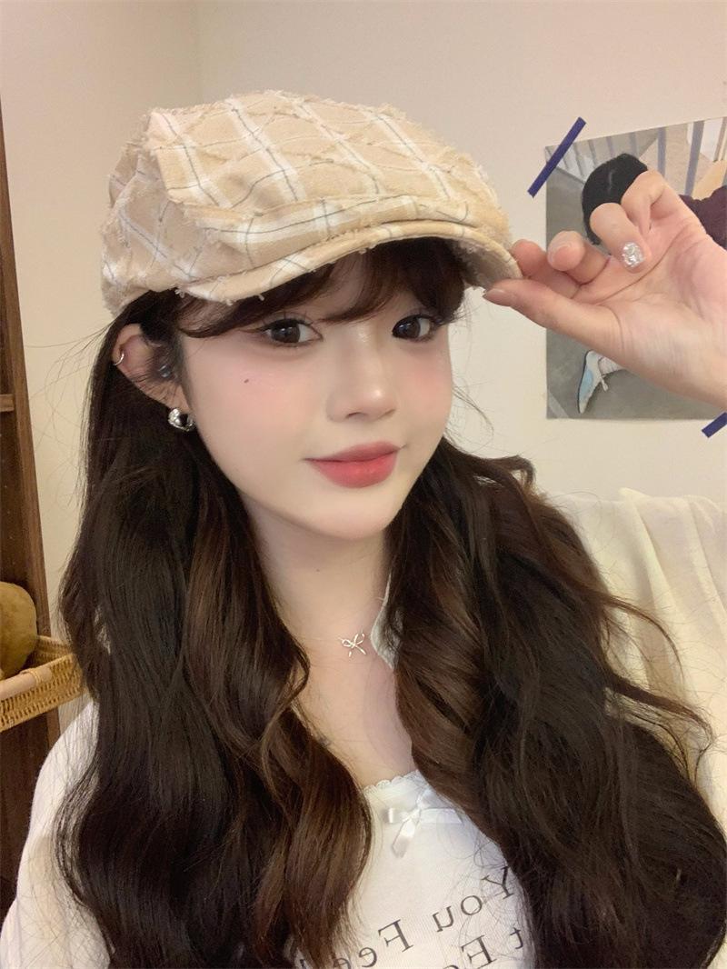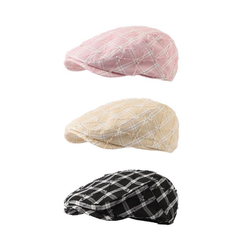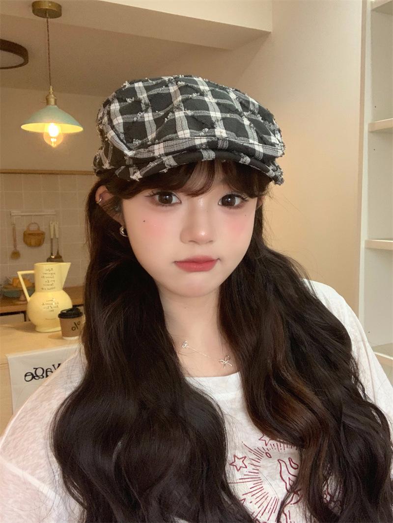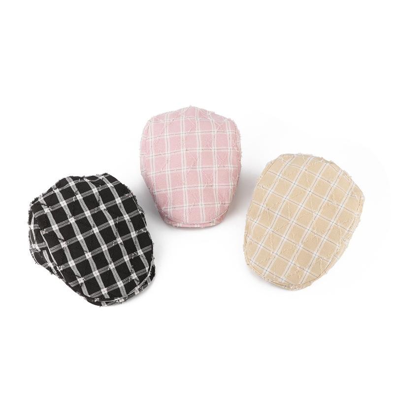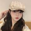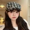 Sombrero Avanzado Retro a Cuadros Estilo Universitario para Mujer Primavera Estilo Británico Boina de Pico de Pato Cabeza Grande Wai Arte Periódico Sombrero Infantil