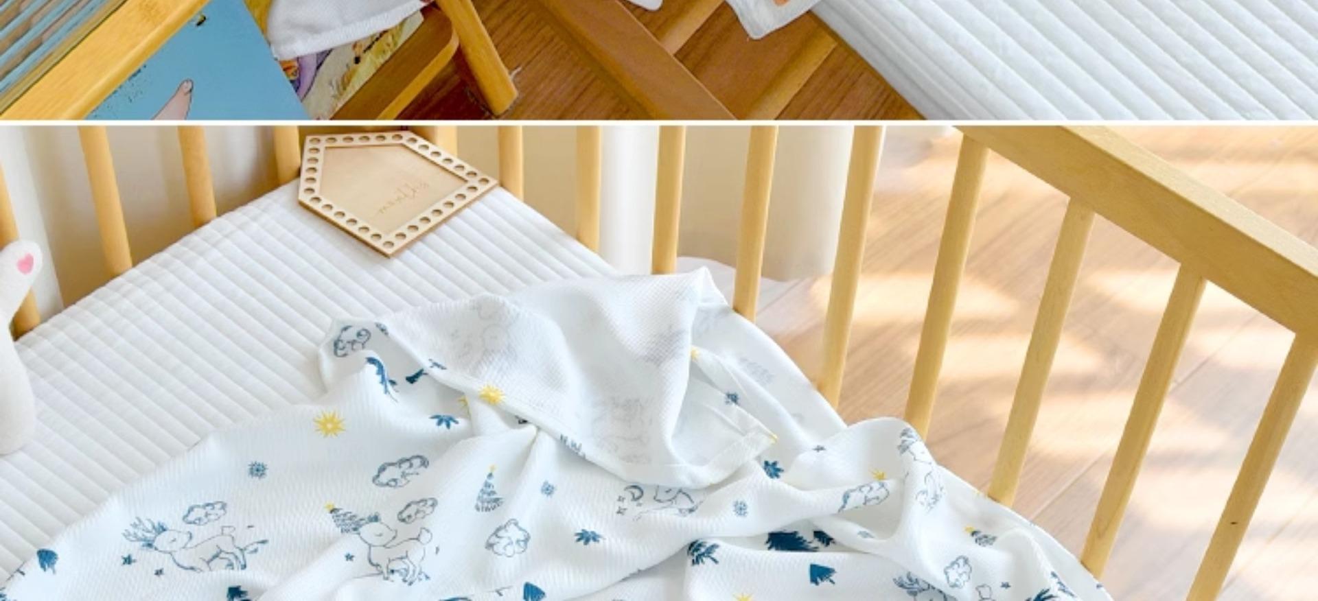 Manta de seda helada de fibra de bambú para bebés Esta manta de fibra de bambú tiene hilo fino y es una manta relativamente suave. La tela es tejida de 21 cuentas. La estructura tejida es densa y más duradera La tela de fibra de bambú tiene una sensación fresca natural, por lo que es fresca pero no fría en verano. Absorbe el sudor, es transpirable y no pegajoso, lo que le brinda a su bebé un ambiente cómodo para dormir. Suave y ajustado, adecuado tanto para adultos como para bebés. La fibra de bambú tampoco produce olor fácilmente. Se siente ligeramente fresco contra la piel, refrescante y cómodo, muy adecuado para usar en verano. El acolchado está doblado por todos lados y no es fácil de desenredar. Consejos de lavado: Lavar a mano a 30°C, ciclo suave. Lavar a máquina en ciclo suave (poner en una bolsa de lavandería) No enjuagar, lavar a alta temperatura y exponer al sol están prohibidos. El lavado a alta temperatura o la exposición al sol afectarán la sensación y la frescura de la tela. Material: 100% viscosa (fibra de celulosa regenerada) Tamaño: 75 x 100 cm, adecuado para niños de 0 a 1 año (aproximadamente 250 gramos) 110 x 130 cm, adecuado para niños de 1 a 3 años (aproximadamente 400 gramos) 110 x 150 cm, adecuado para niños de 3 a 8 años (aproximadamente 460 gramos) 150 x 200 cm, adecuado para niños mayores de 8 años y adultos (aproximadamente 960 gramos) 180*200 cm es adecuado para un adulto (aproximadamente 1150 gramos) 200 x 230 cm es adecuado para un adulto y un niño (aproximadamente 1470 gramos) Temporada adecuada: finales de primavera, verano, principios de otoño. La fibra de bambú natural tiene una gran sección transversal y una fuerte absorción de humedad. La tasa de contracción del producto terminado es de aproximadamente el 8%-10% del área, lo que está dentro del rango normal. Nota: El tamaño se mide a mano y el error de aproximadamente 1-3 cm está dentro del rango normal.