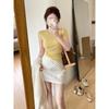 Conjunto de dos piezas de top corto y falda corta de color liso de estilo casual de primavera.