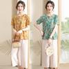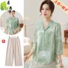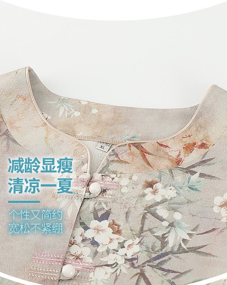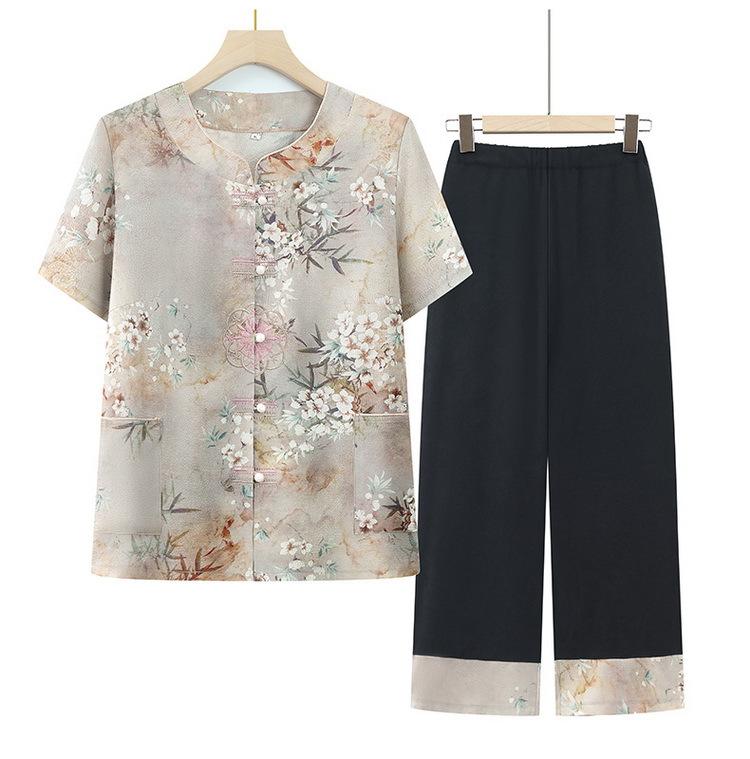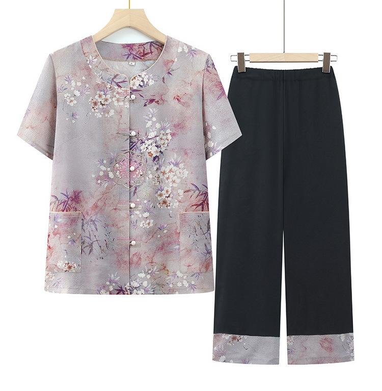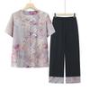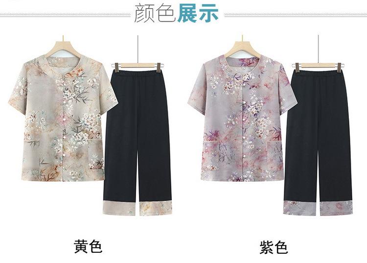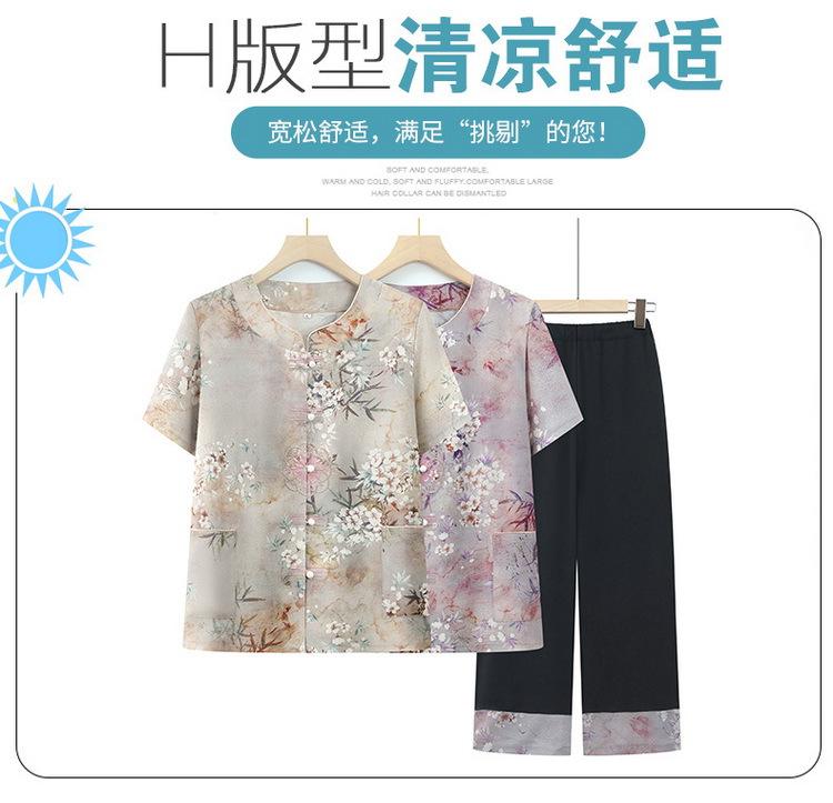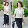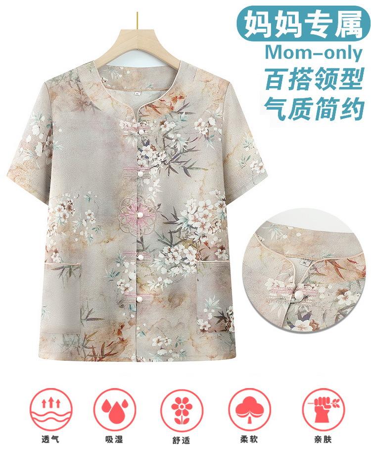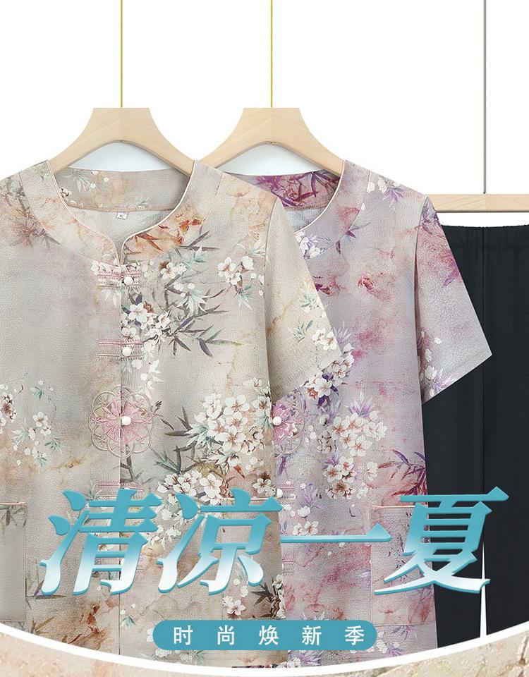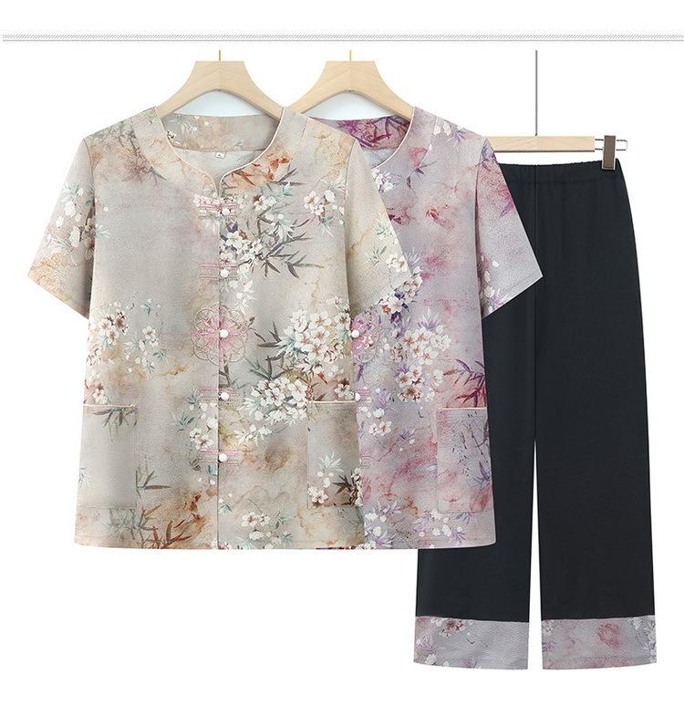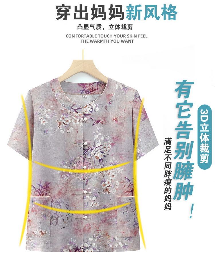 Camisa de verano para personas de mediana edad y mayores, top de seda helada, traje de dos piezas de manga corta para abuela, camisa fina de verano para madre