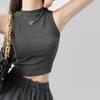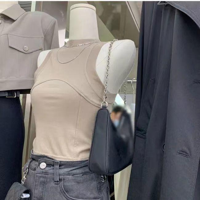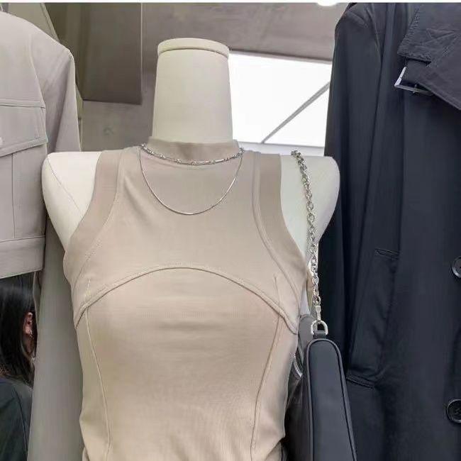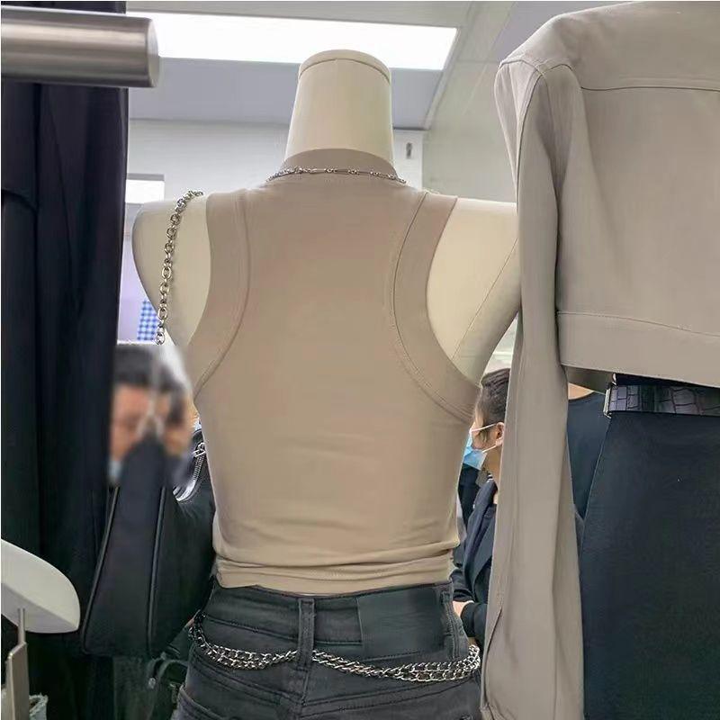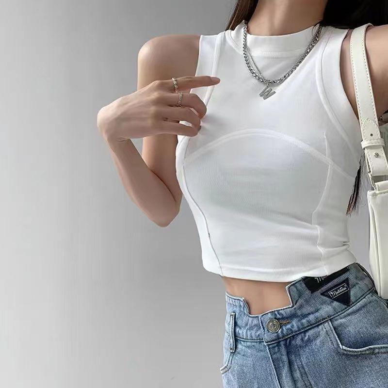 Chaleco de cuello vertical con tirantes cortos interiores para mujer, diseño de chica sexy, sin mangas, estilo veraniego, para primavera y verano