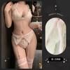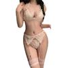 Lencería sexy de encaje para mujer, conjunto de tres piezas con liga y medias de seda, sin tentaciones, para el cabello