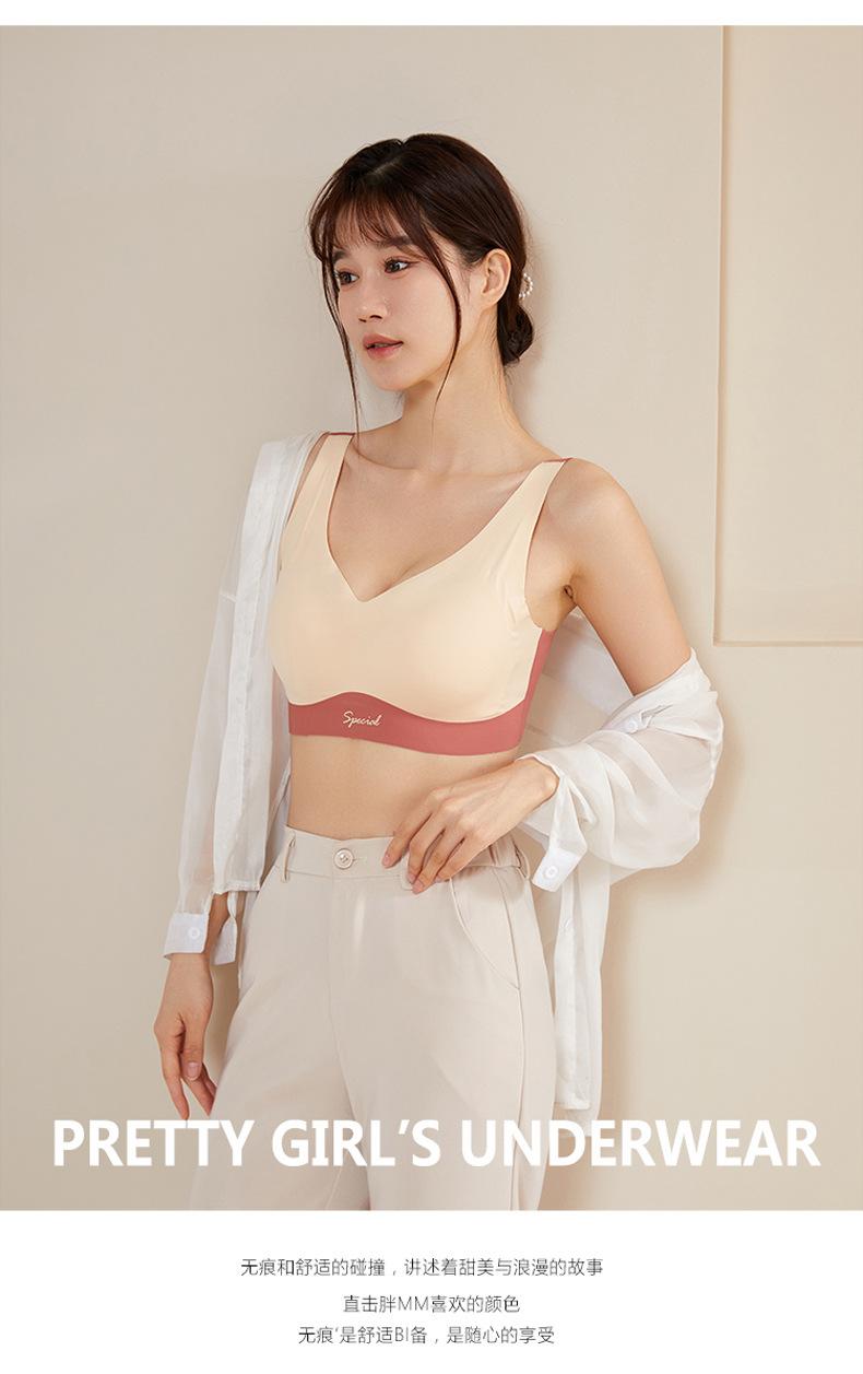 Ropa interior sin costuras para mujer talla grande sin varillas delgada push-up para pecho grande pecho pequeño chica gordita sujetador anti-caída