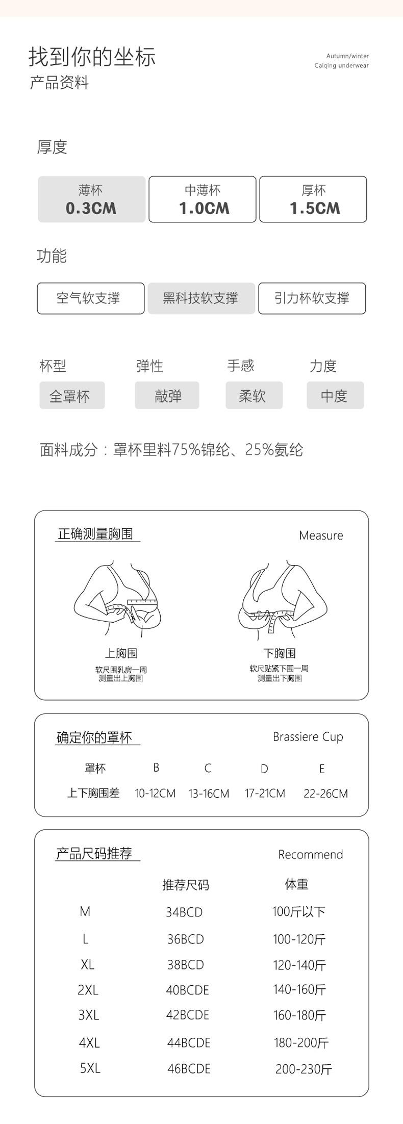 XL (60.00 kg-70.00 kg 38BCD Cup is about 0.3cm thin)