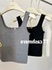 Camisola de punto con cuello cuadrado en forma de I de alta calidad para mujer, top corto sin mangas elegante de verano
