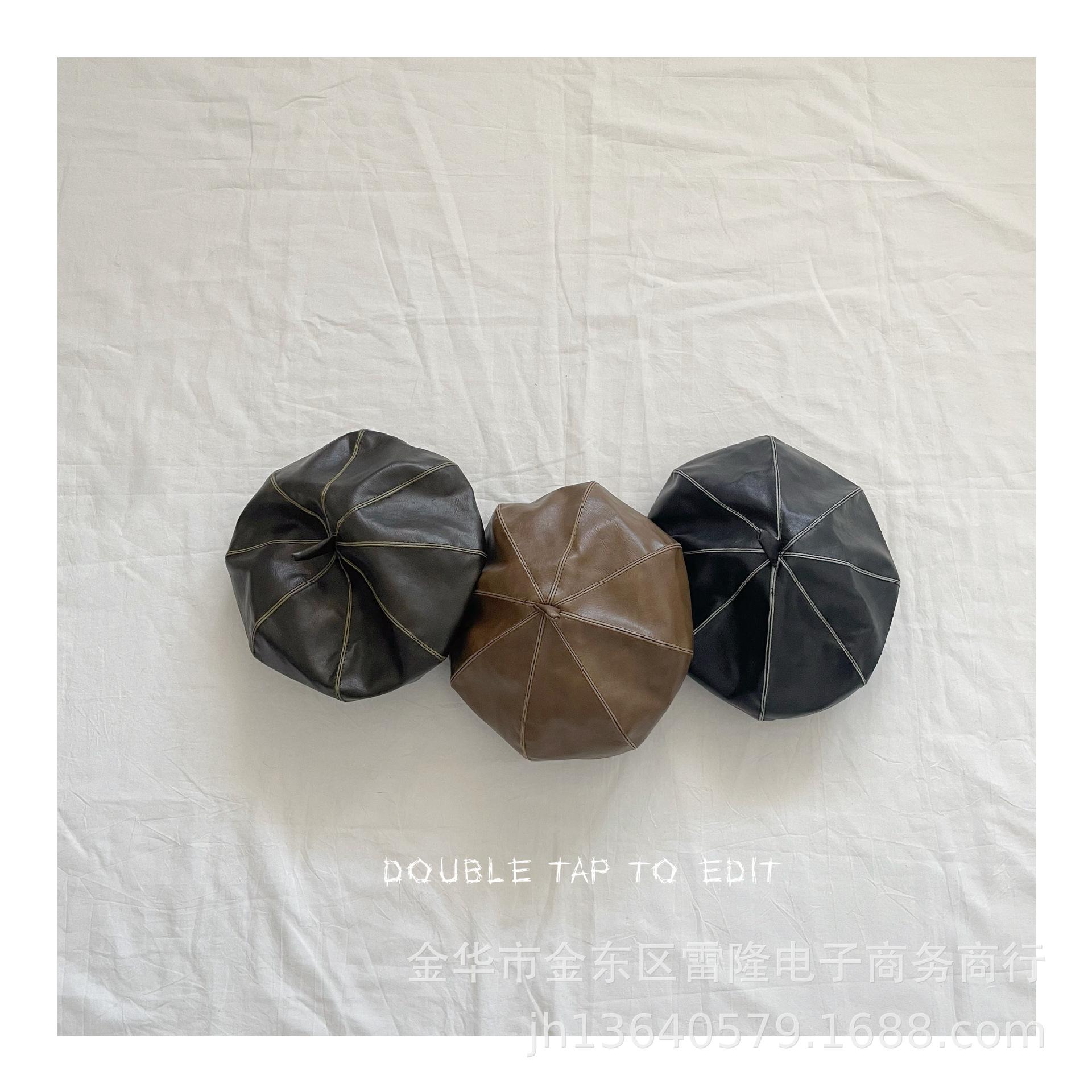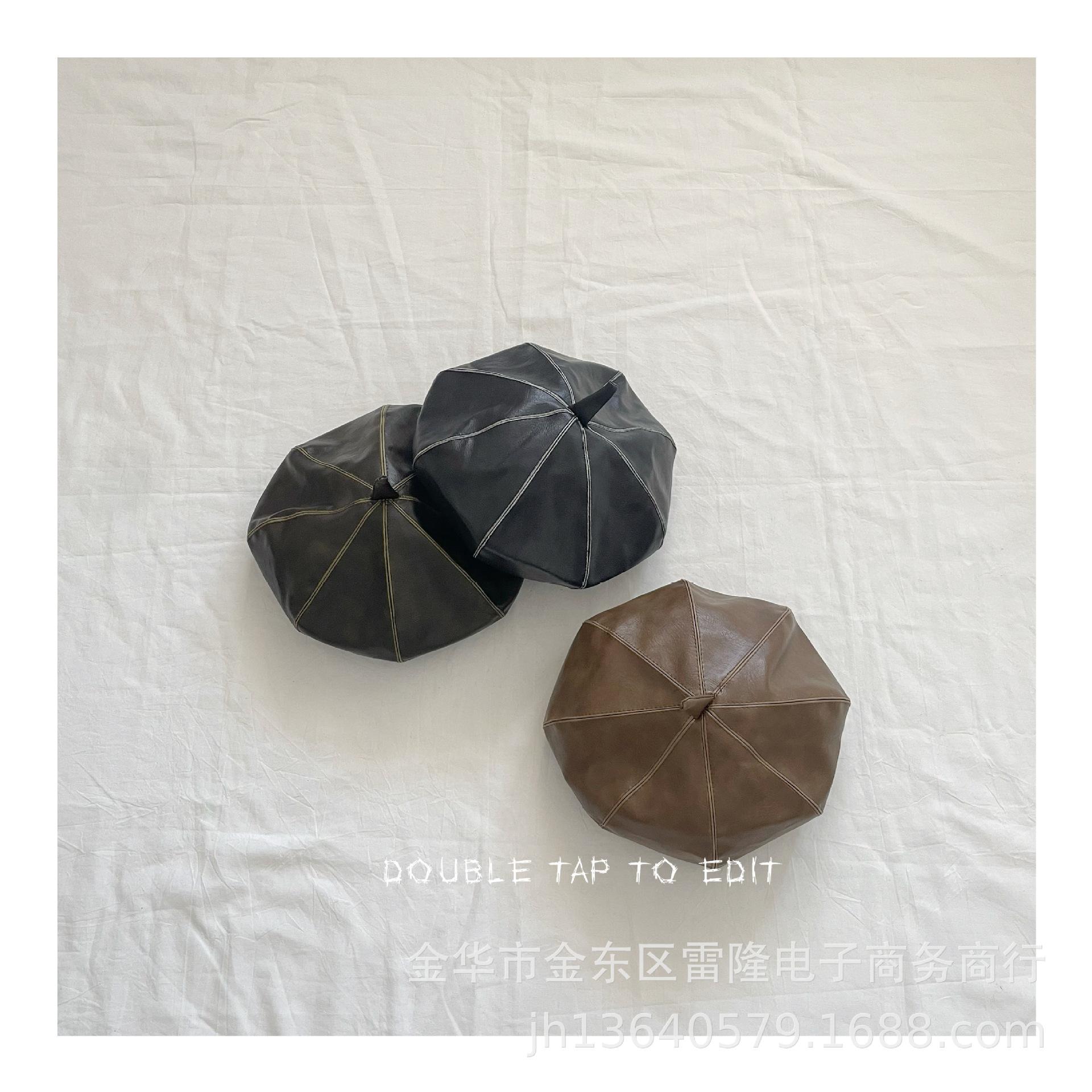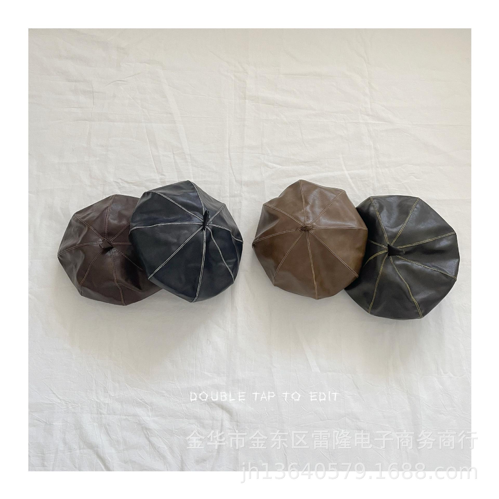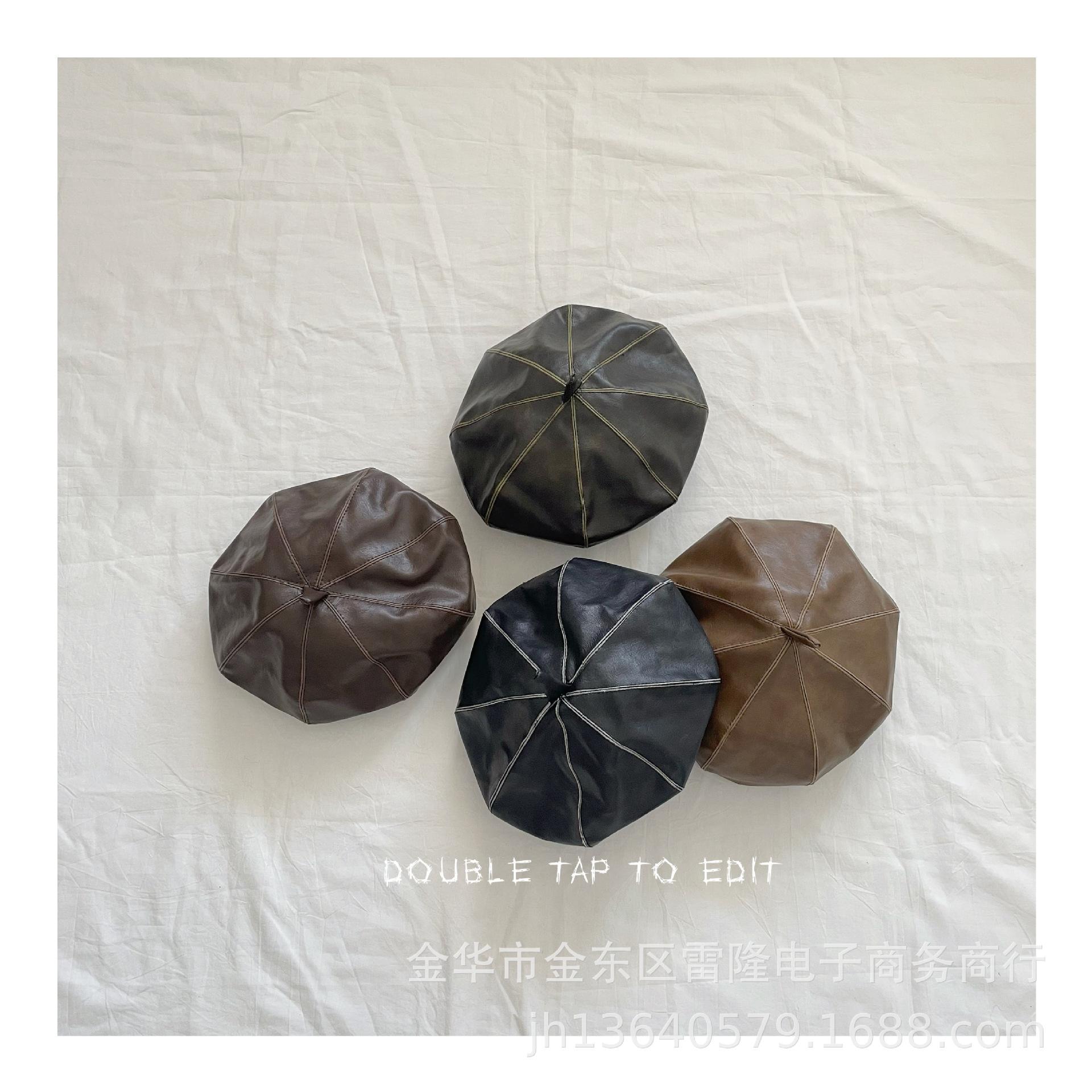 Otoño e invierno Grabador coreano retro para niños Boina de cuero de moda desgastada Boina gorro de calabaza cuero lavado